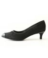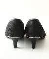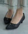 スタイルUPと歩きやすさを兼ね備えた レース&サテンローヒールパンプス