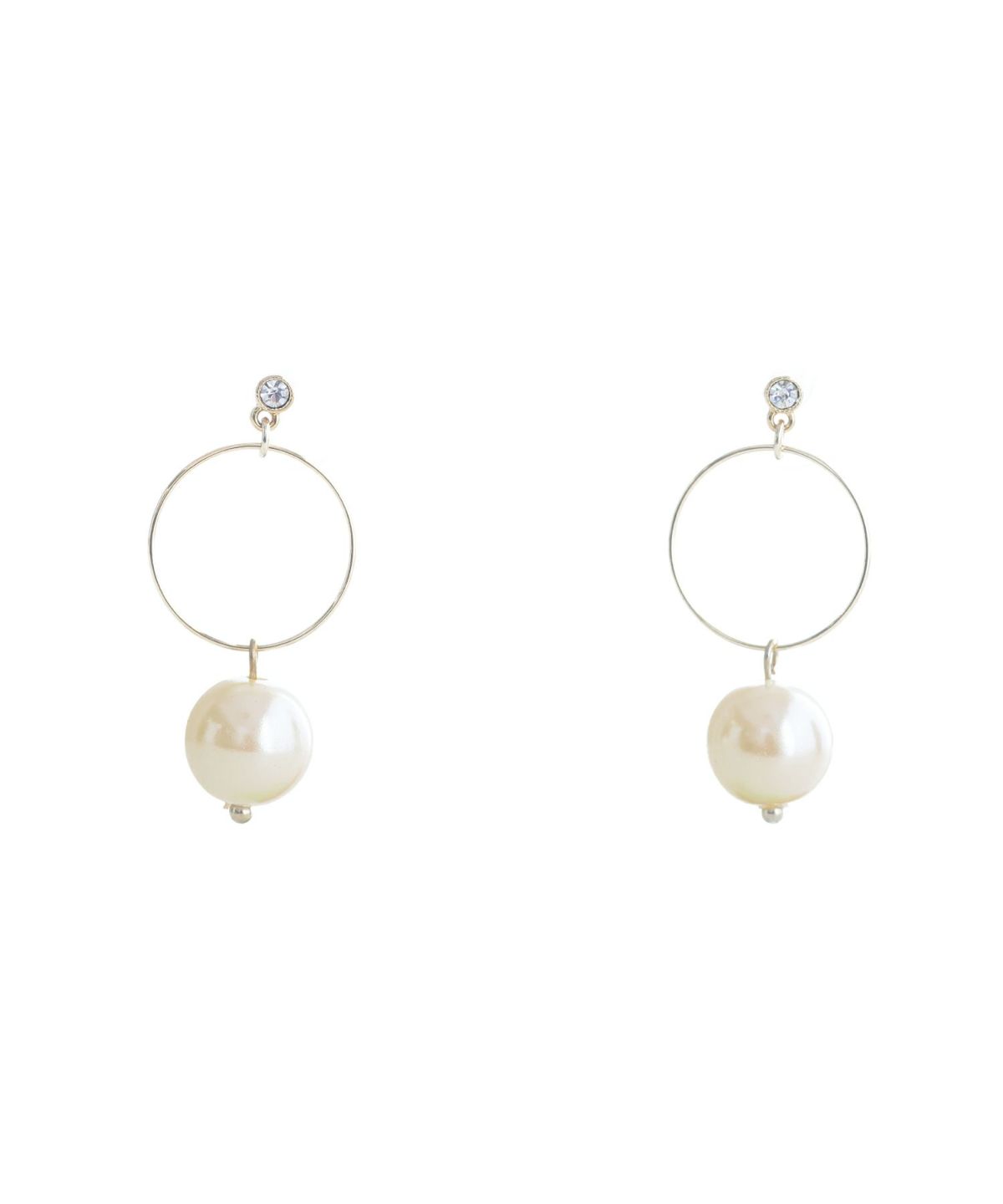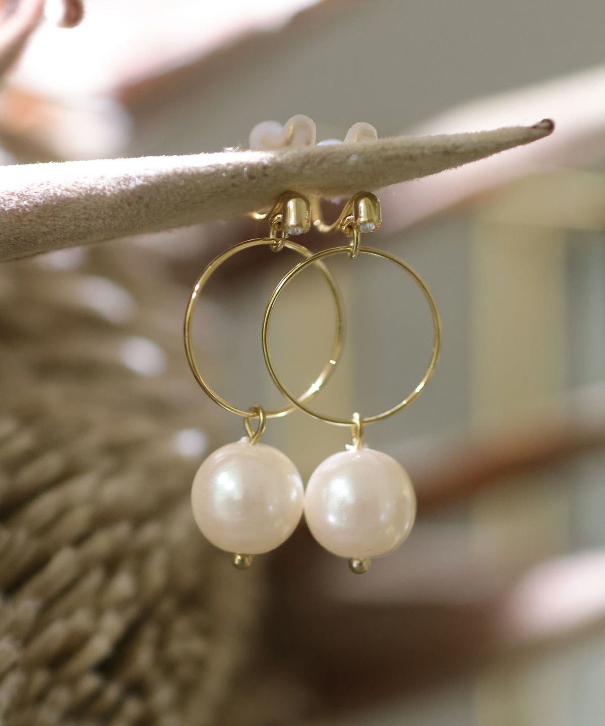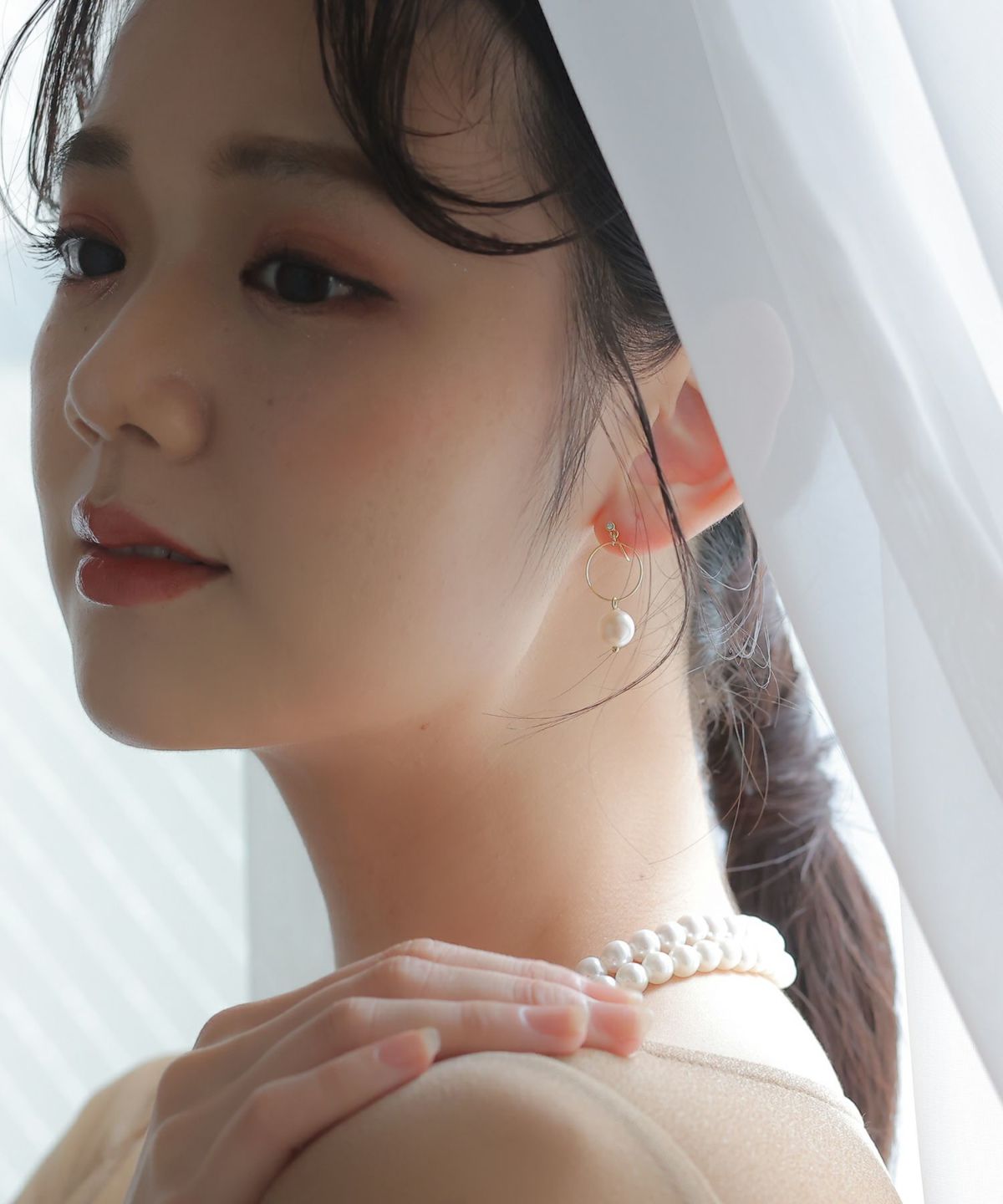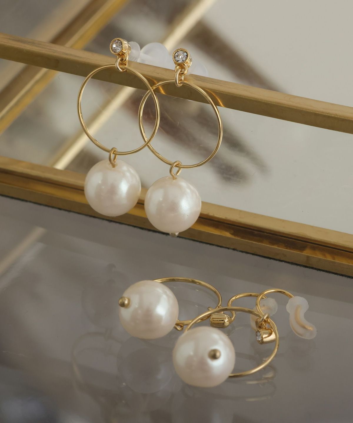 さりげなく輝くビジューと揺らめくパールが女性らしい リングパールイヤリング&ピアス