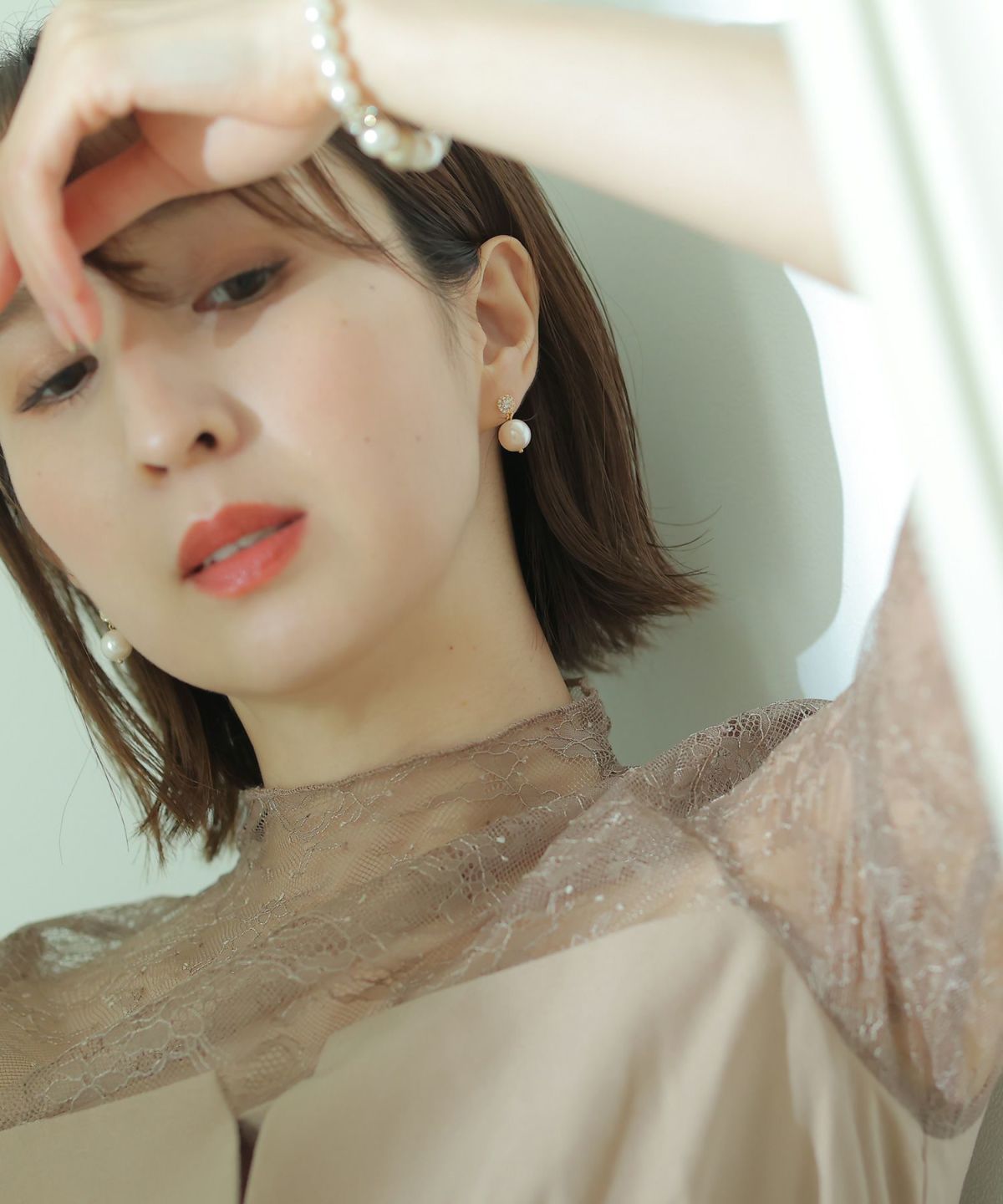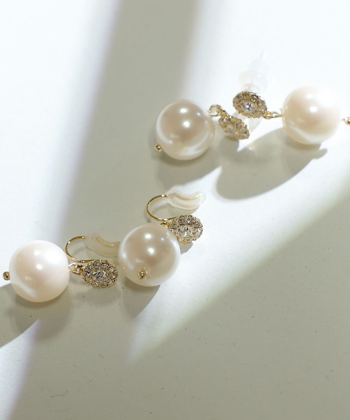 ■アレルギーの方でも使えるニッケルフリー素材を使用上品に輝くビジューが詰め込まれたフラワービジューに大ぶりなパールが揺れる女性らしいアイテム