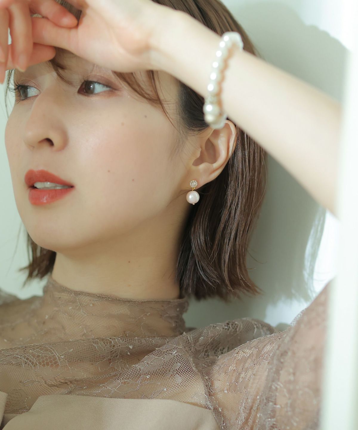 ■フラワービジューが上品に輝き顔周りを華やかに華奢なフラワービジューと大ぶりなパールのギャップがオシャレな一品。華やかなビジューと揺れるパールが女性らしい印象を与えます。普段使いからオケージョンシーンまで様々なシーンでご活用いただけるアイテムです。