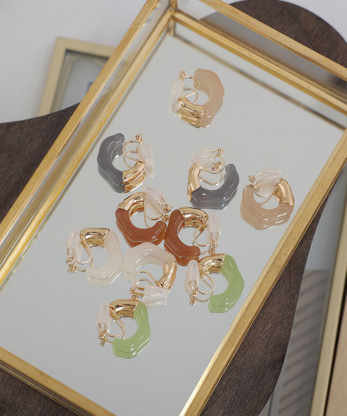 淡い配色といびつな形で抜け感のあるフープイヤリング いびつカラーフープイヤリング