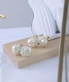 大粒パールの周りに小粒パールがあしらわれたお花のようなデザインのイヤリングです