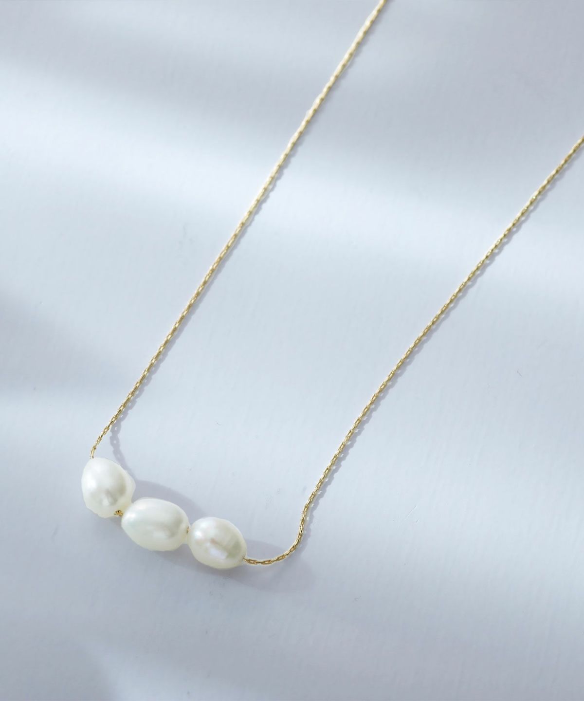 さりげない存在感が上品♪ 淡水パール3粒ネックレス