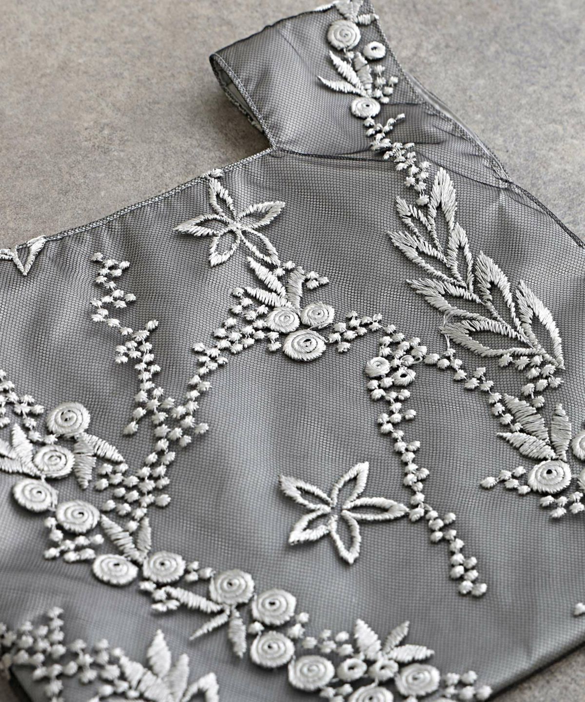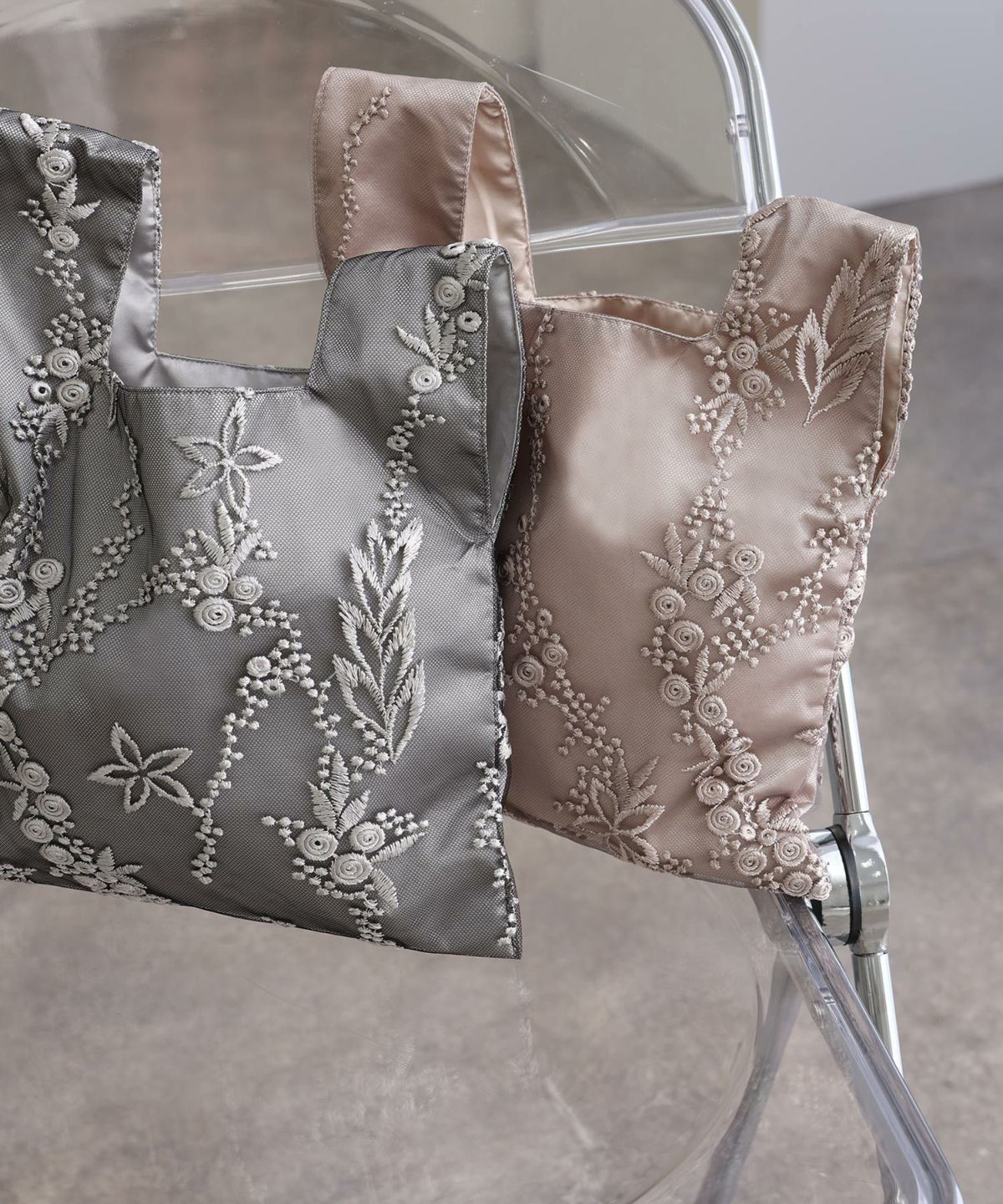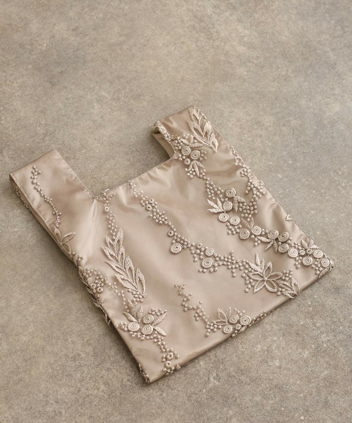 美しい光沢感と立体的な刺繍が魅力 ワンハンドル型刺繍レースバッグ