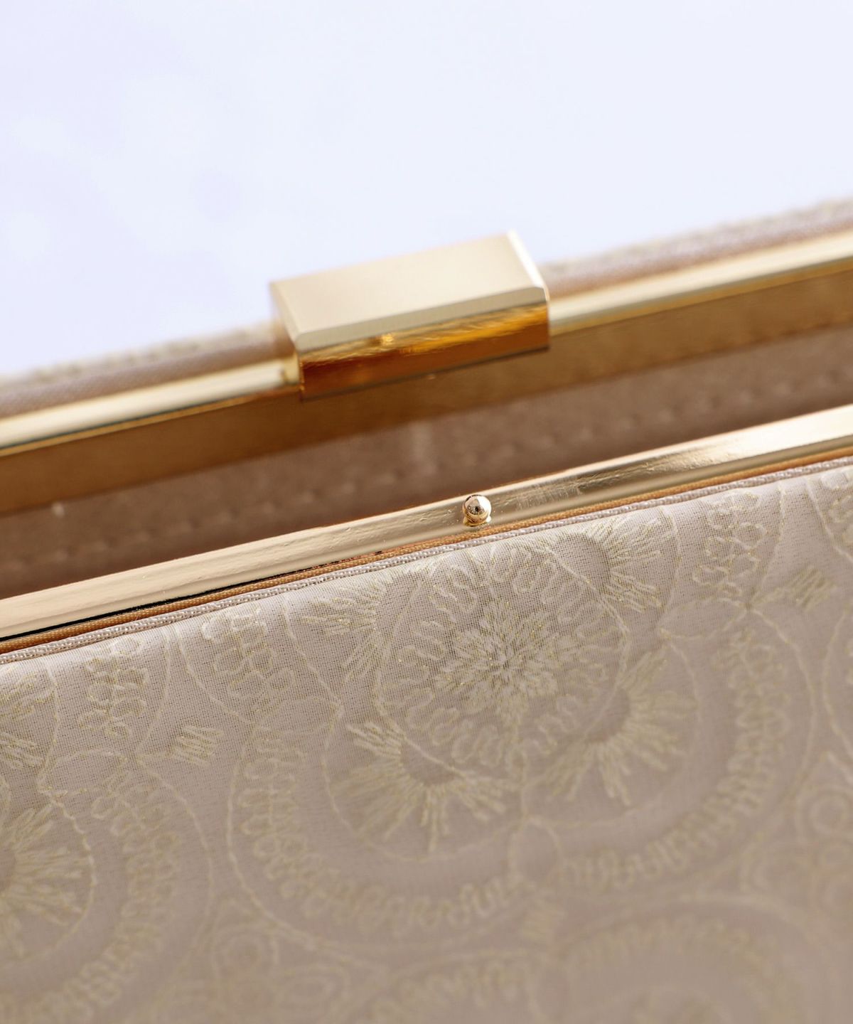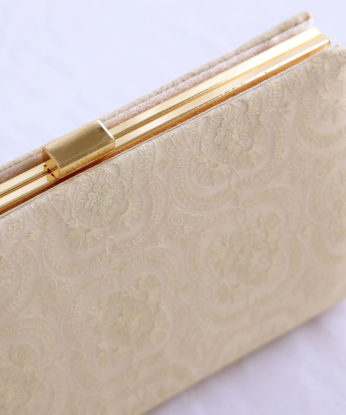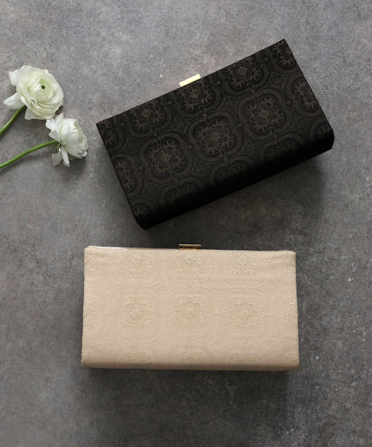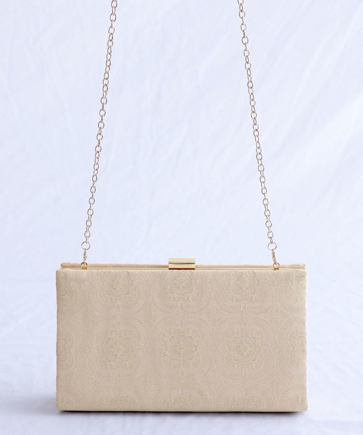 ■幾何学柄と細かなラメが美しいクラッチバッグ他と被らない存在感のあるこだわりデザイン。高級感のあるデザインでシンプルなコーデにも合わせやすい。付属のチェーンを付けるとショルダーバッグとしてもご使用いただけます。