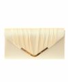 サテン地とタックのシンプルなデザインが上品な印象を引き立てるクラッチバッグ。