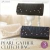 【パーティ,フォーマル,パーティーバッグ、お呼ばれ、二次会,結婚式,ウェディング,パーティー,バッグ】 パール ギャザー クラッチバッグ ラインストーン ビジュー