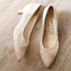 スエードとレースの異素材MIXなパンプス。