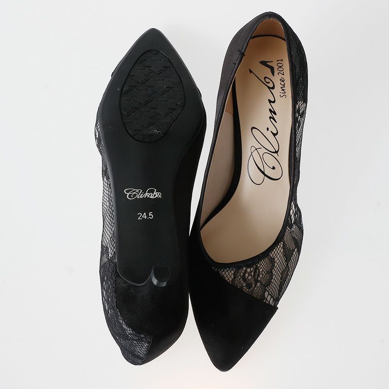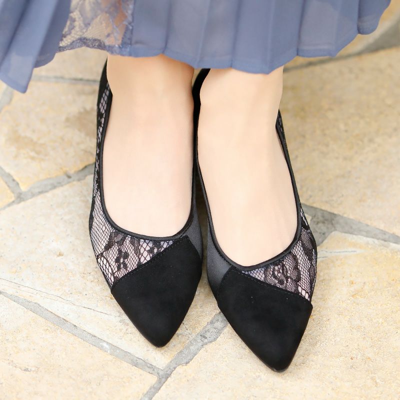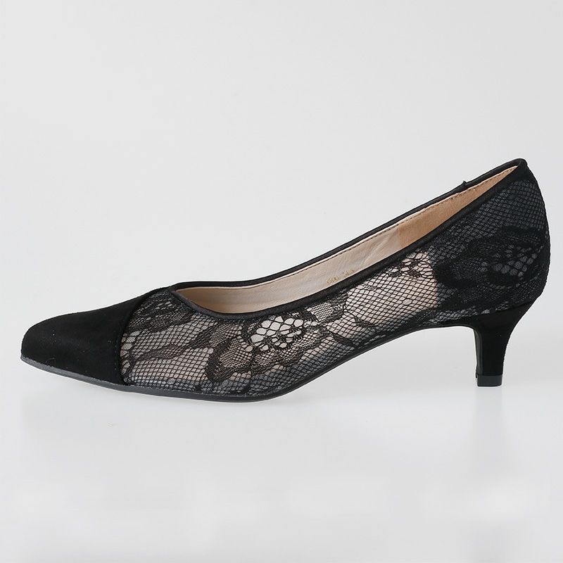 つま先にスエードをスタイリッシュに配し、レースは透け感が華やか。