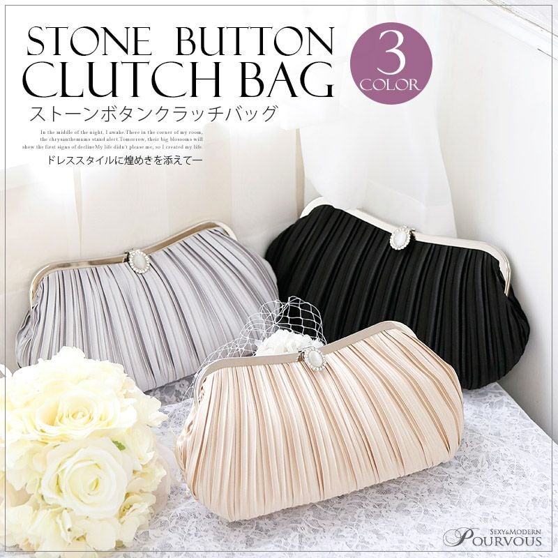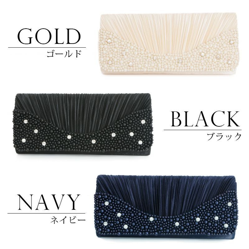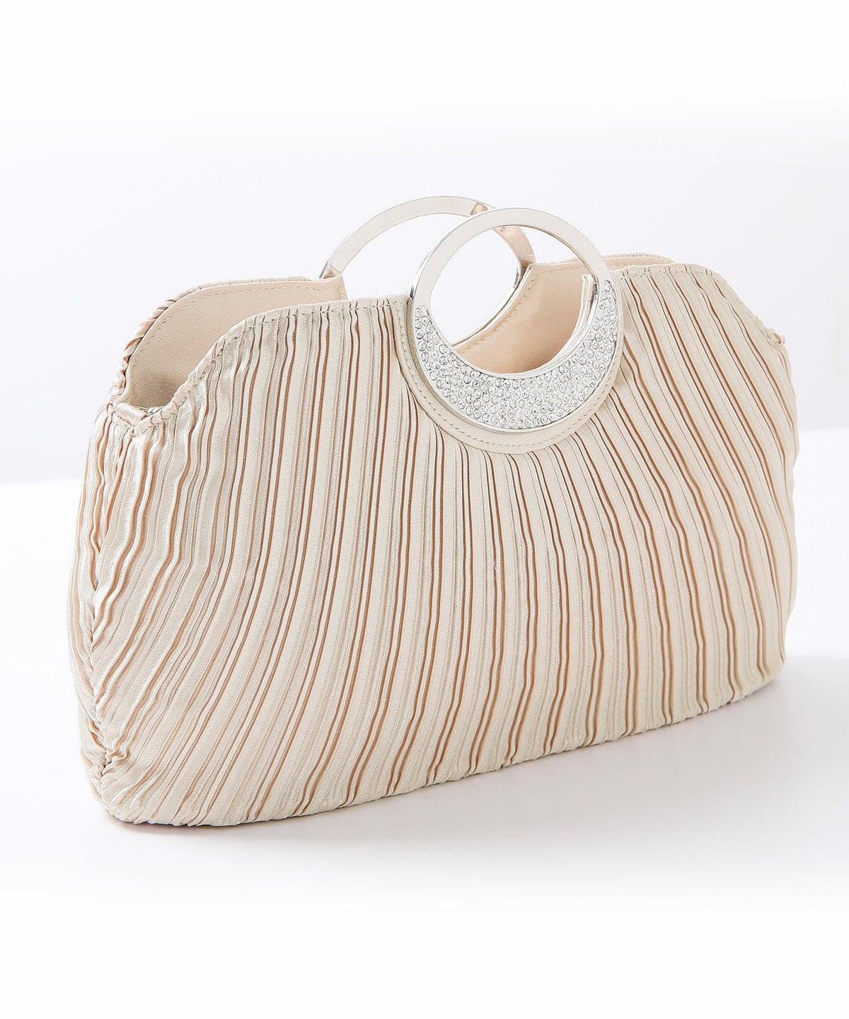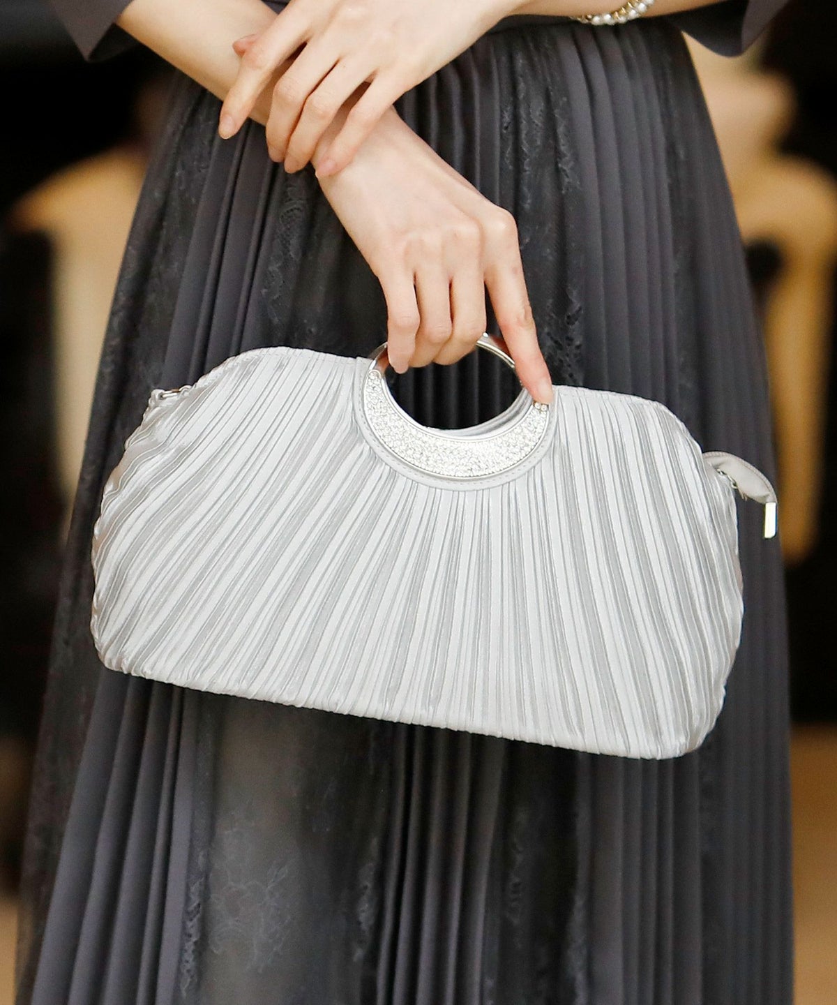 サテンとビジューで華やかな印象叶えるバッグ パールラインプリーツクラッチバッグ