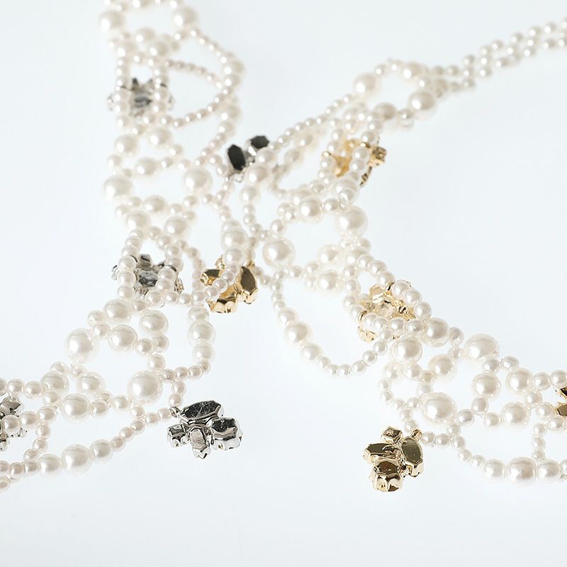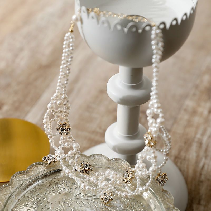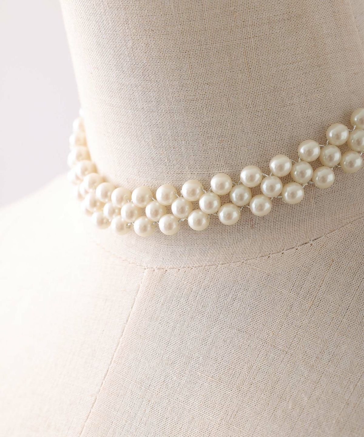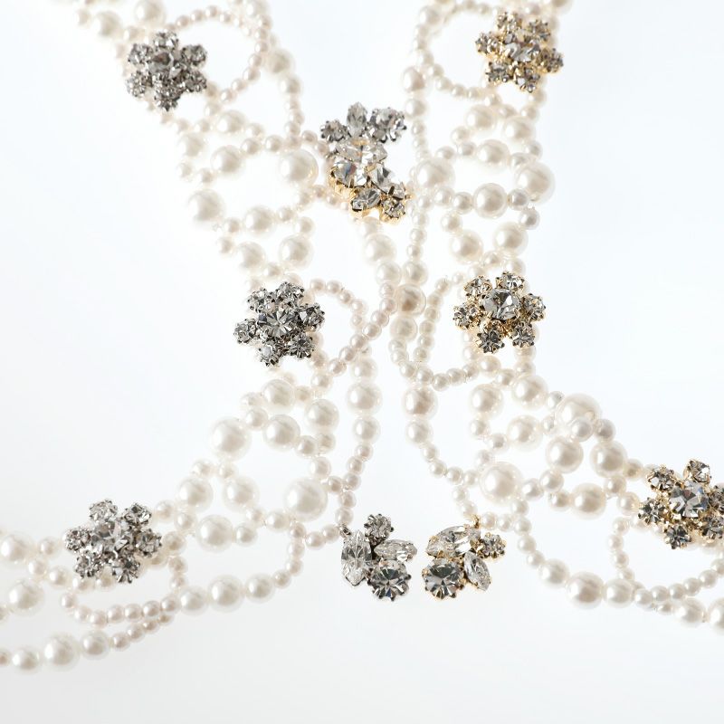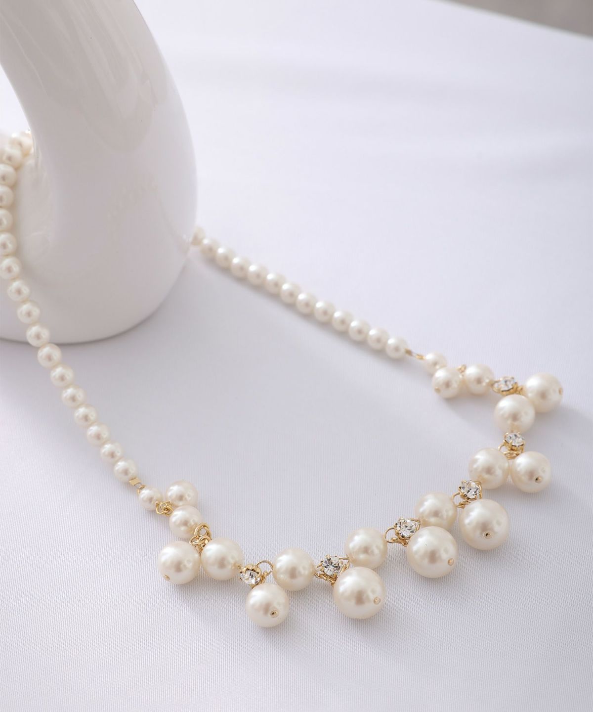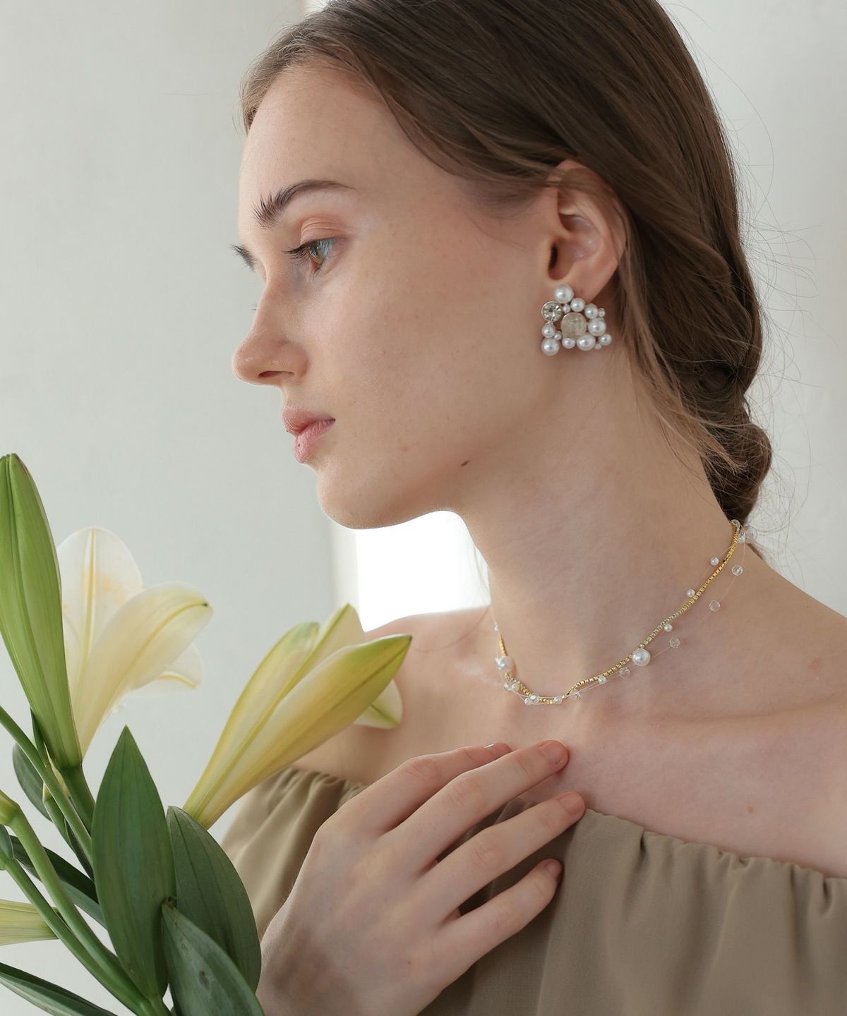 ドレスのデザインに応じて、ネックラインを引き立てるネックレスを選びます。シンプルなドレスには、大ぶりのビジューやパールを使ったネックレスがよく映えます。一方で、装飾が多いドレスには控えめなジュエリーがバランスを保ちます。