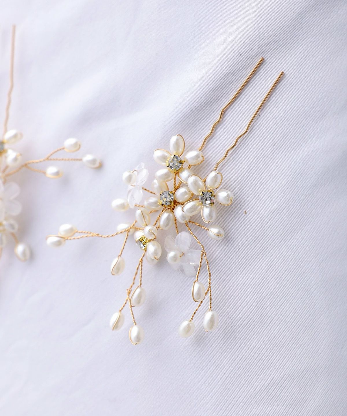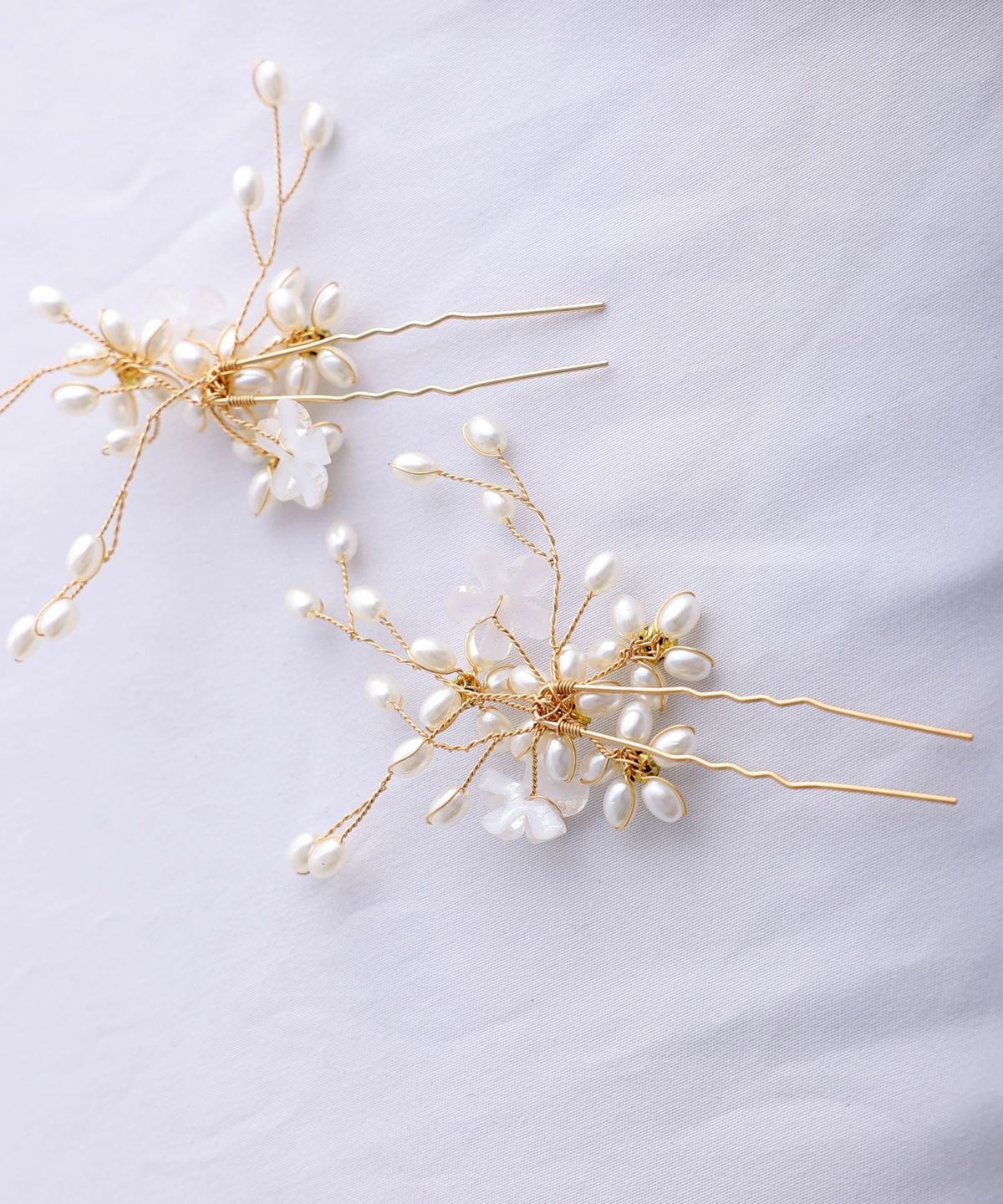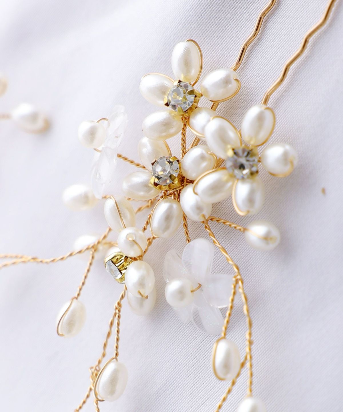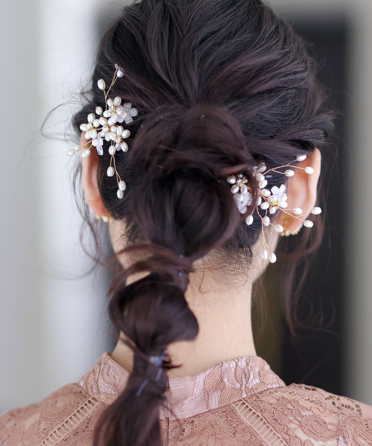 ヘアピンやバレッタ: ビジューやパールがついたヘアピンやバレッタは、パーティーシーンで人気です。華やかなヘアスタイルを作りながら、シンプルなドレスに上品さを加えることができます。