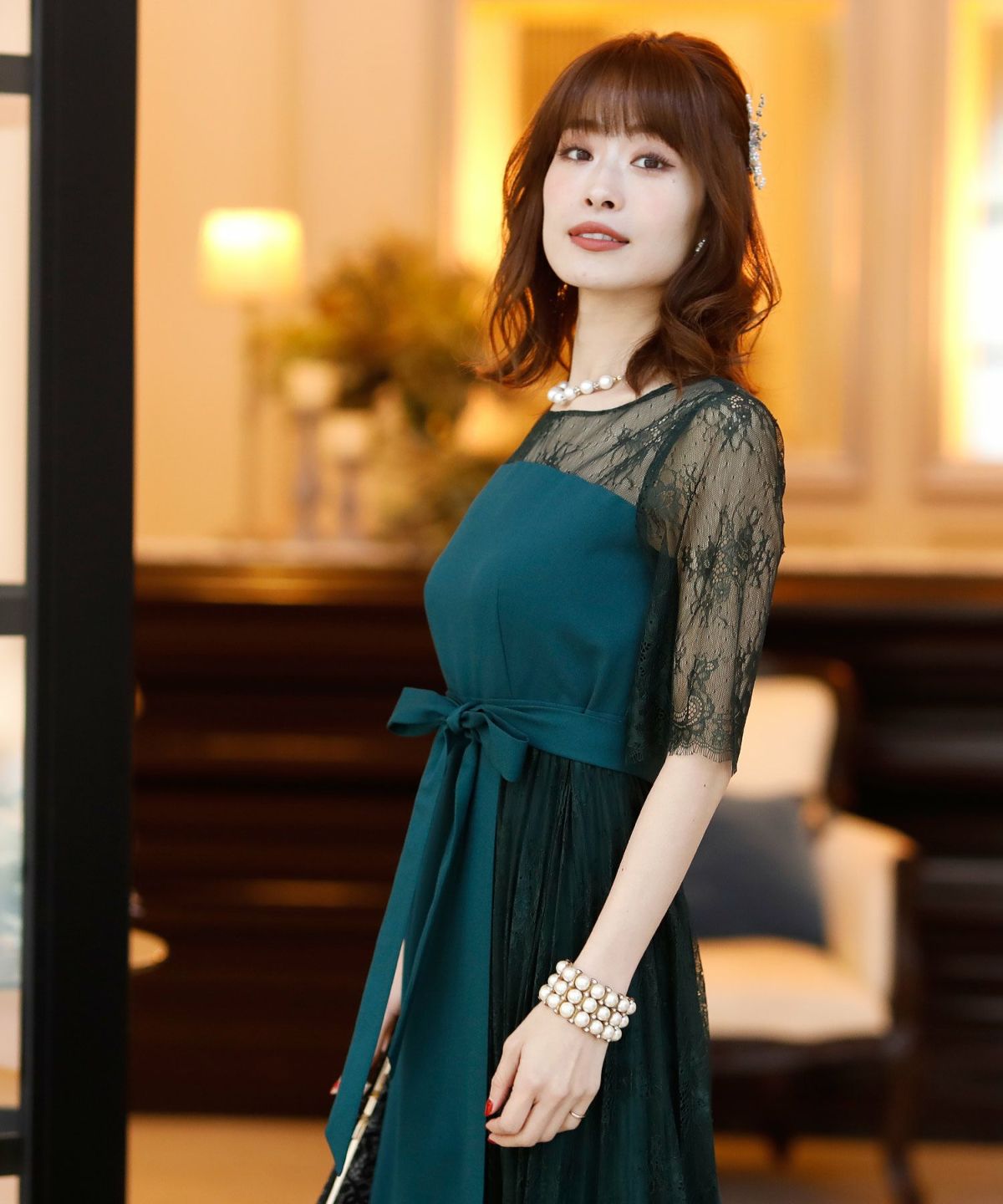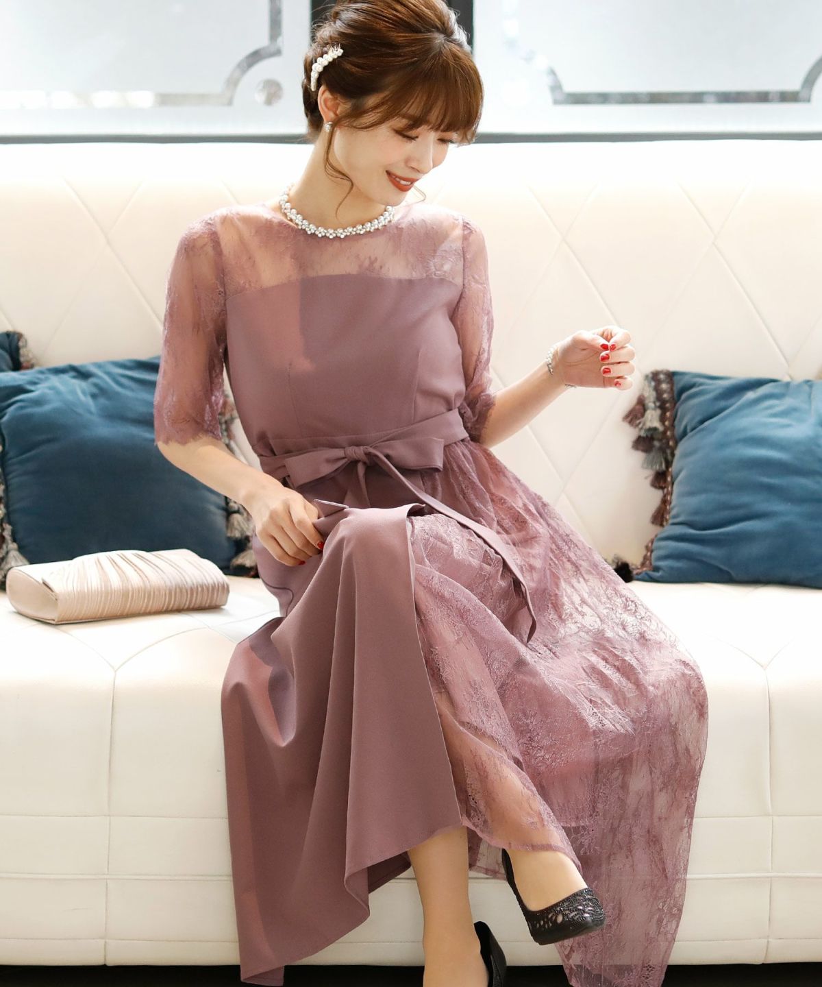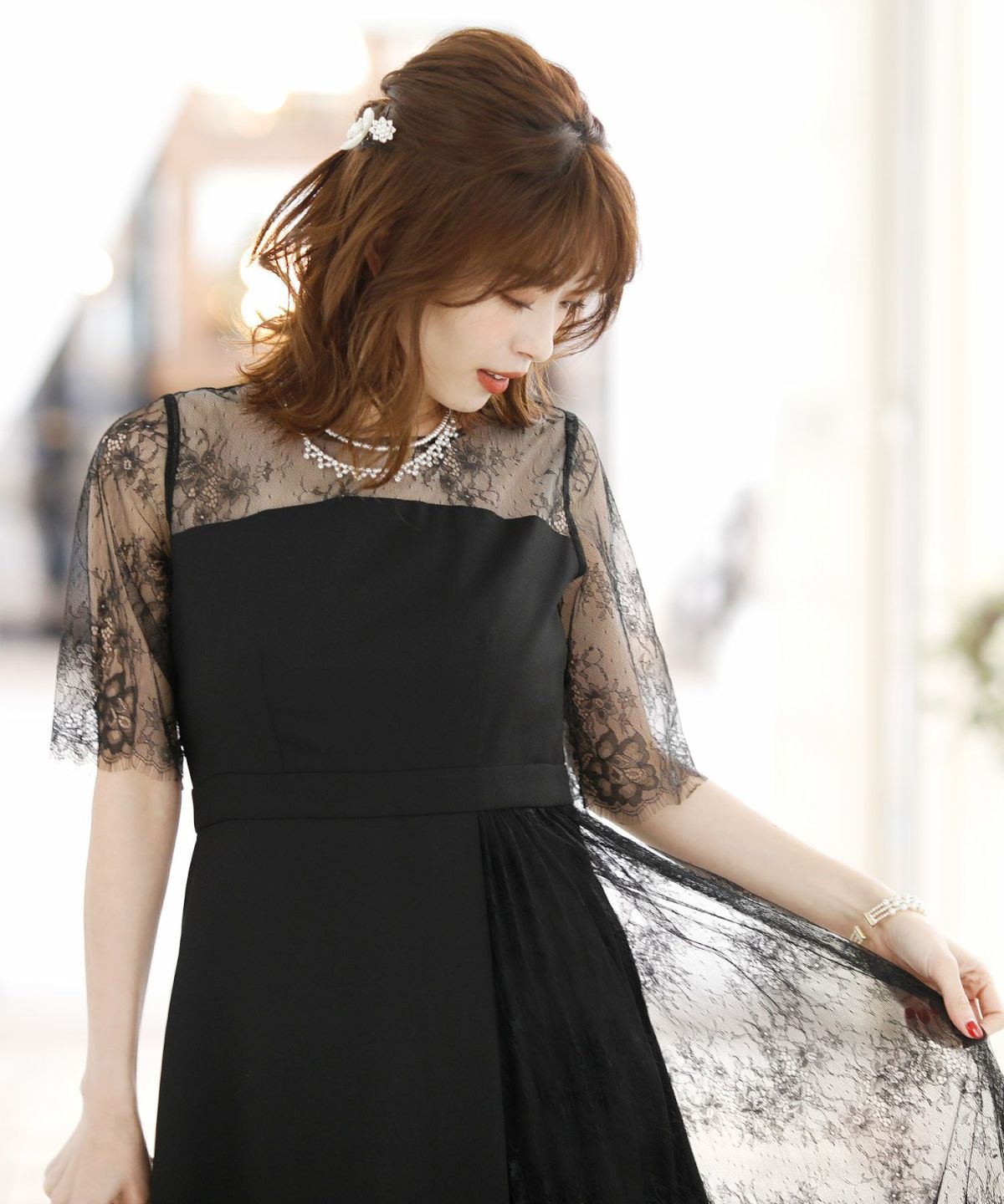 今年トレンドの透け感のあるオーガンジーとレースを重ね合わせたデザイン。2枚重ねすることで、程よい透け感になりシーンを選ばず着ることができます。