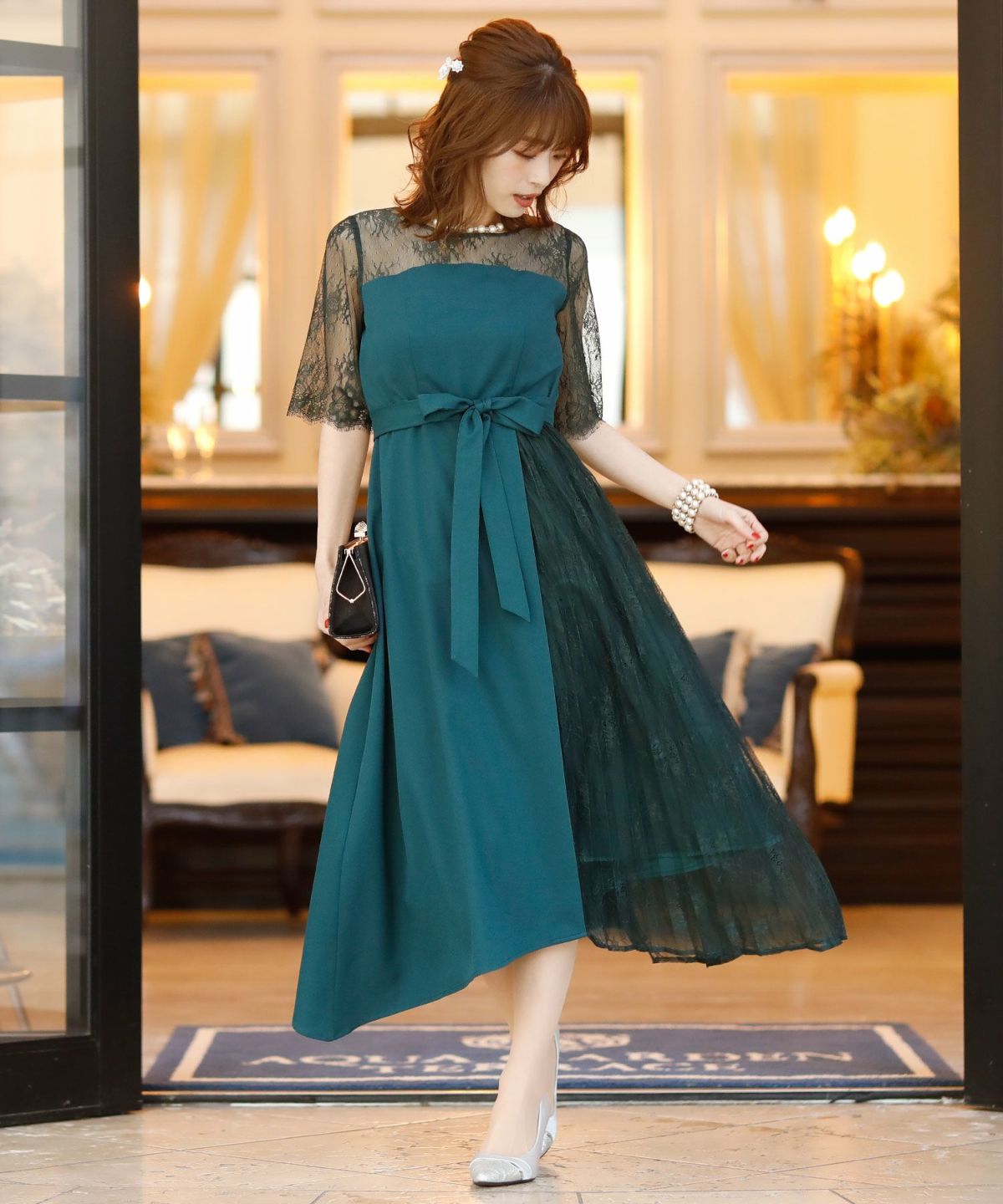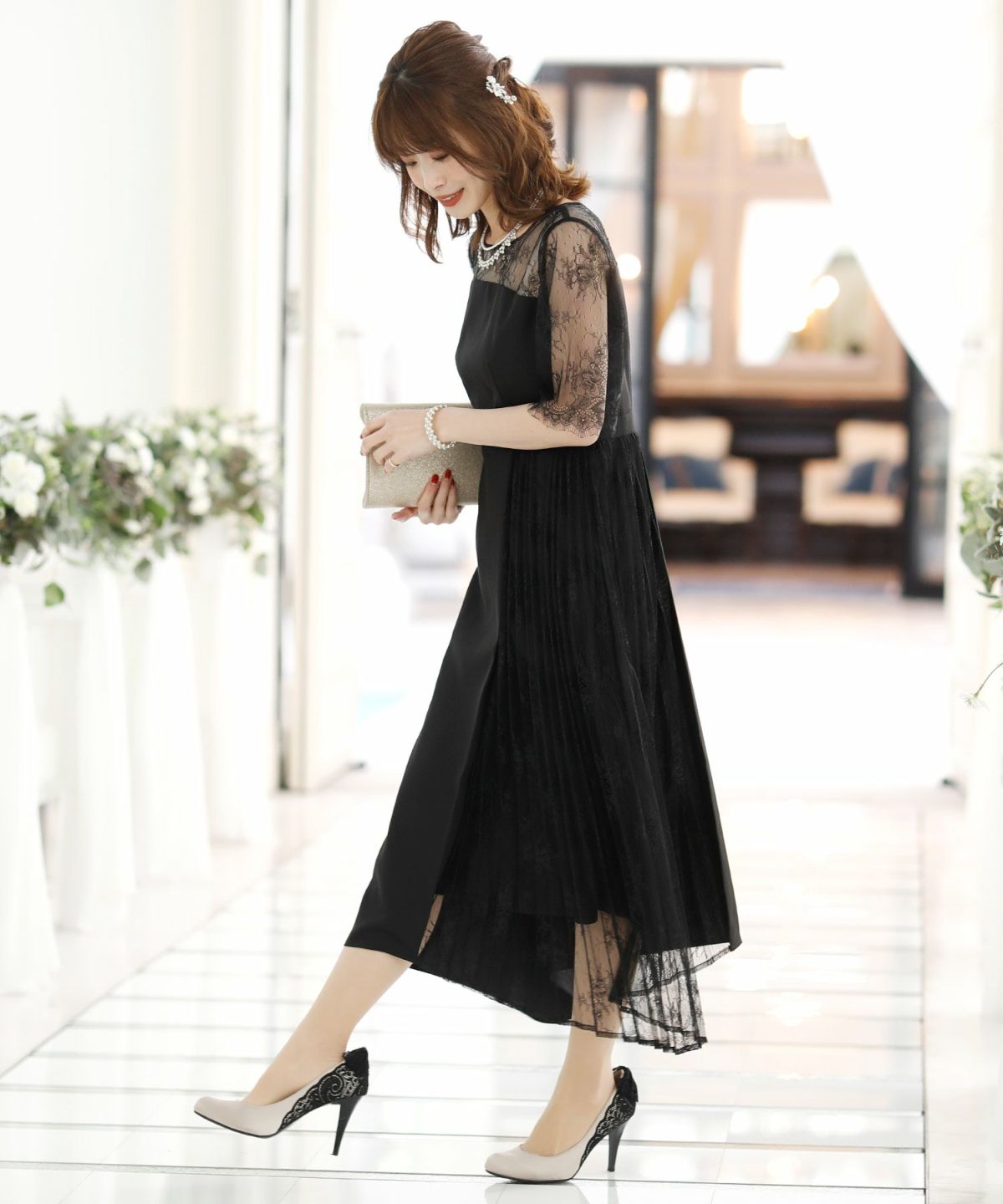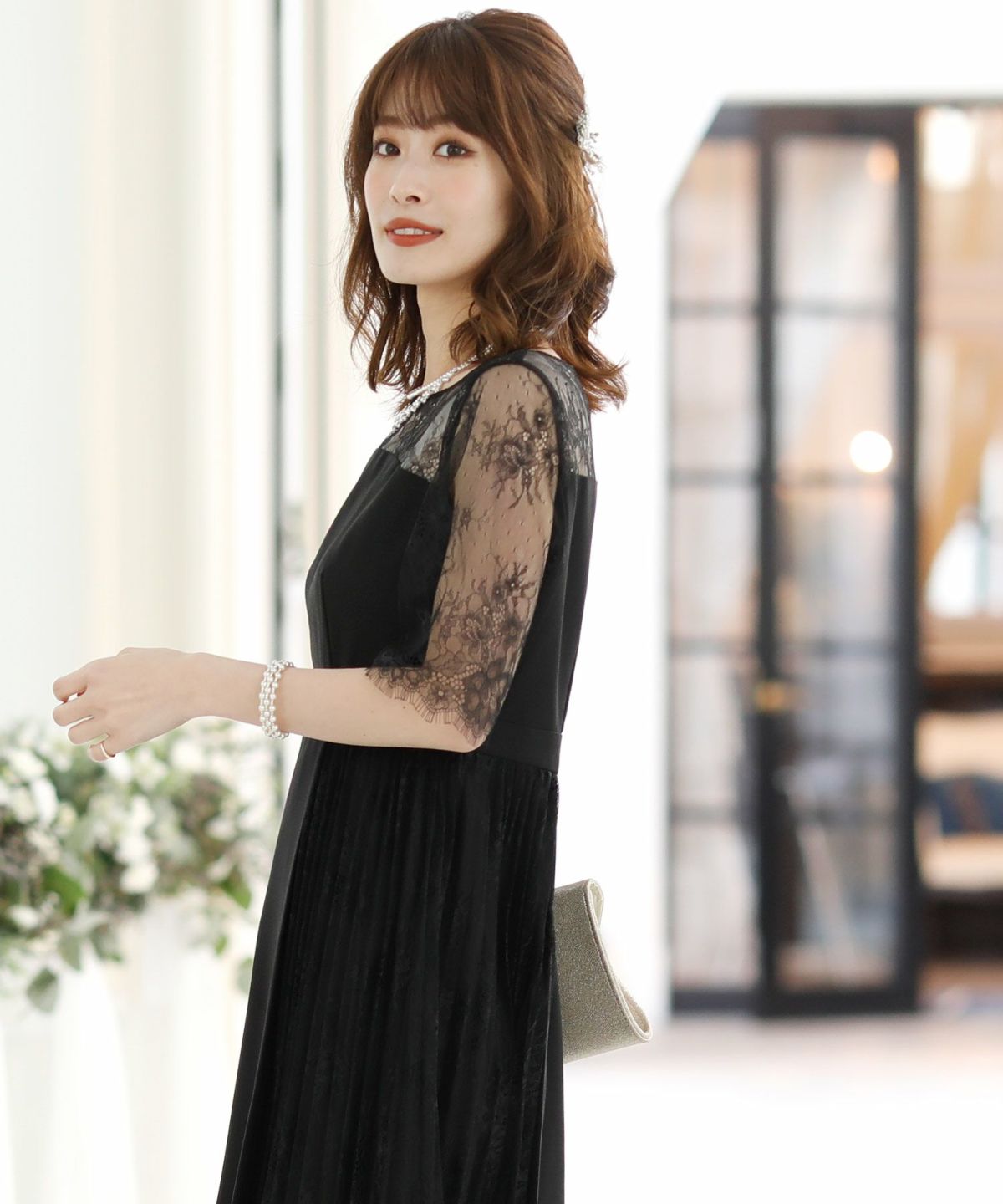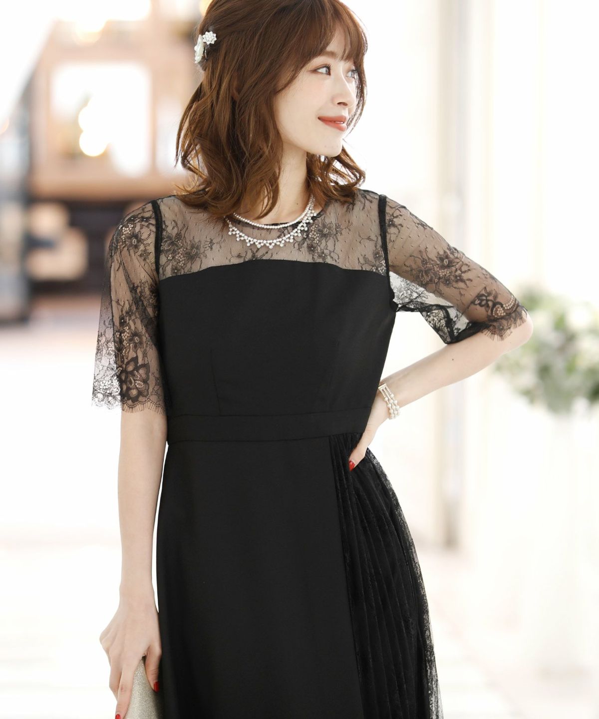 繊細なレースをプリーツ加工することで、上品さの中に華やかさをプラス。ハリのあるジョーゼット生地と合わせることでより、より高級感をアップします。