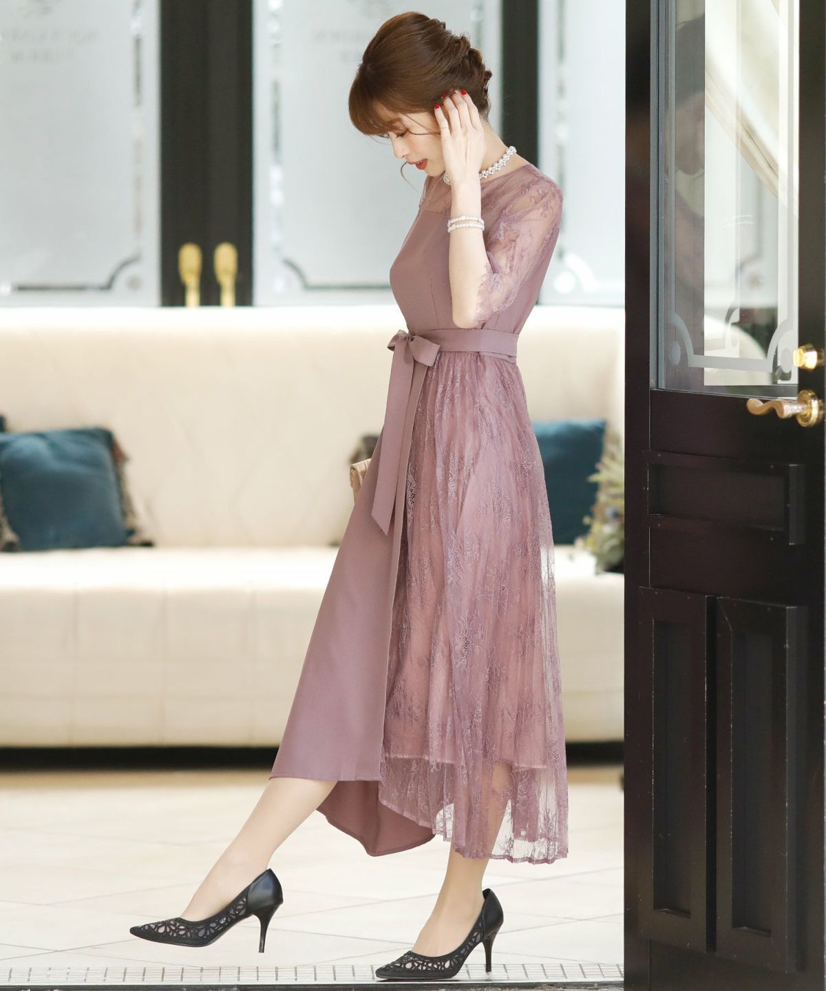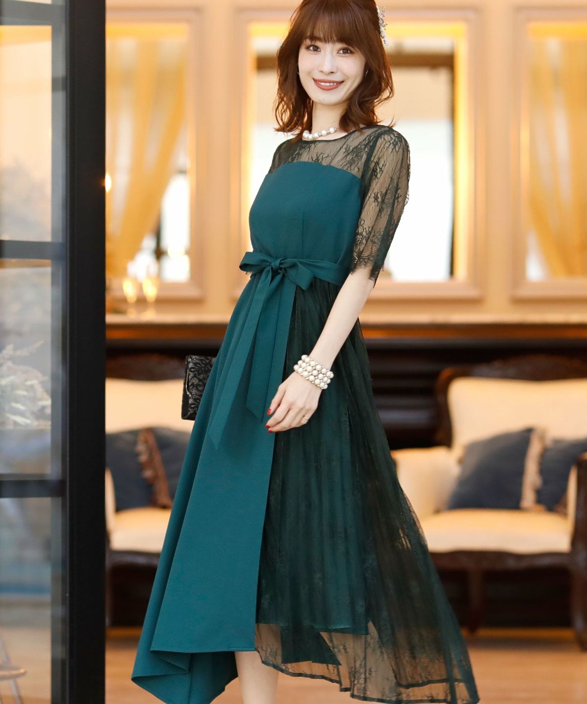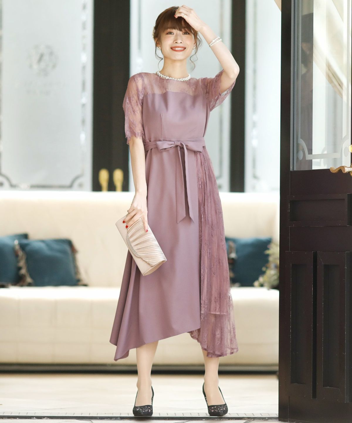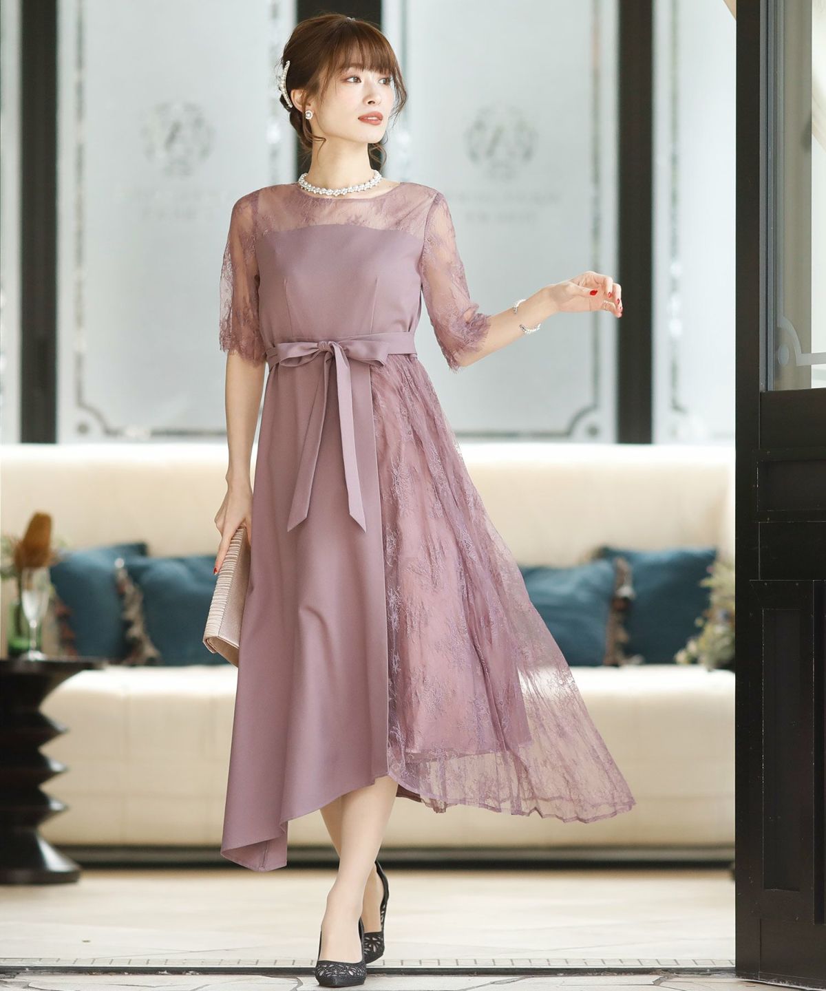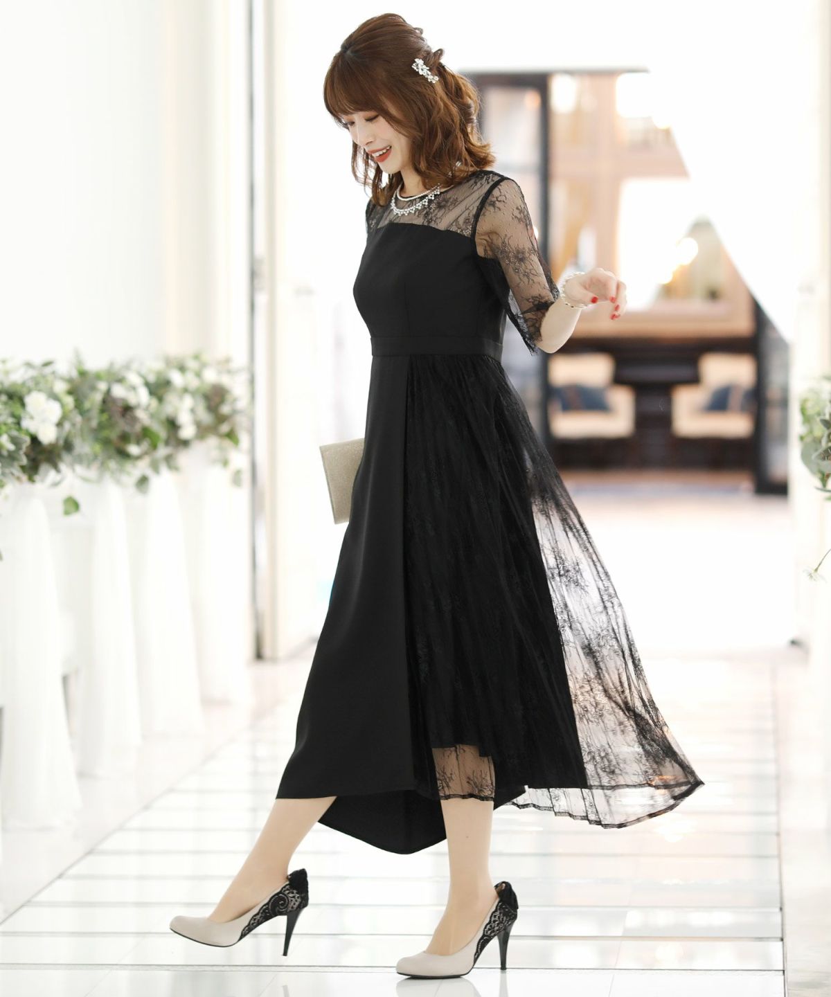 繊細なレースをプリーツ加工することで、上品さの中に華やかさをプラス。ハリのあるジョーゼット生地と合わせることでより、より高級感をアップします。