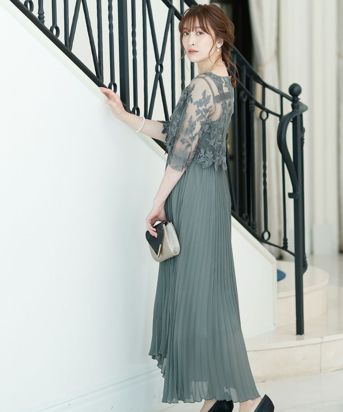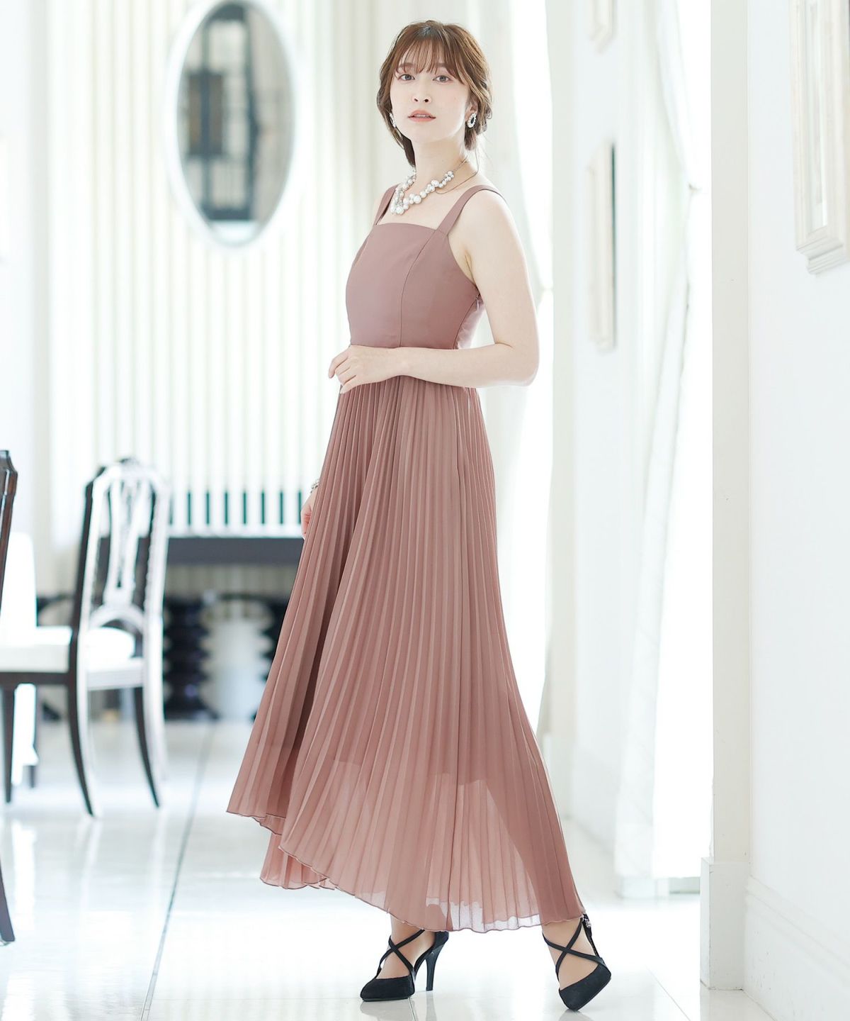 ■ジョーゼットのイレヘムが可愛いプリーツドレス