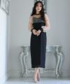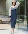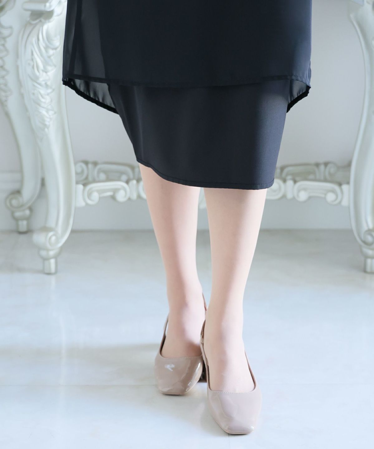 フィット感のあるタイトスカートが、女性らしい曲線美を引き立てます。