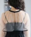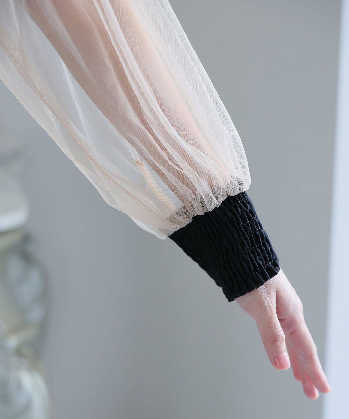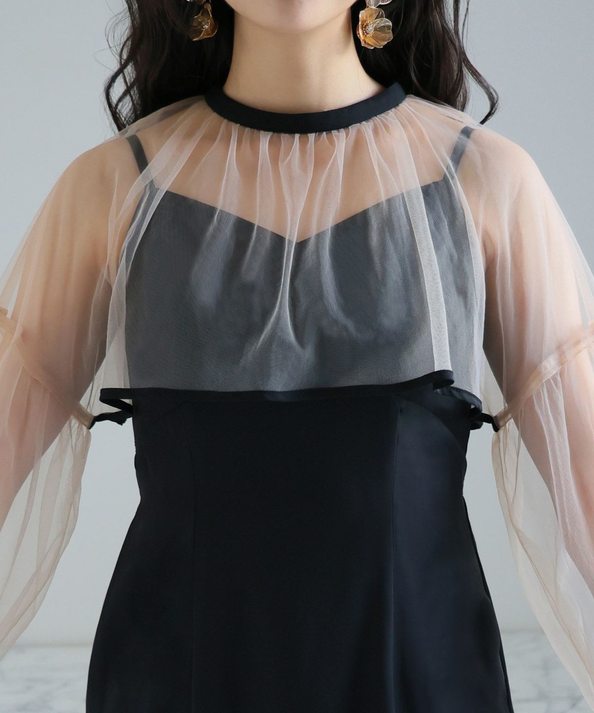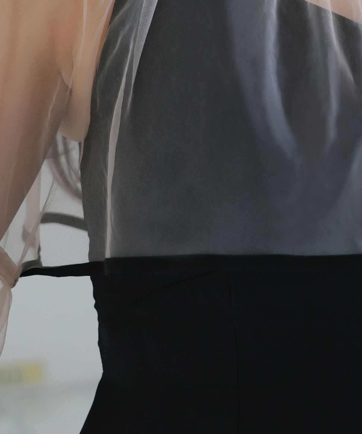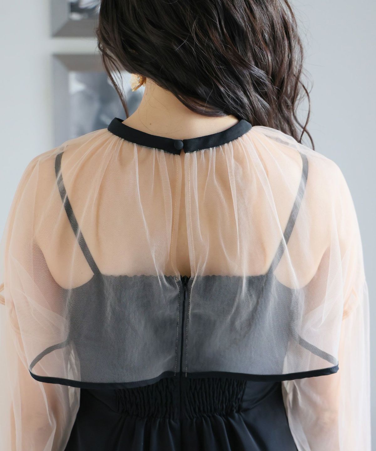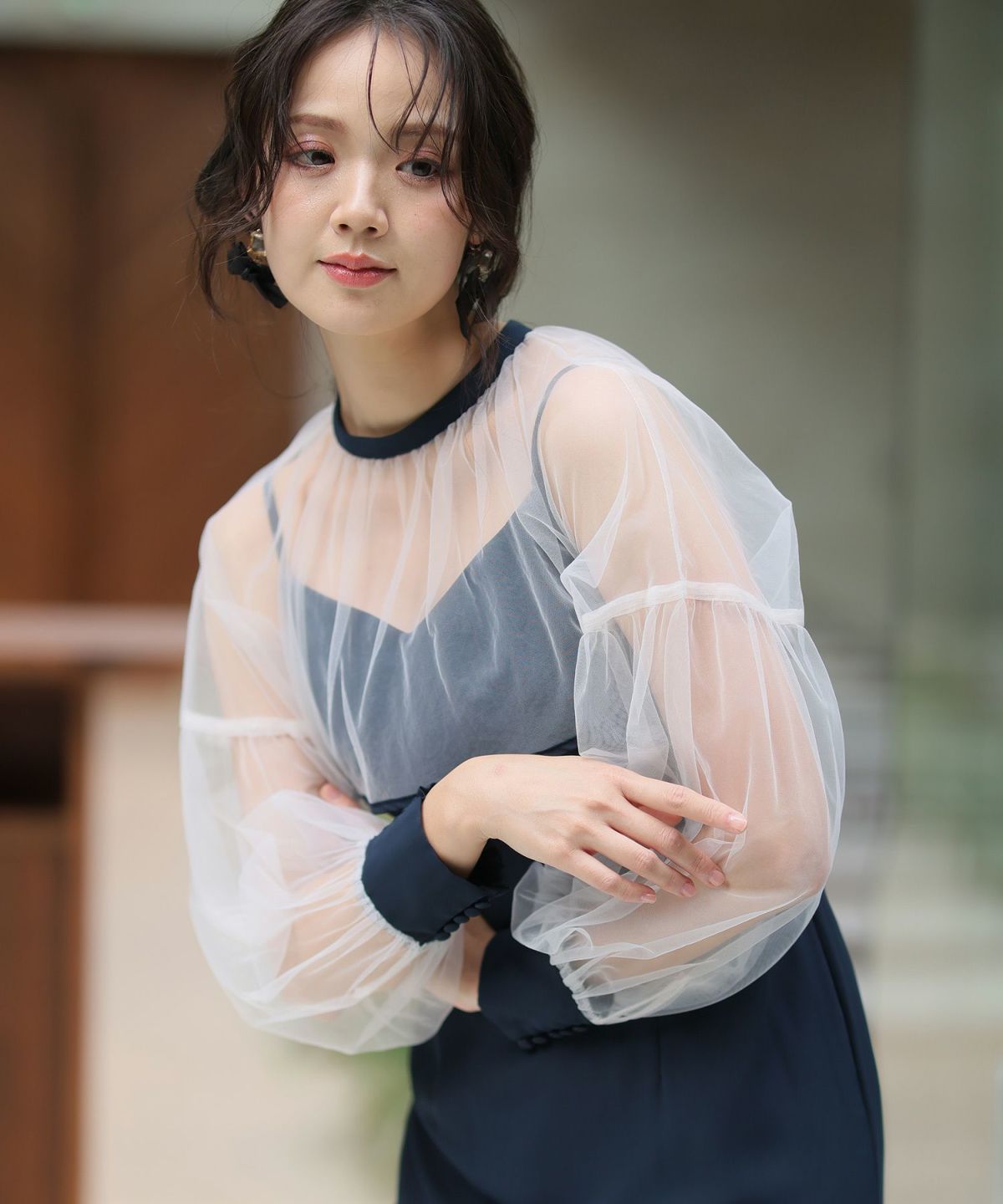 肩から腕にかけてのシアーなボリュームスリーブが華やかさをプラス。