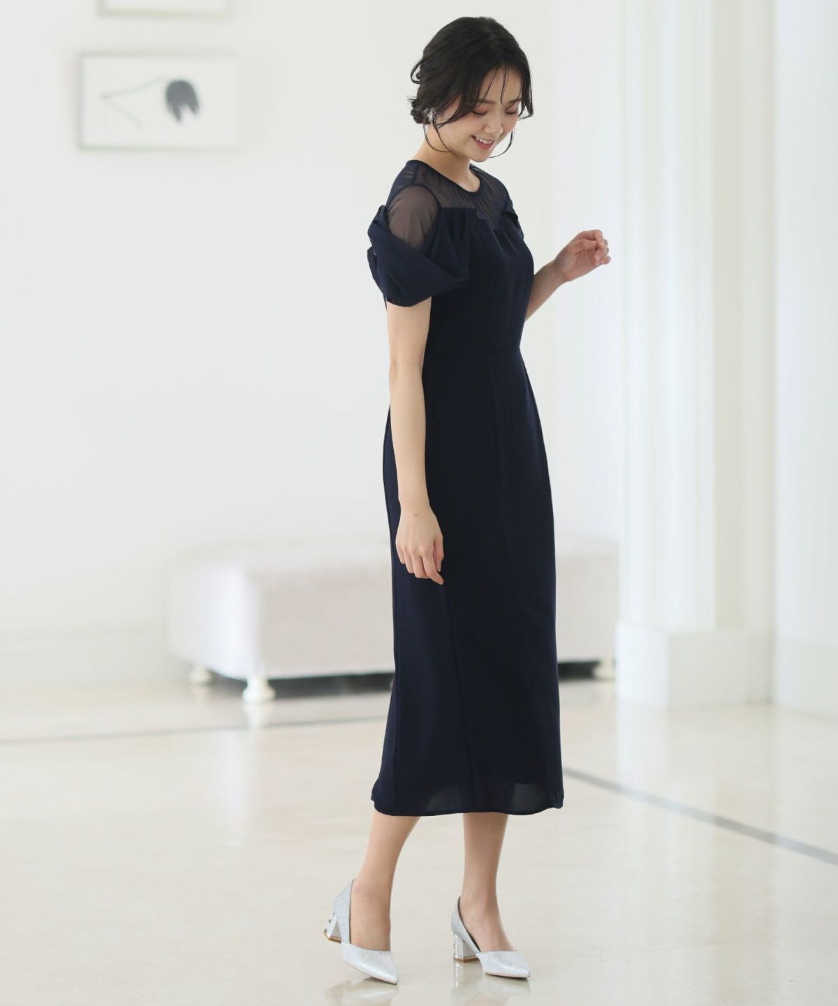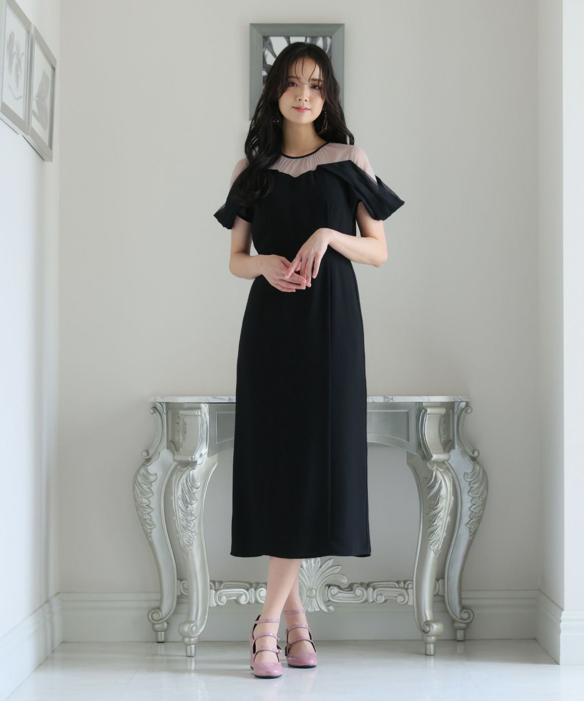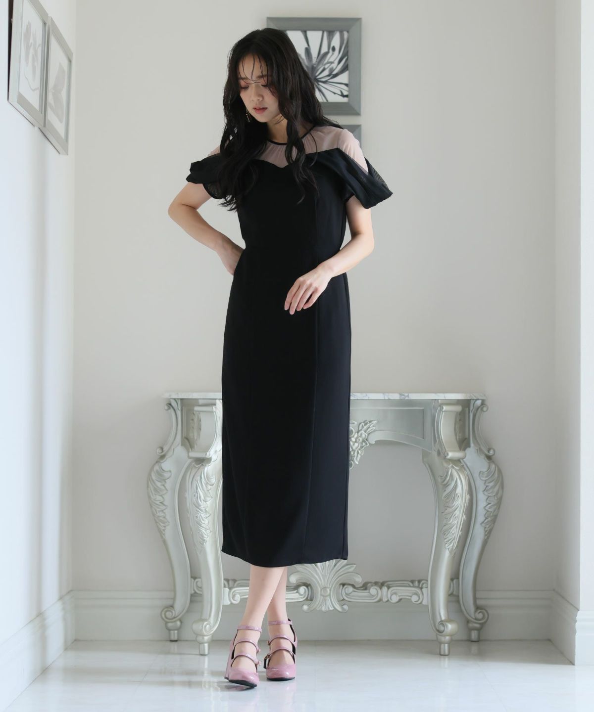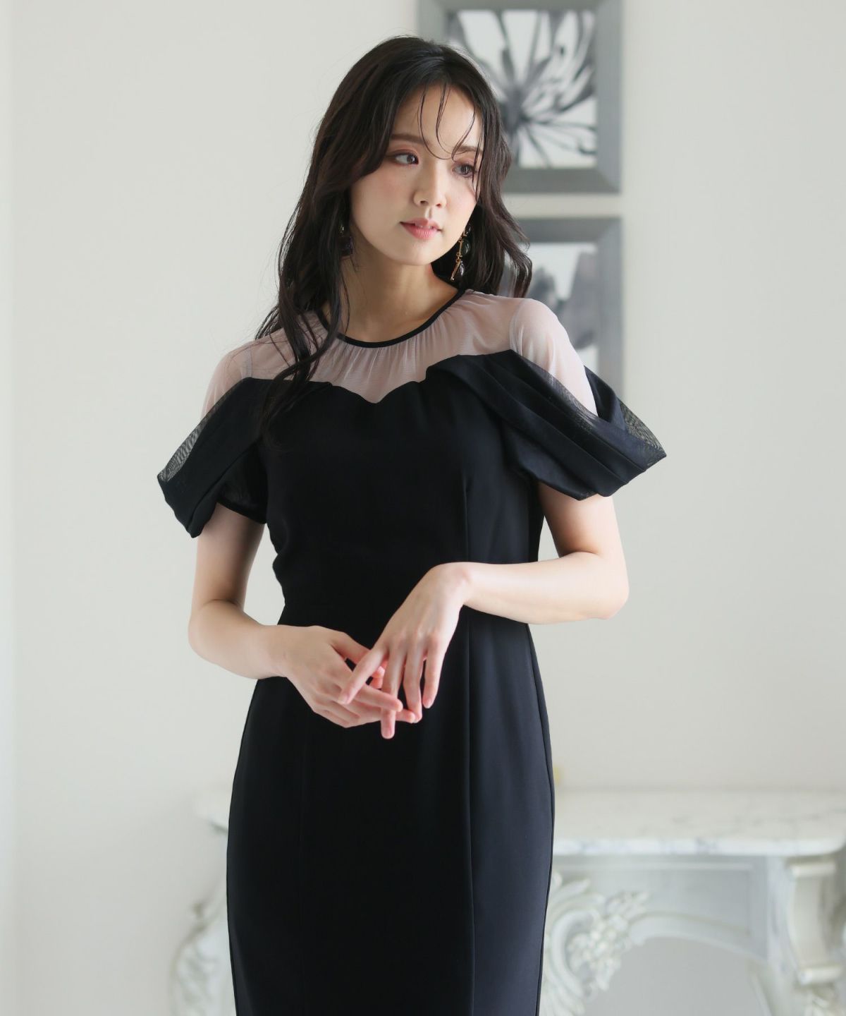 シースルー素材が美しいタイトラインドレス。