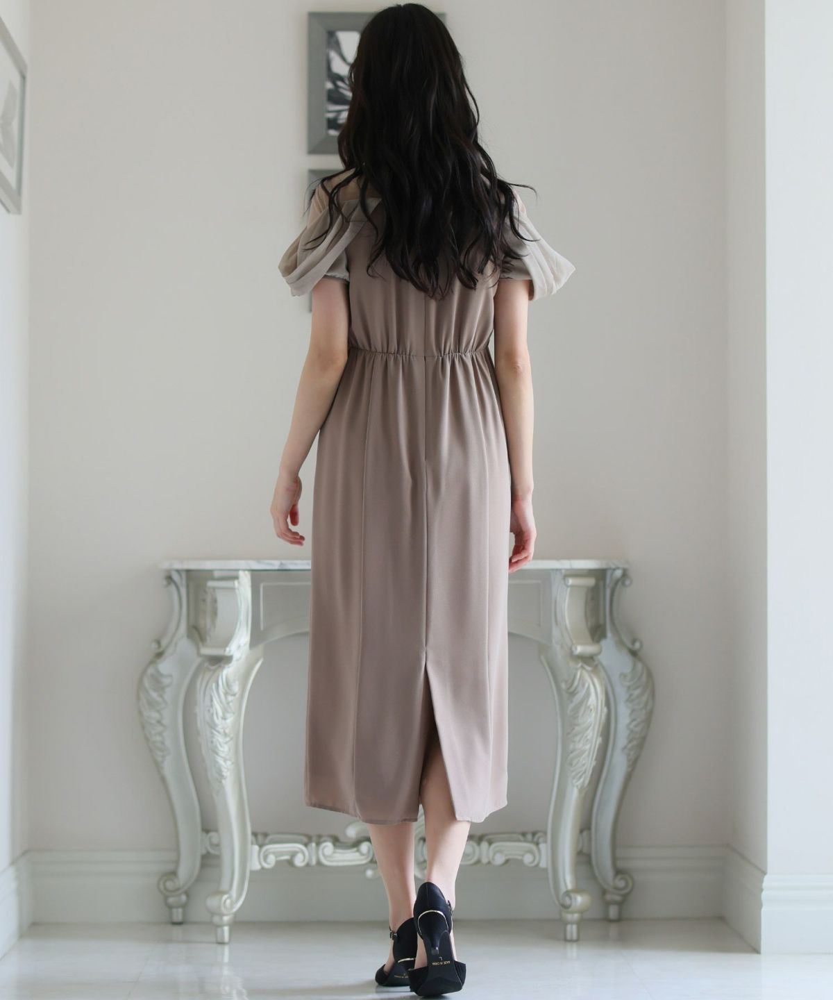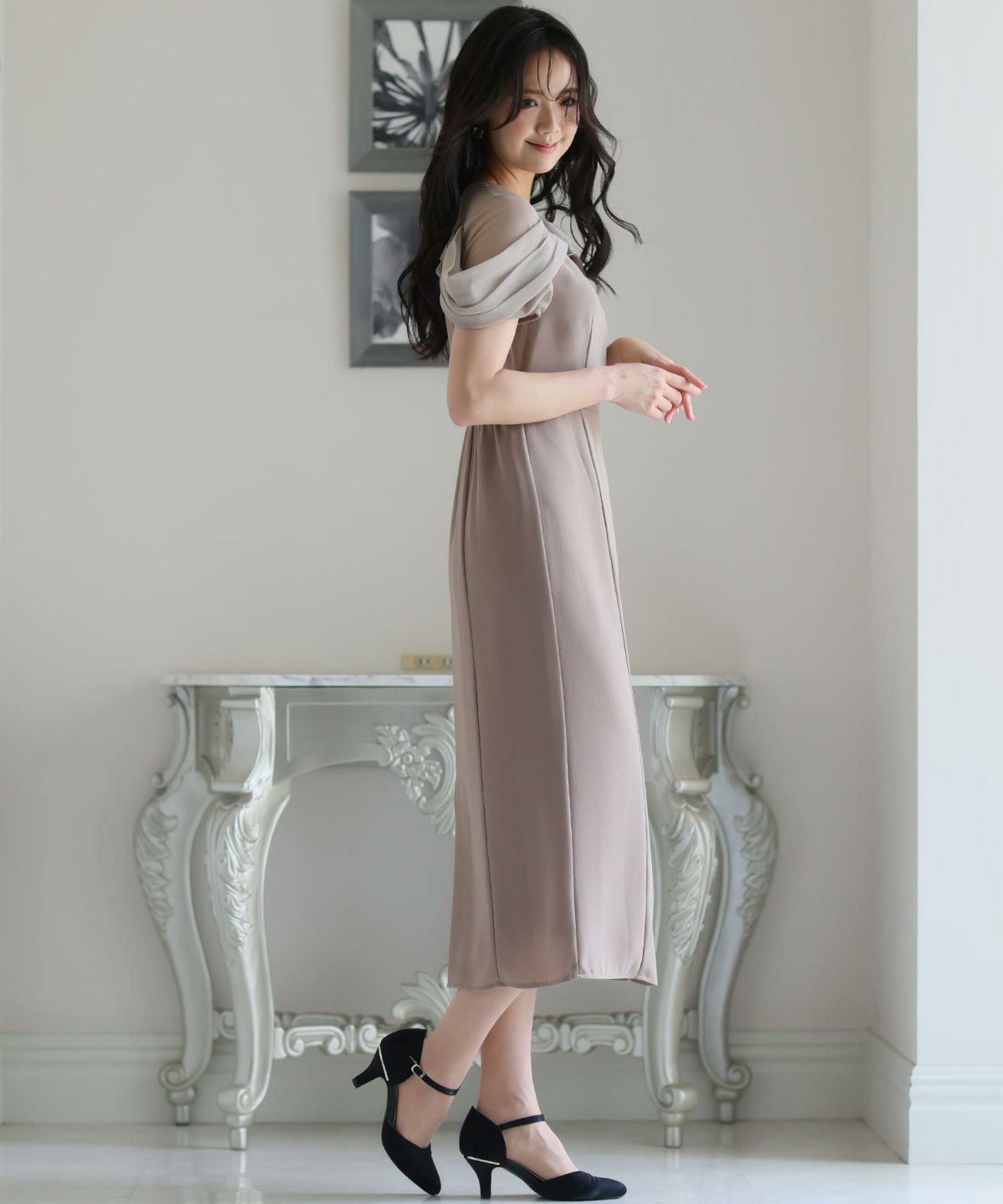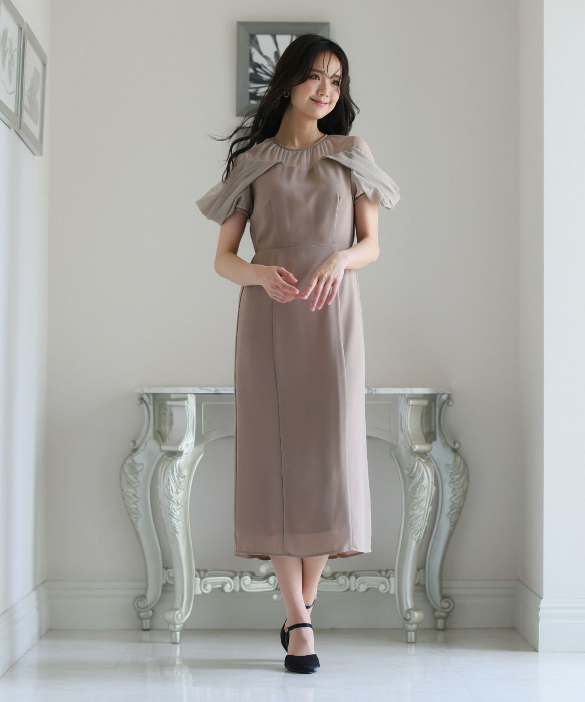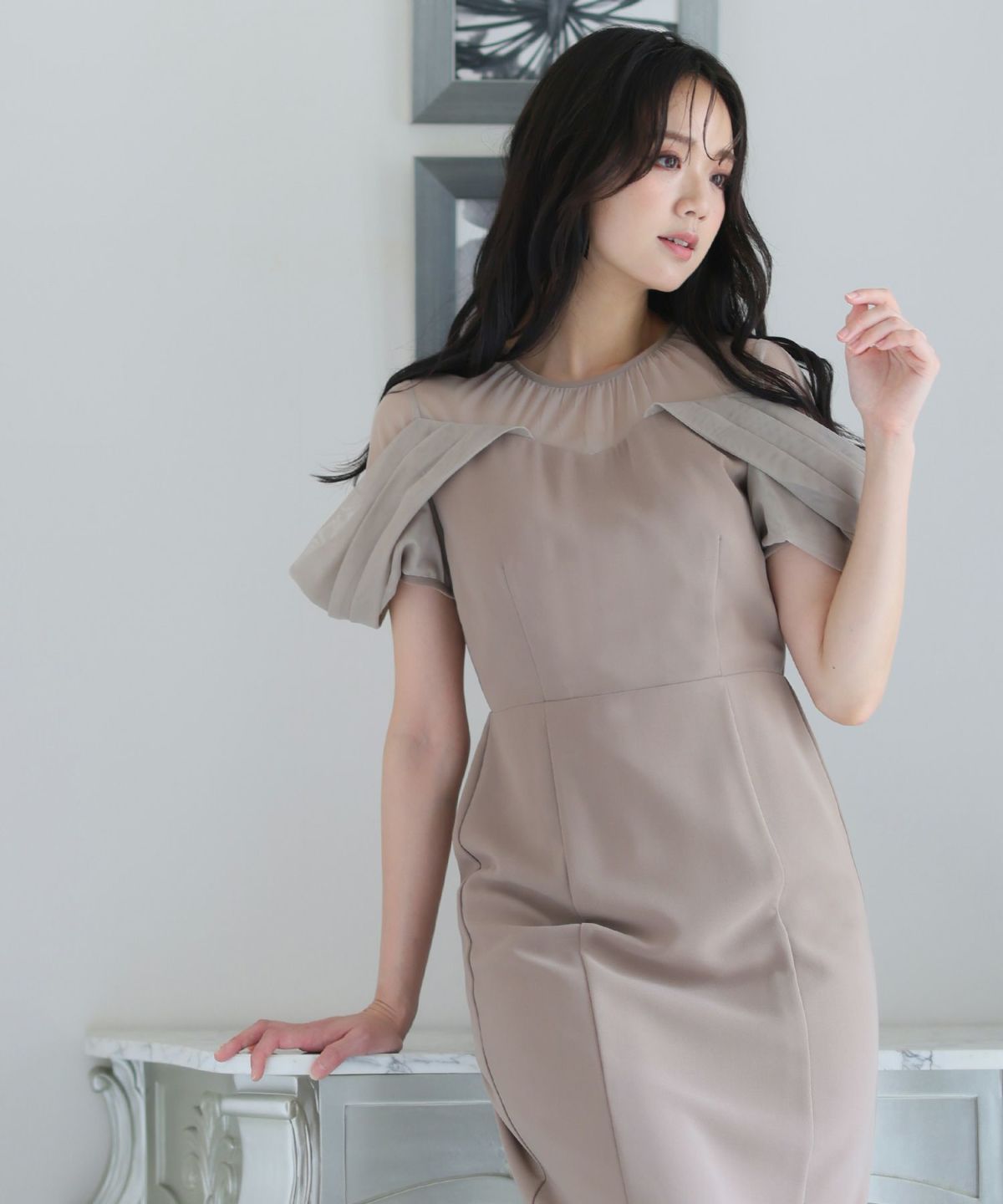 シースルー素材が美しいタイトラインドレス。