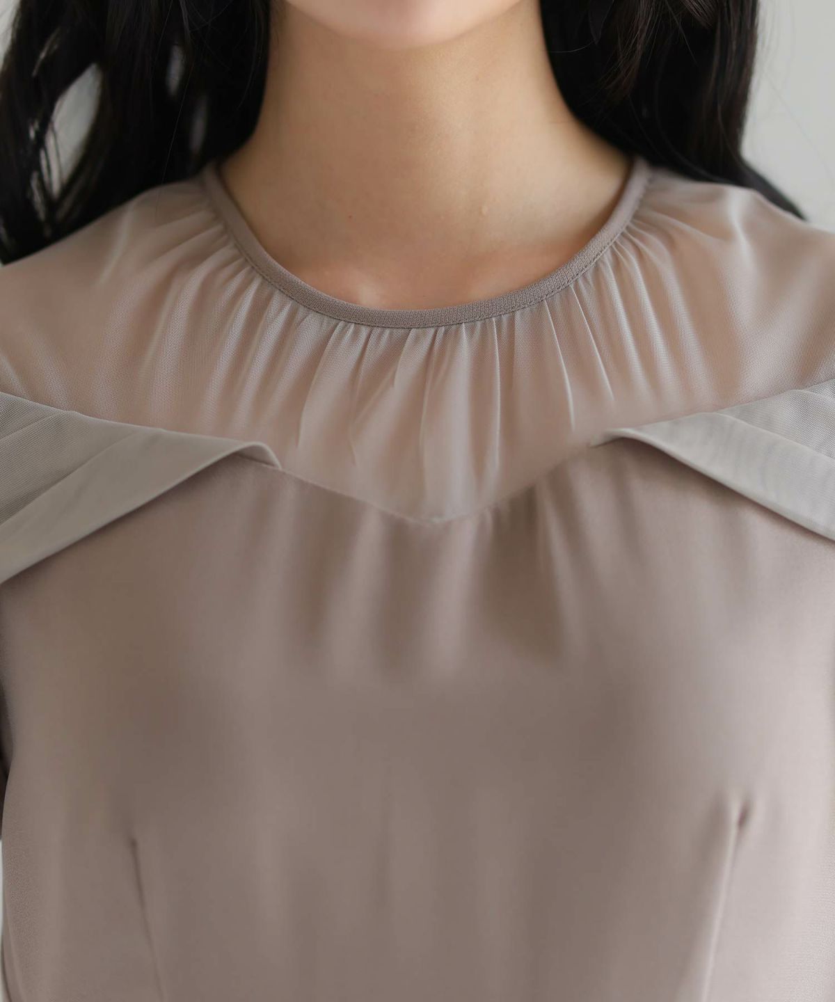 デコルテの程よい透け感が上品。