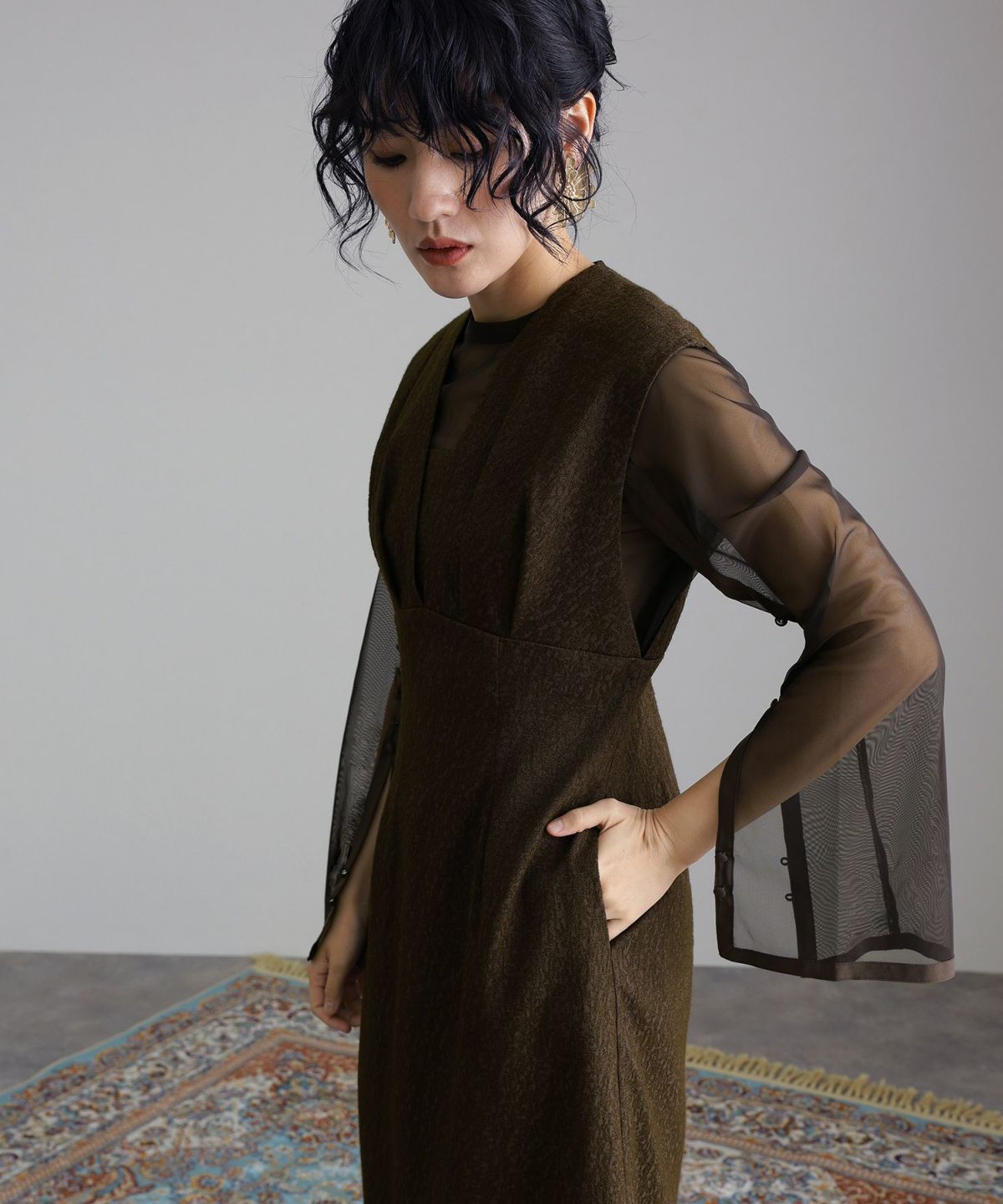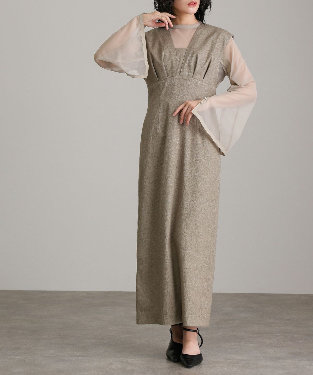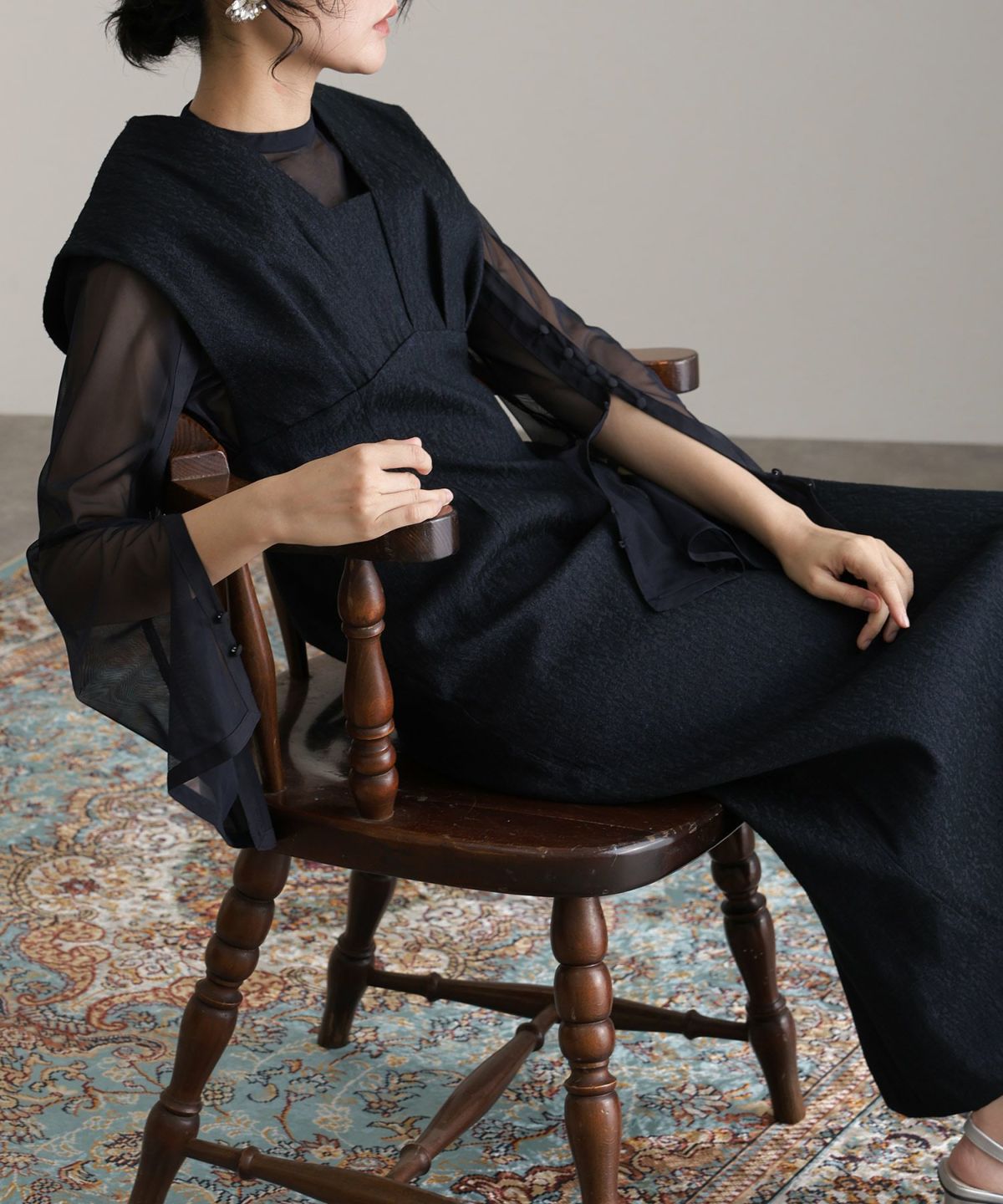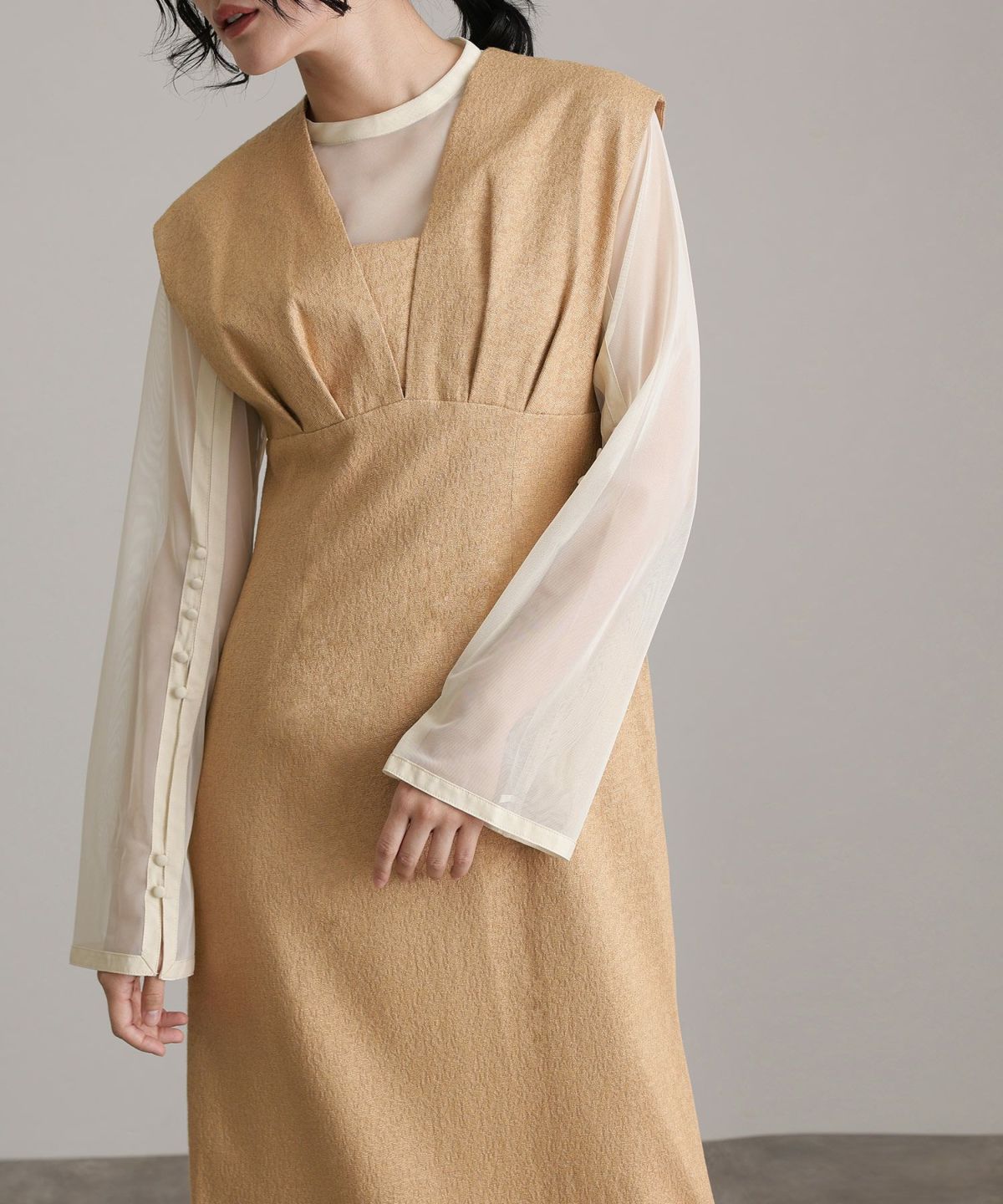 チュール素材のインナーが、控えめな透け感で上品さを演出します。