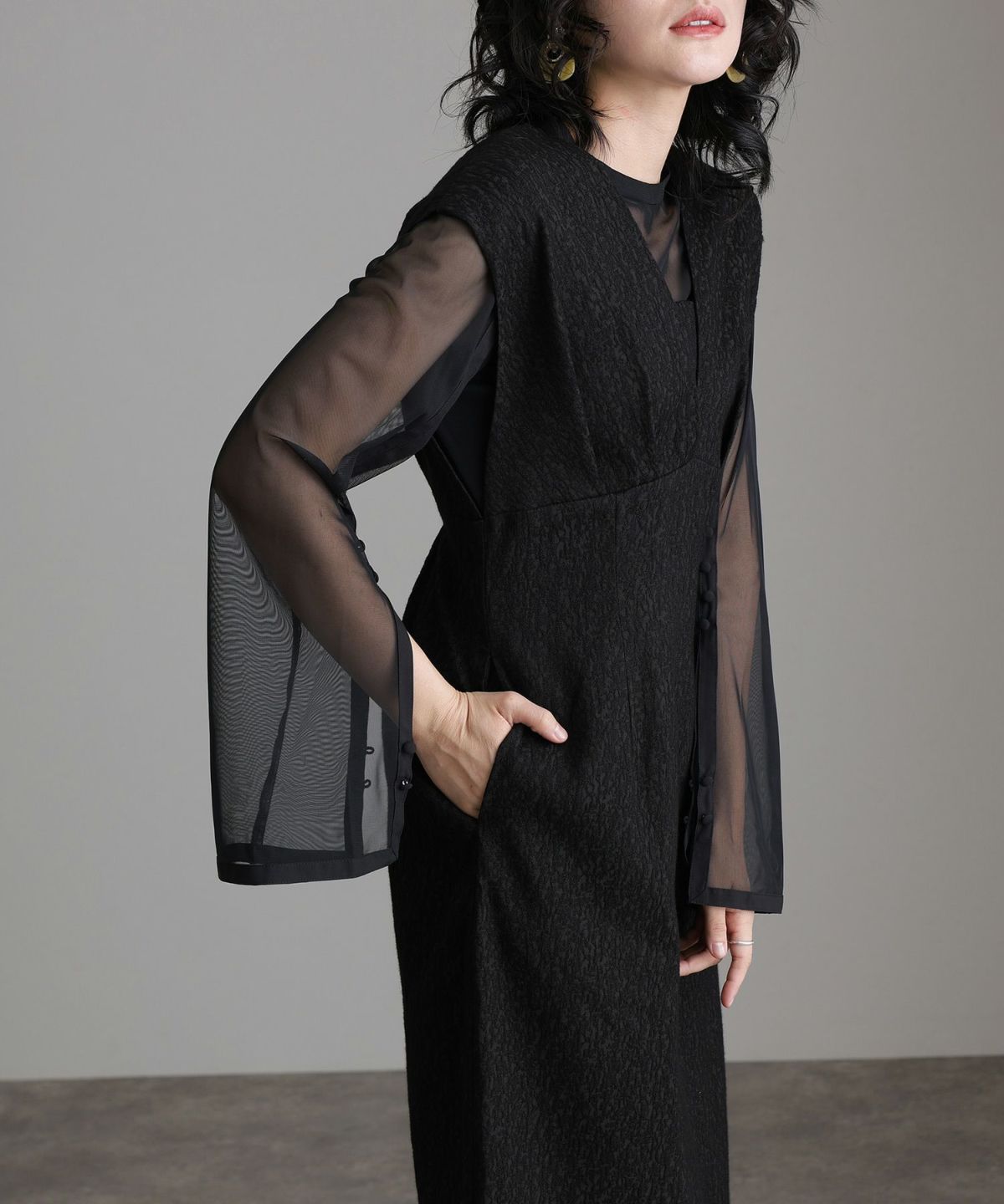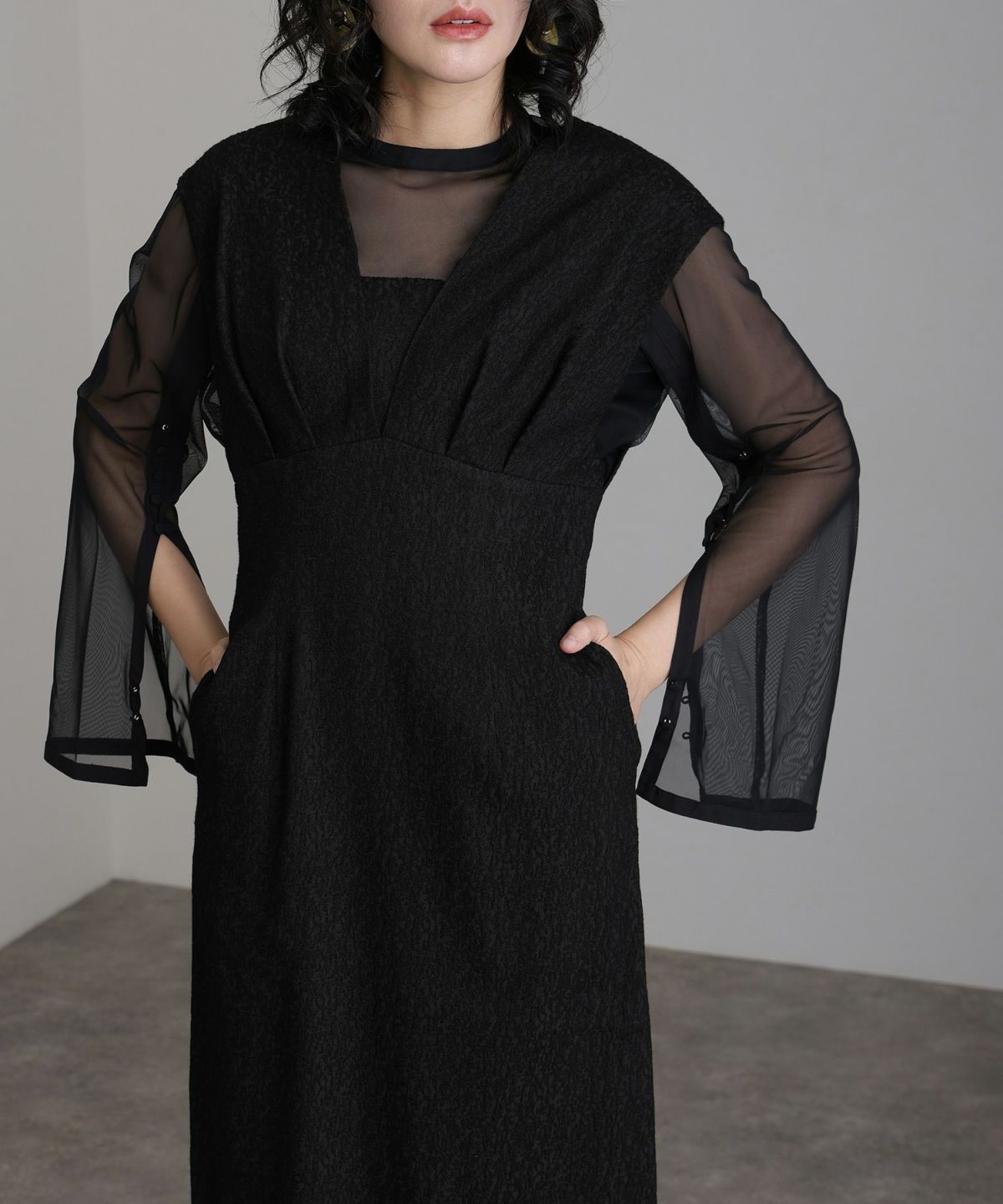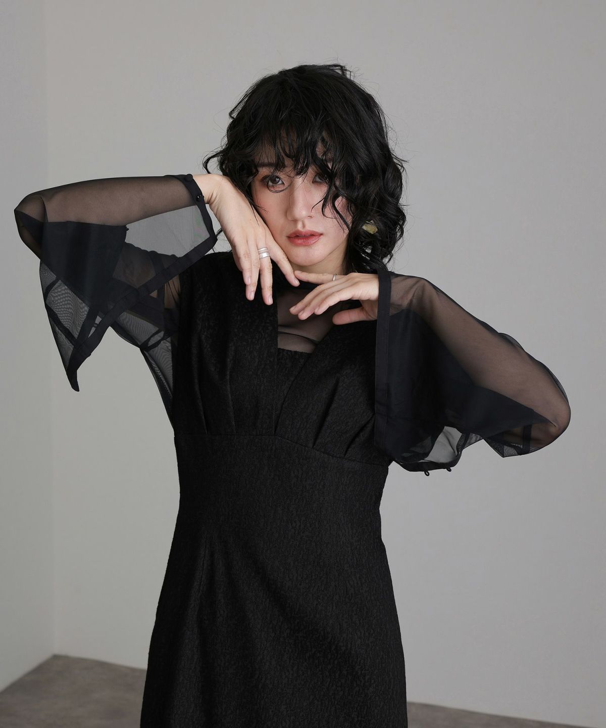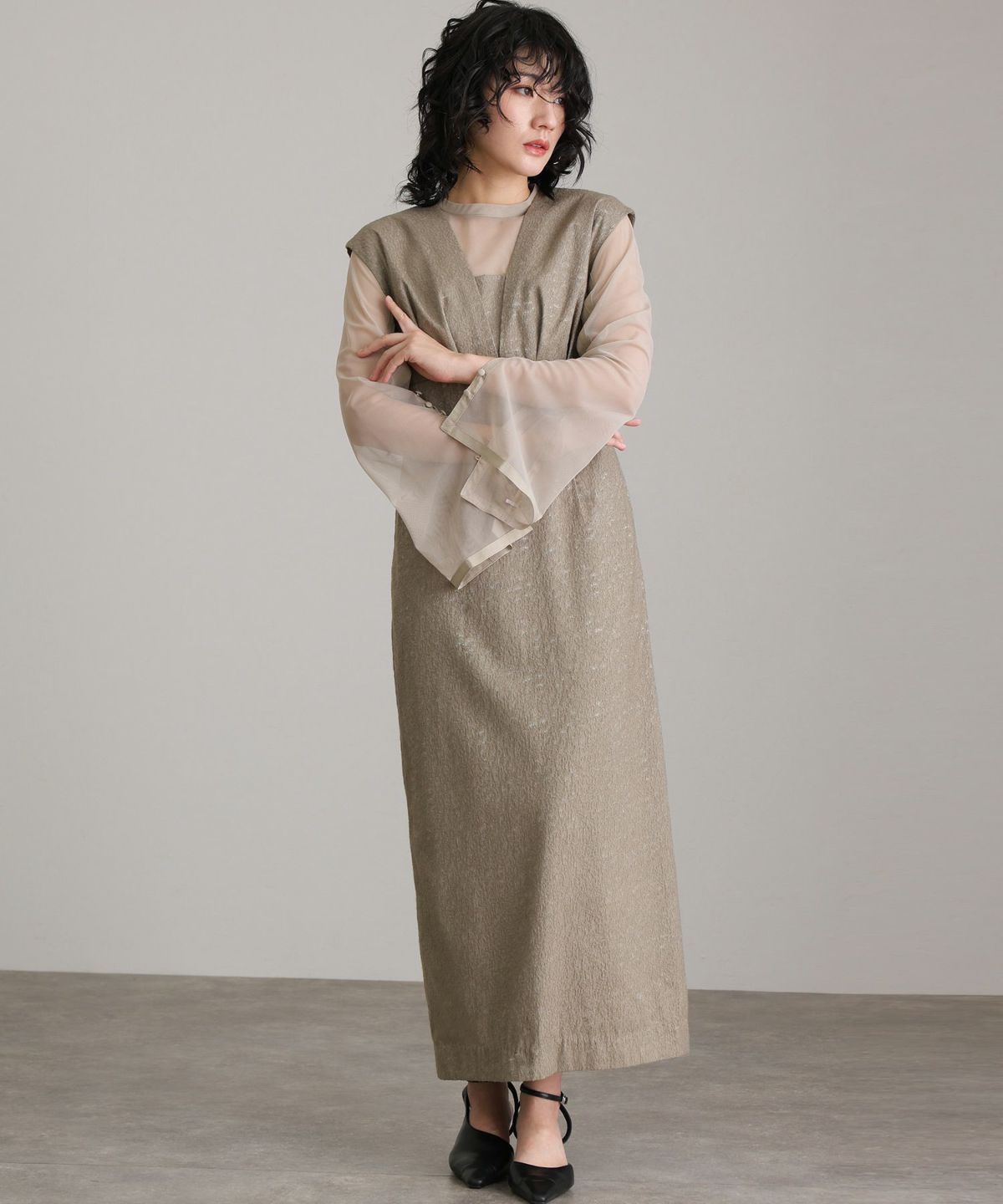 チュール素材のインナーが、控えめな透け感で上品さを演出します。