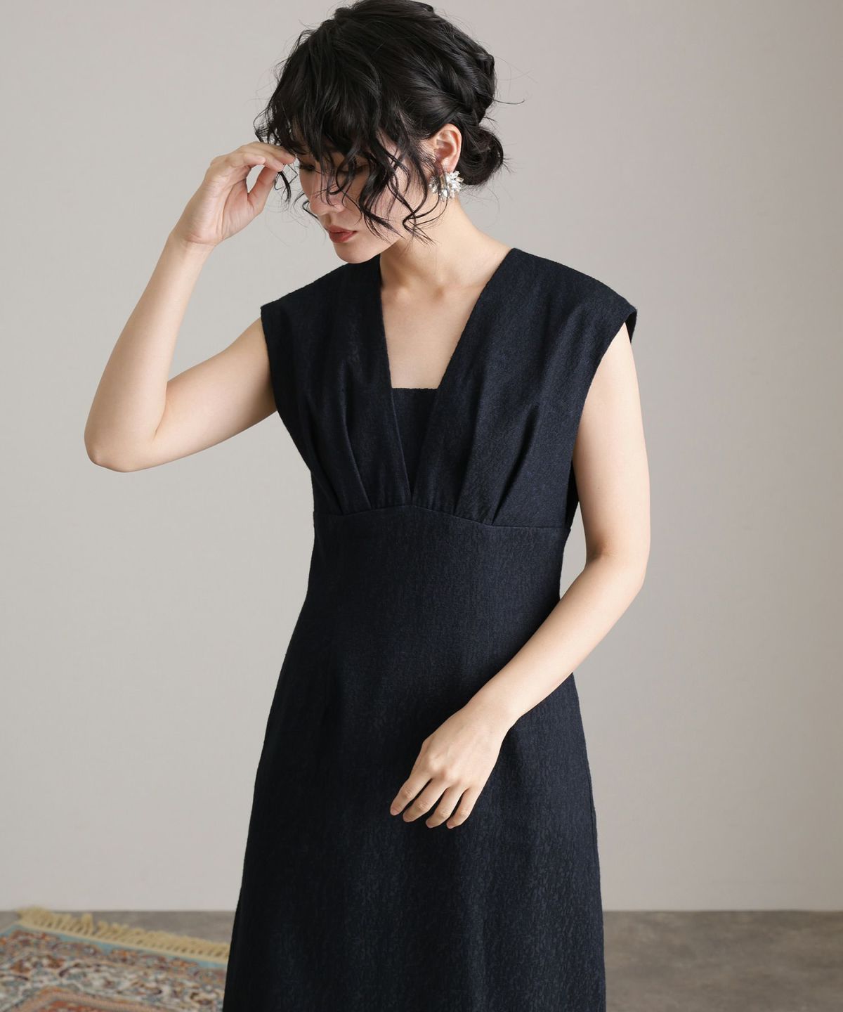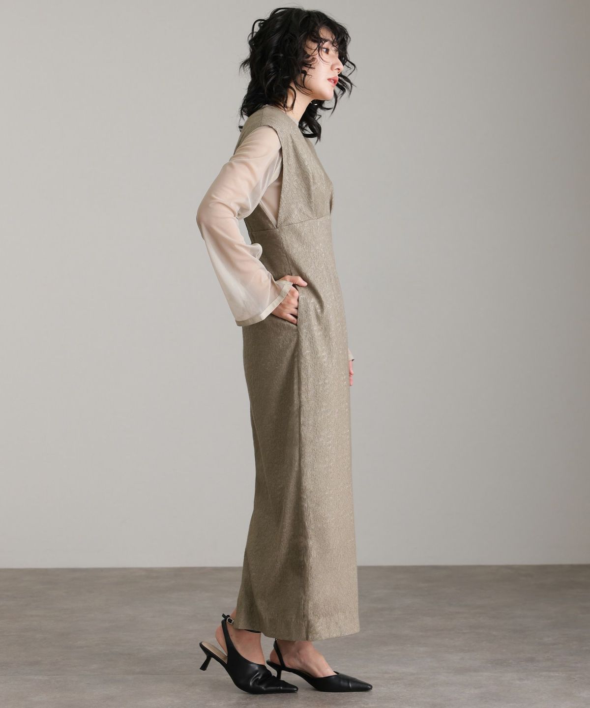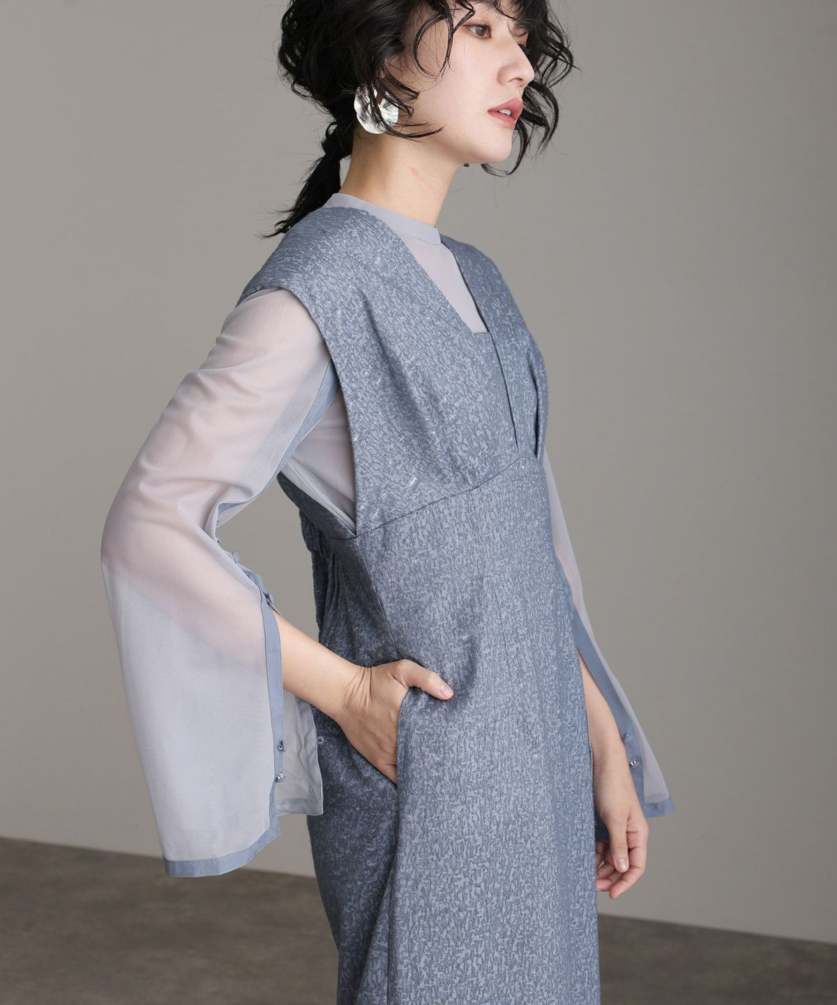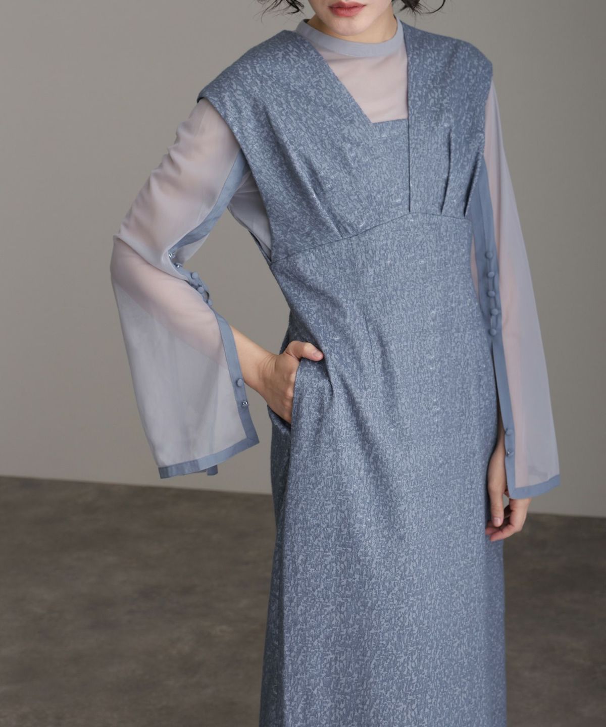 チュール素材のインナーが、控えめな透け感で上品さを演出します。