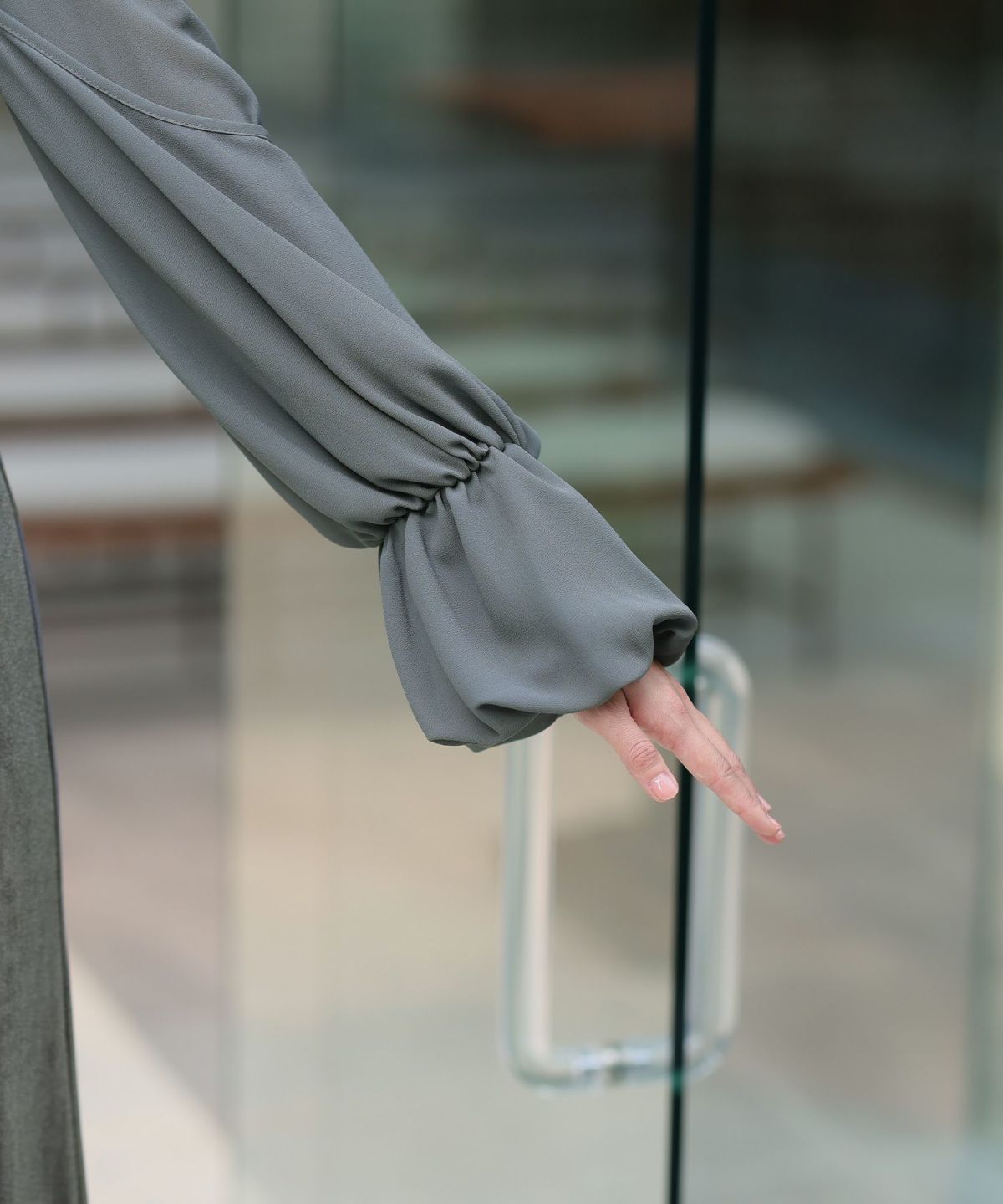 袖のキャンディスリーブでフェミニンな雰囲気に。