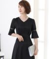 ■ウエストマークでスタイルUP効果体型カバーポイント:【二の腕】【脚】【ウエスト】【ヒップ】ウエストはゴム仕様でストレスなく着用して頂けます。Vネックなので、顔回りをすっきりとした演出。