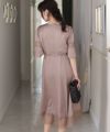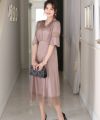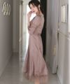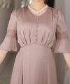 ■スカート裾の切替レースが華やかさをプラス艶やかな光沢感のあるサテン生地のワンピースです。着心地も軽くさらりと着て頂けます。