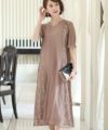 ■ふわっと広がりのあるワンピースで気になるウエストやヒップラインをカバー体型カバーポイント:【二の腕】【脚】【ウエスト】【ヒップ】ウエスト部分に締め付けがなく着心地が良いです。首元は開きすぎず、デコルテ部分を露出したくない方におすすめです。