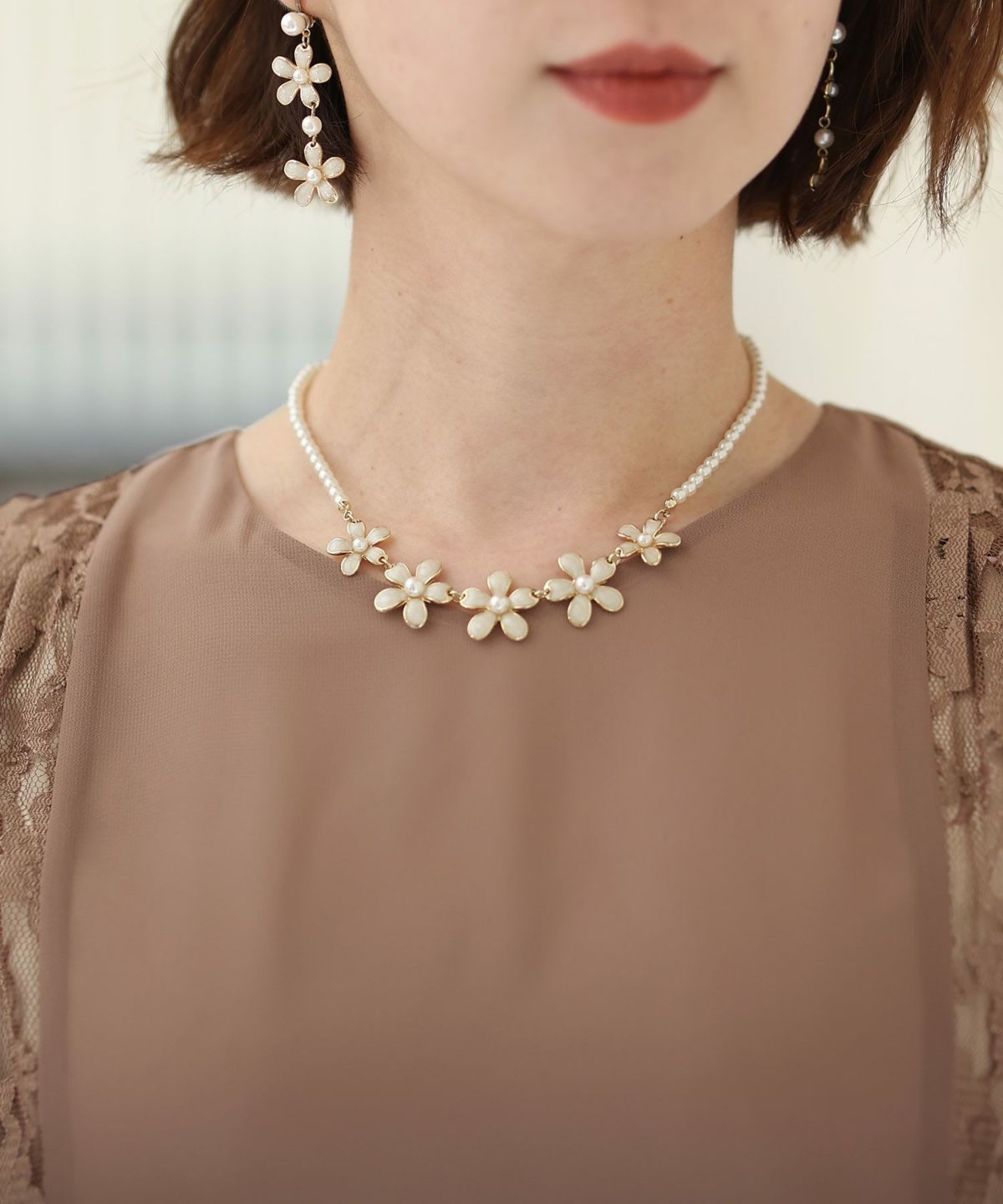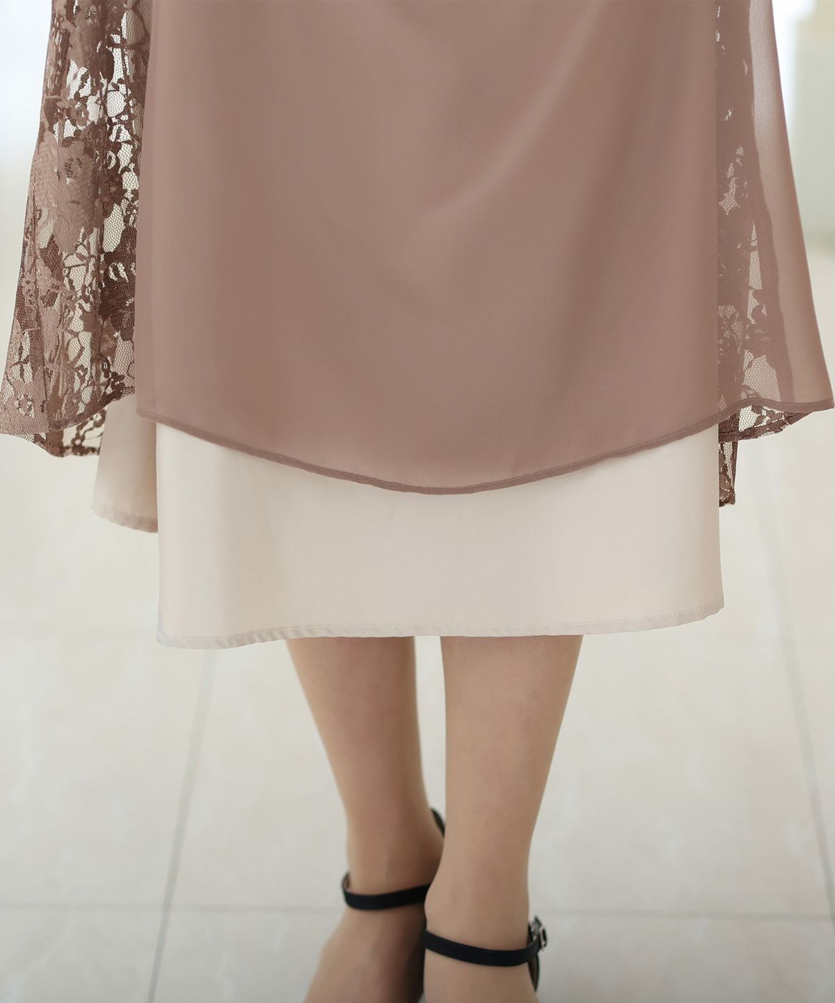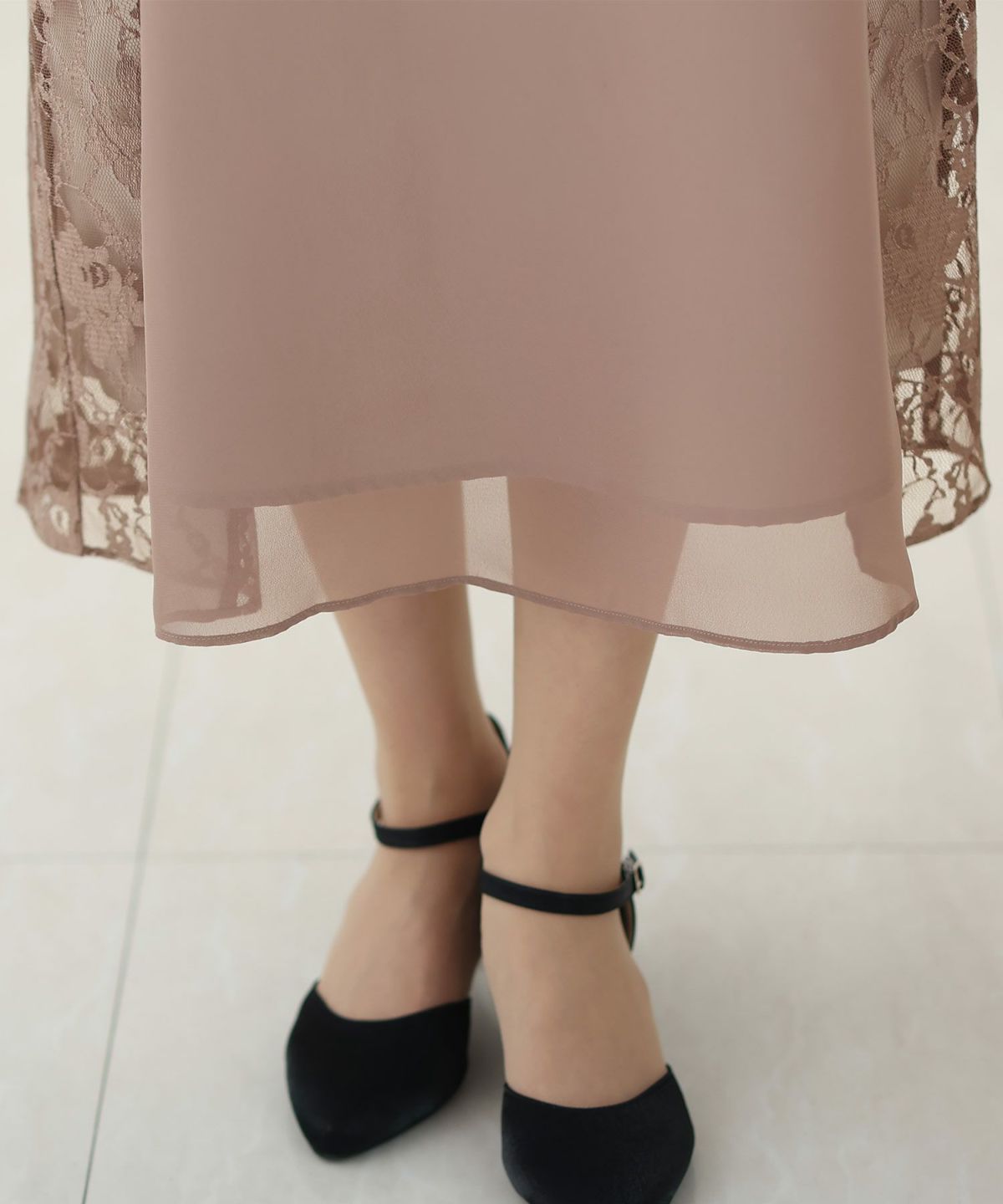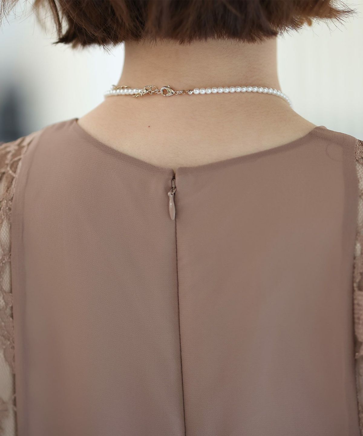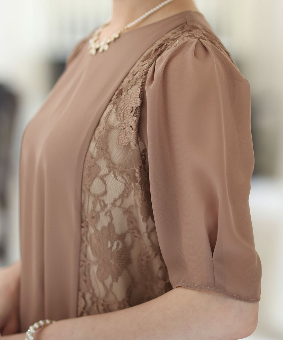 ■肌触りが柔らかく繊細なレースで女性らいい華やかさがありますふわりと柔らかく軽いシフォン素材を使用しています。切替レースの質感も際立ちます。