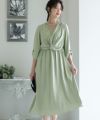 ■体のラインが気にならないシルエット体型カバーポイント:【二の腕】【脚】【ウエスト】【ヒップ】フロントがツイストされていて、気になるウエストをさり気なくカバーしてくれます。首をすっきり見せてくれるシンプルなVネックで、どんなネックレスでもあわせやすい♪