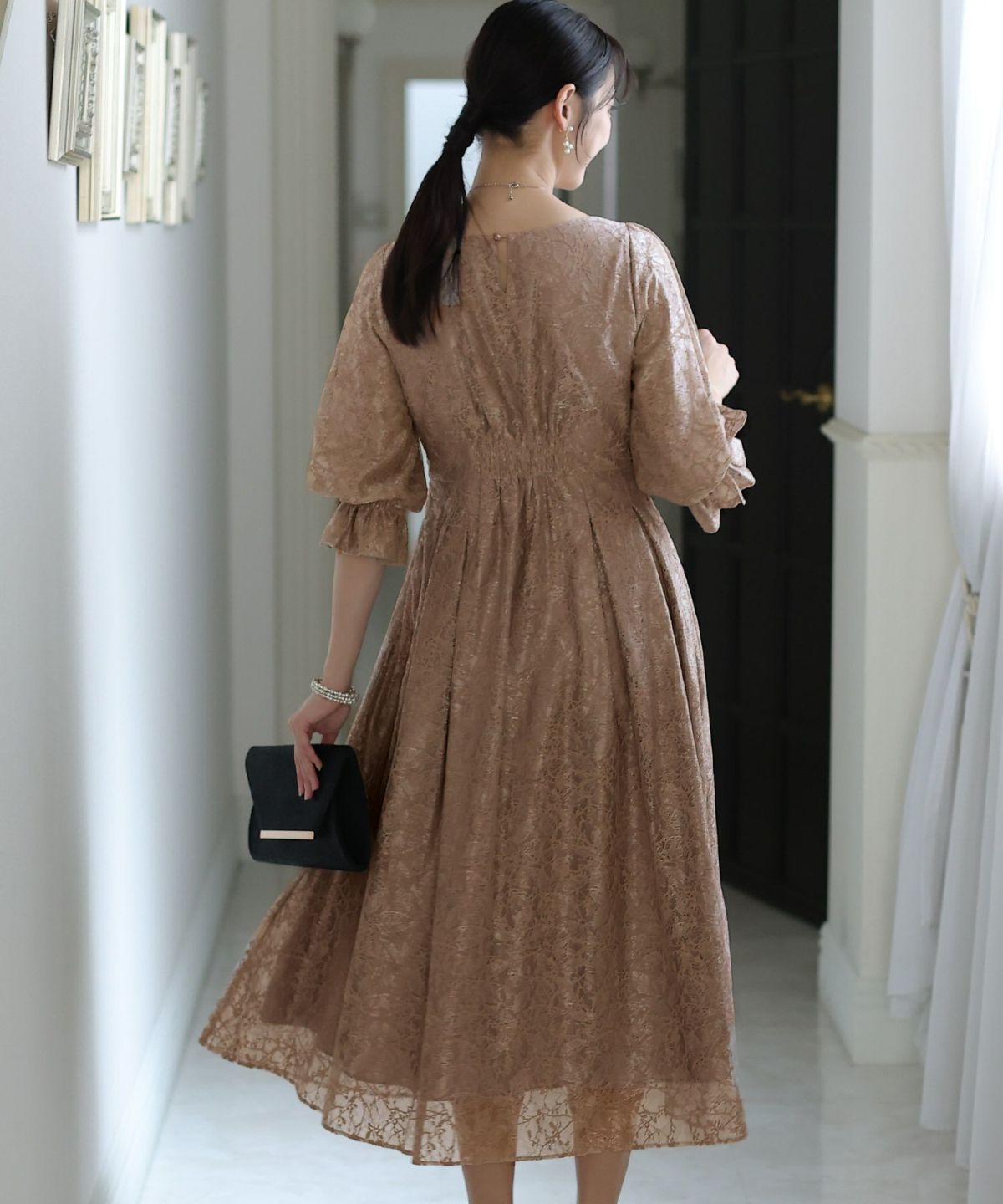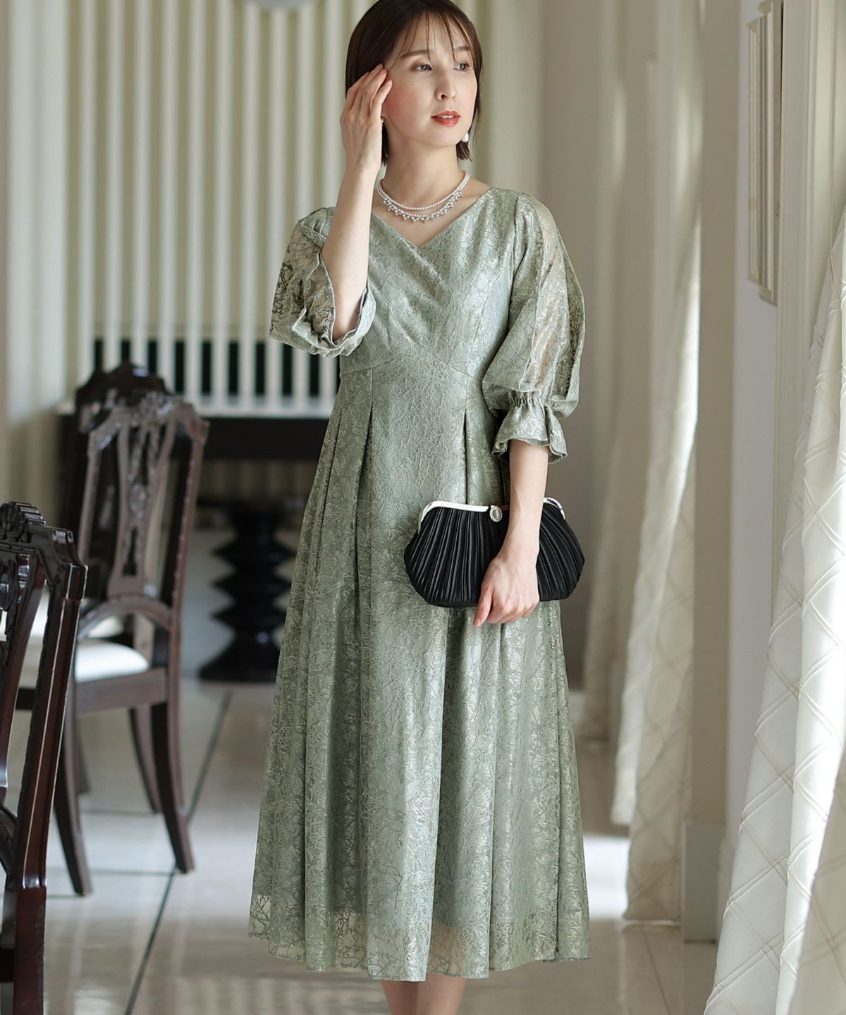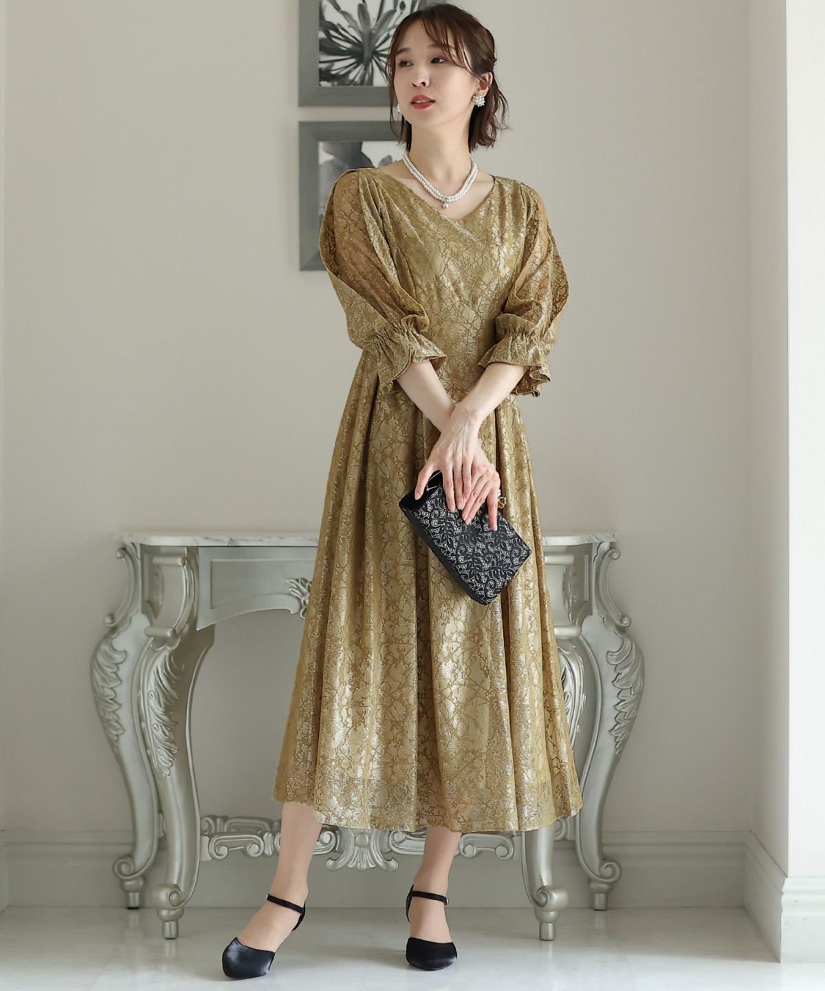 ■ヴィンテージ×レースヴィンテージ感のあるレースがおしゃれなワンピースです。光沢感のある糸を使用したレースが華やかで上品な印象に。Vネックなのでデコルテもきれいに見せてくれます。オケージョンシーンはもちろん女子会や特別なお食事にもおすすめ。