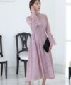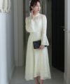 ■シアー×ジャガードレースシアー感がトレンドライクなジャガードレースのワンピース。ベルスリーブとハイネックで上品な雰囲気を演出します。後ろにはリボン付きでバックスタイルも可愛い印象に。軽く着心地が良いワンピースで、普段使いにもぴったりです。