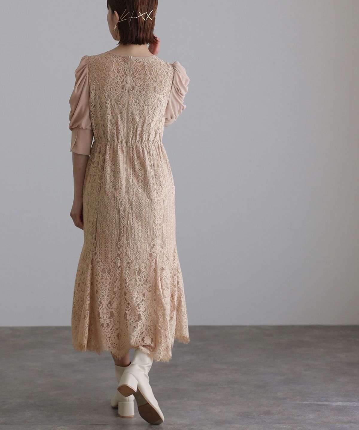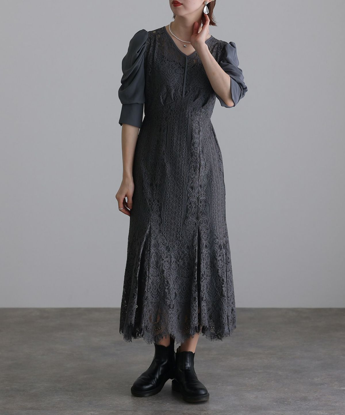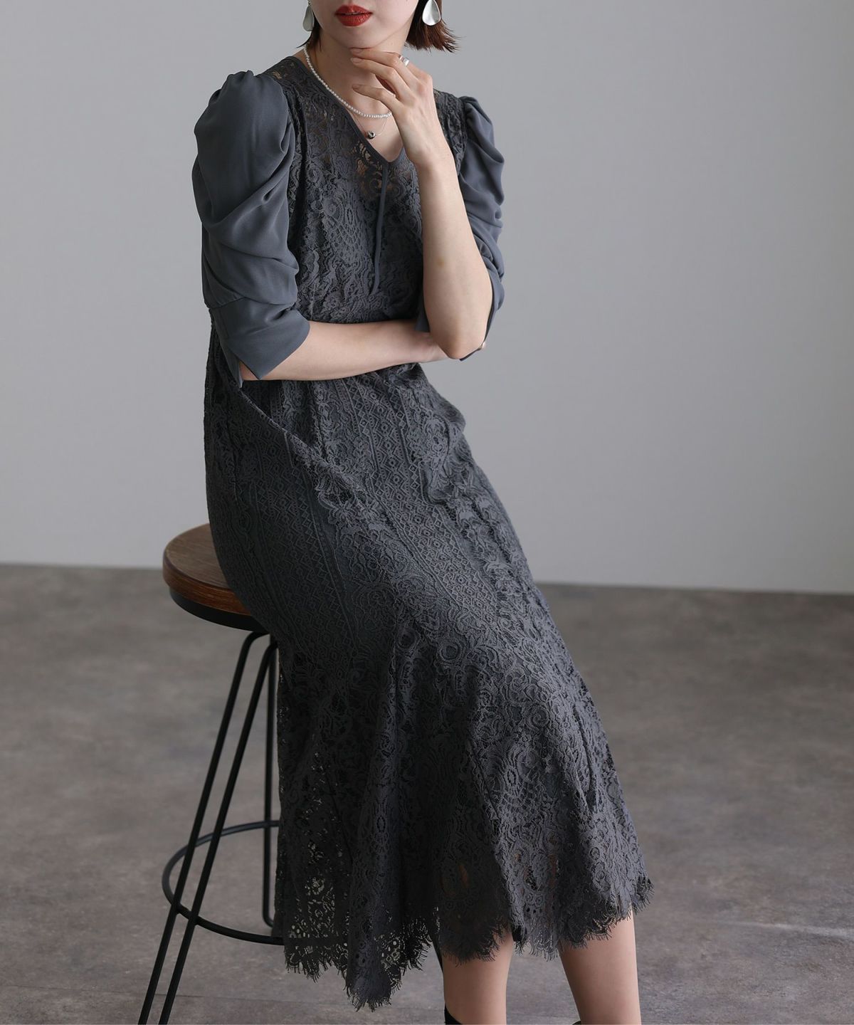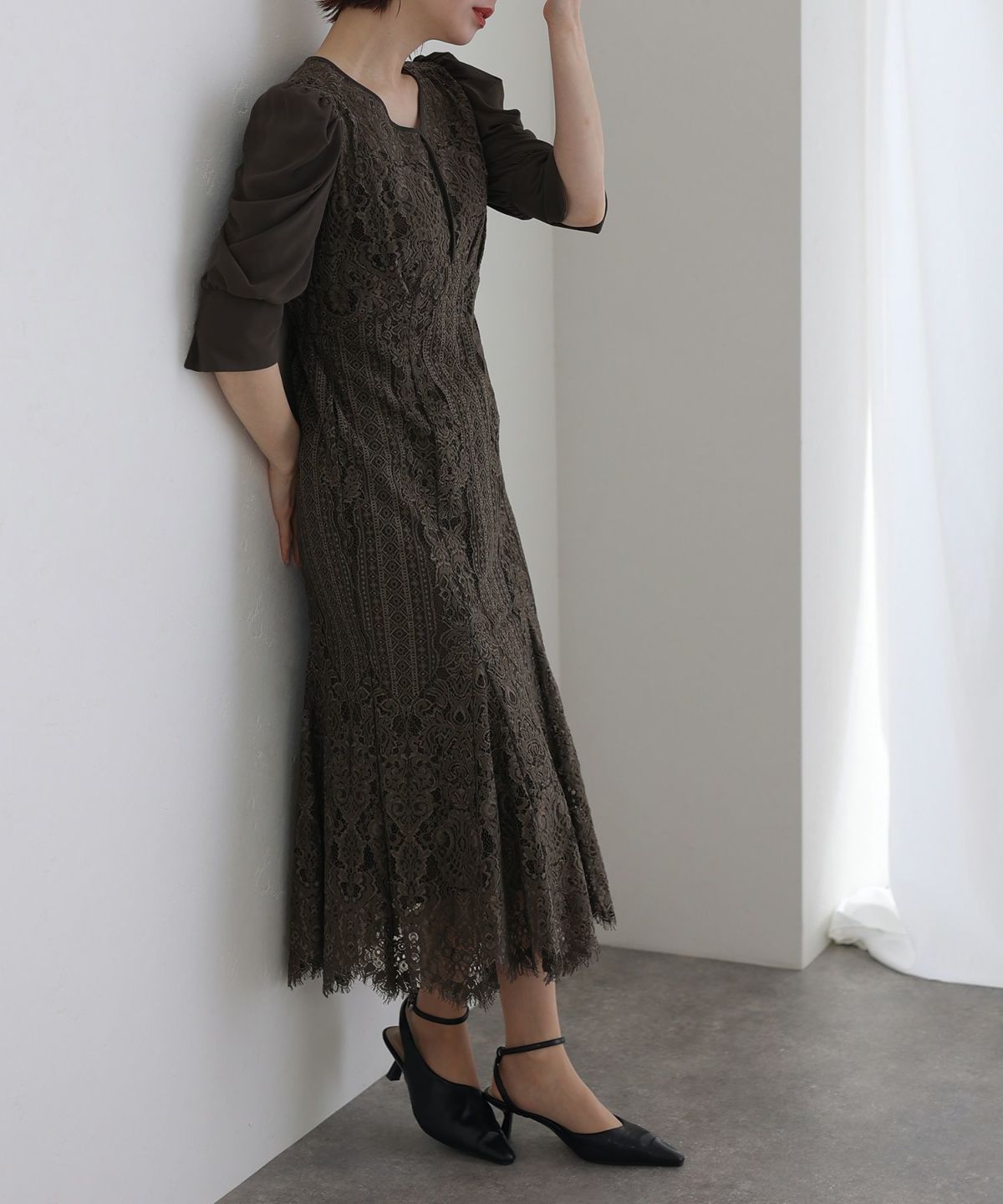 ■レースとシフォンの異素材の組み合わせが可愛い落ち着いたカラー展開でおとな女子におすすめのアイテムです。