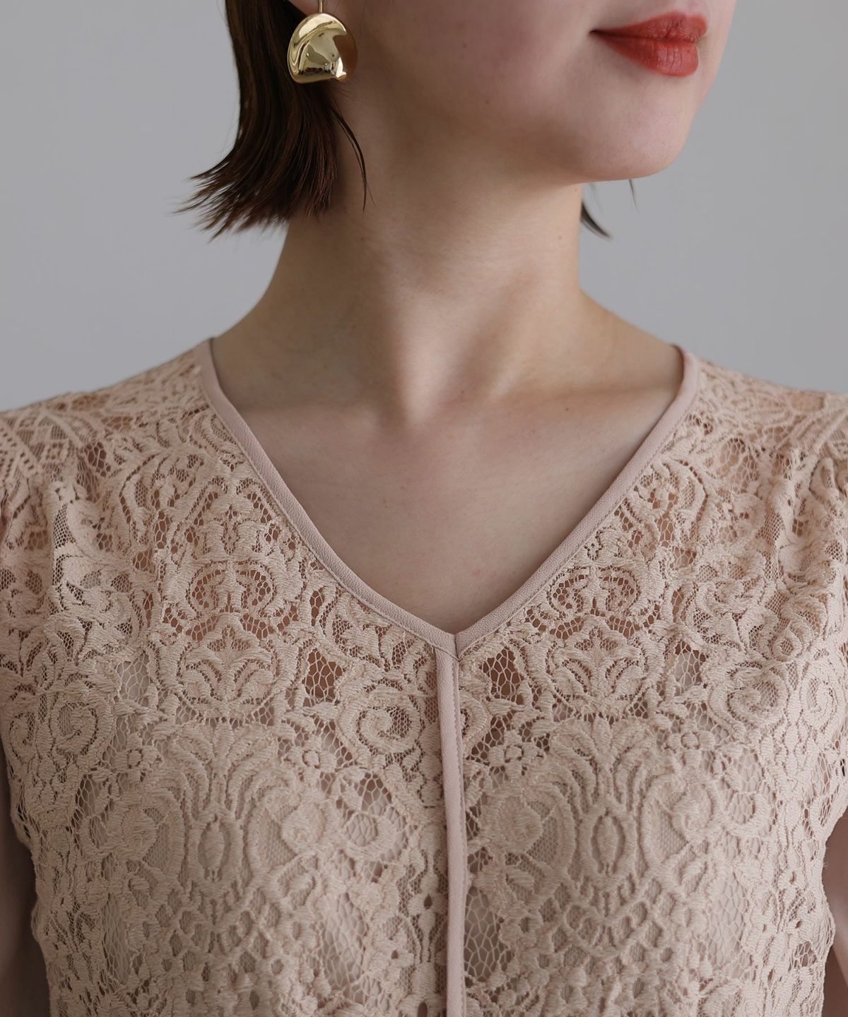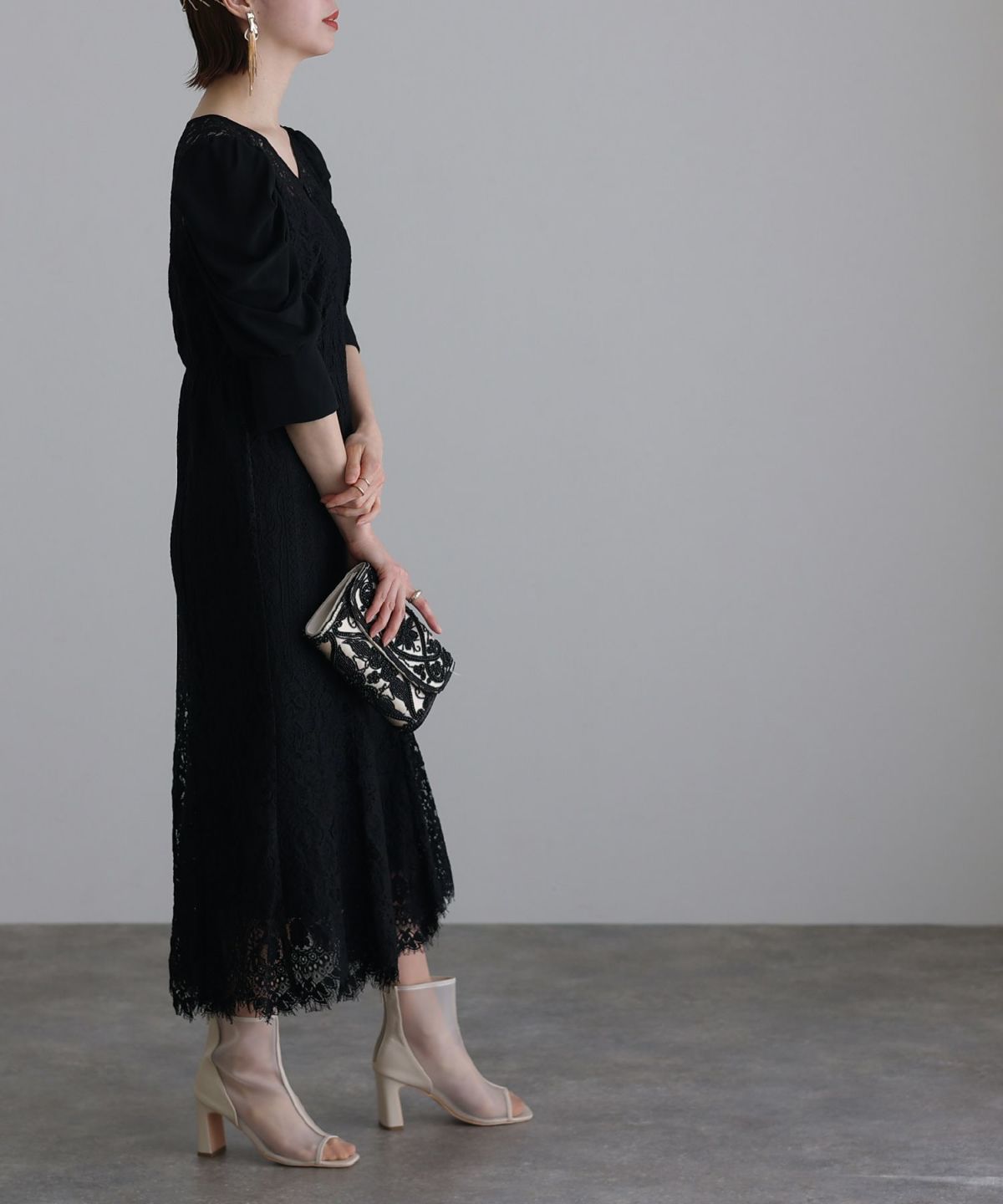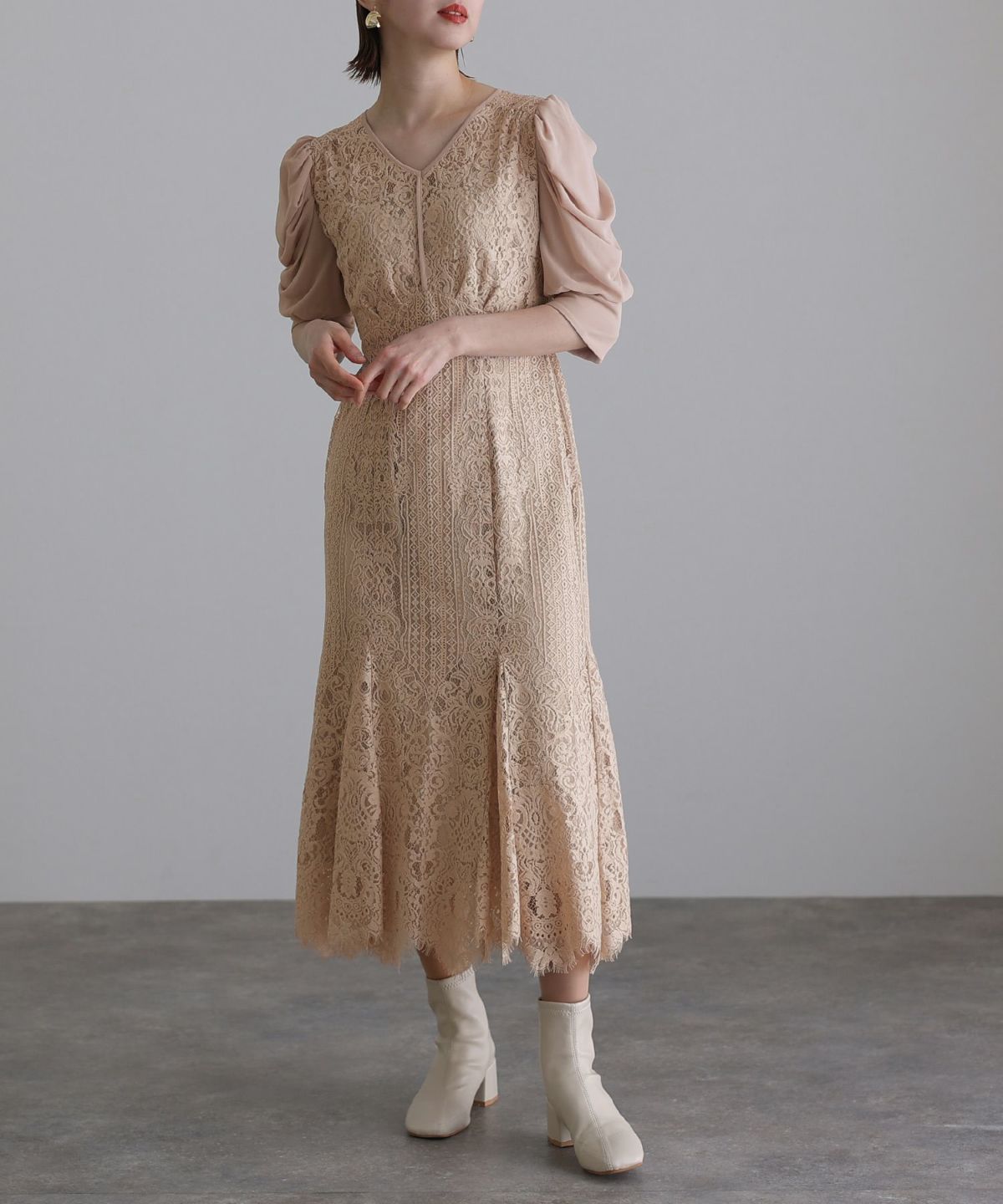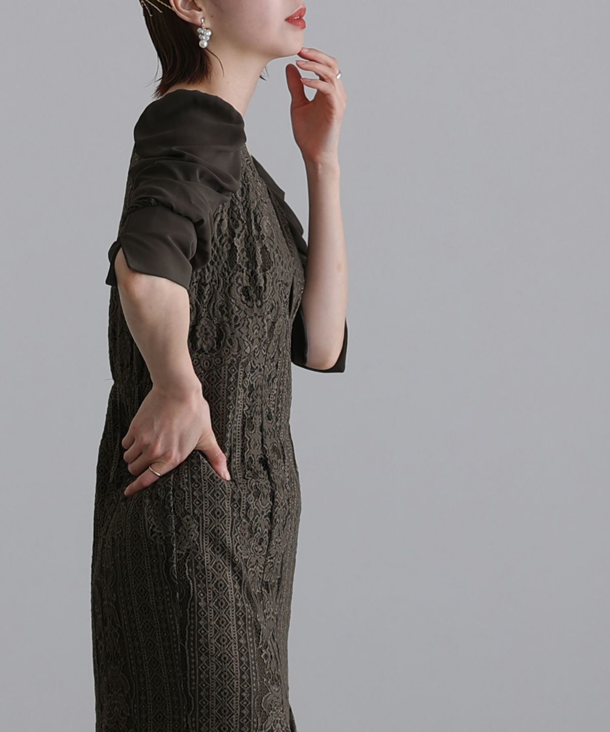 ■レースとシフォンの異素材の組み合わせが可愛い落ち着いたカラー展開でおとな女子におすすめのアイテムです。