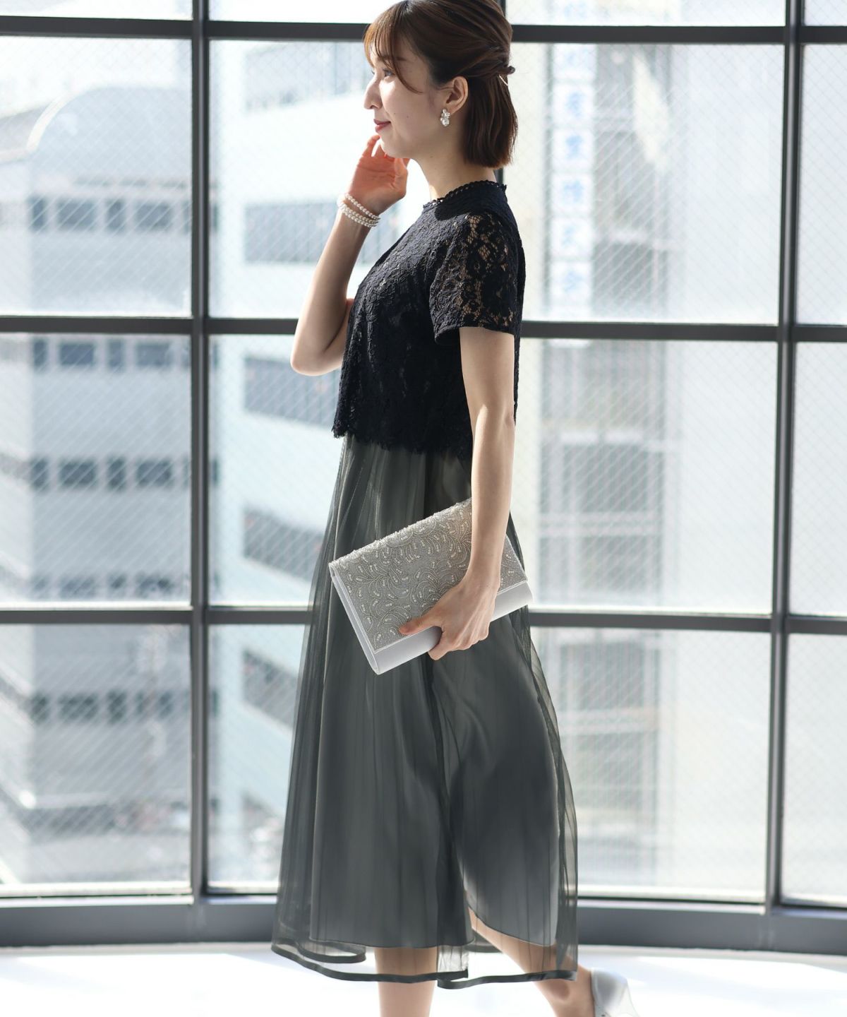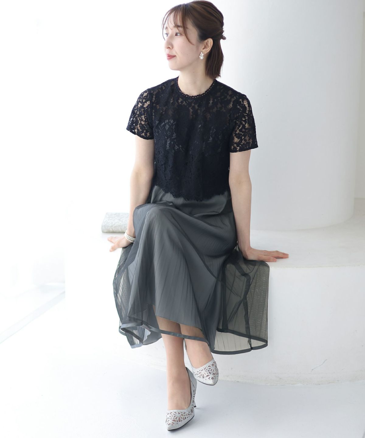 ■レース×チュールレースとチュールの切り替えが可愛いワンピースです。袖やデコルテの程よい透け感で上品な印象に。落ち着いたカラーのチュールスカートは甘すぎず大人女性にぴったり。オケージョンシーンや特別なお食事会にもおすすめ。