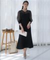 ■デコルテ~袖の程よい透け感が大人っぽい体型カバーポイント:【二の腕】【脚】【ウエスト】ふんわりとしたスリーブで気になる二の腕をカバーしてくれます。高めのウエスト切り替え位置でスタイルアップ効果も。
