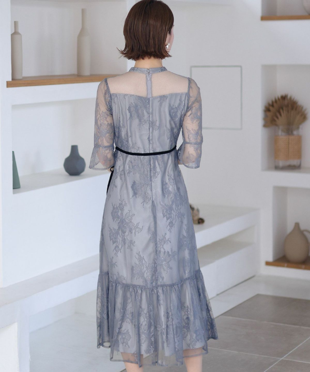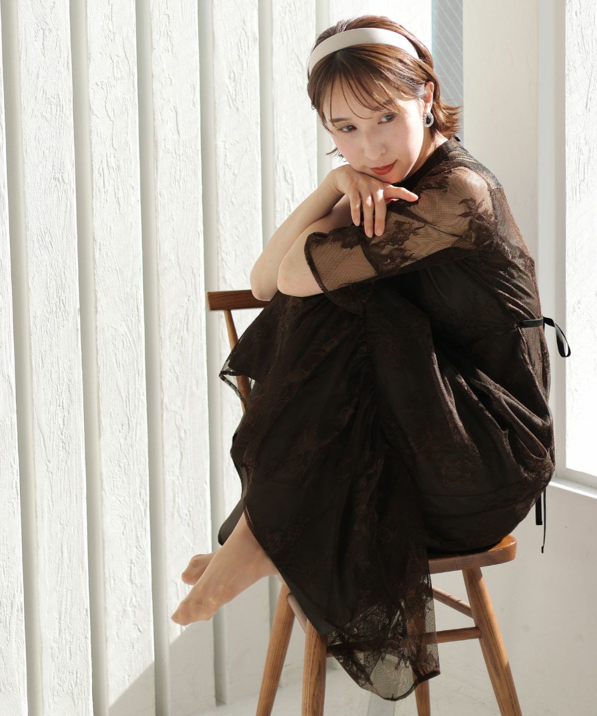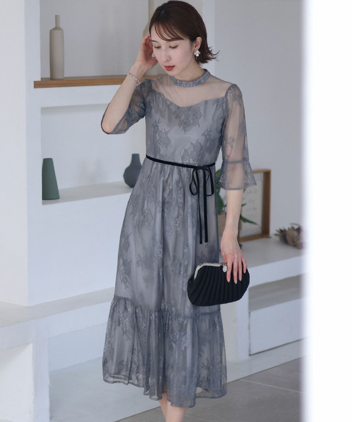 ■繊細なレースが大人女性にぴったり軽やかな生地感で着心地も良く、スカート裾のワンティアードデザインがさらに華やかさをプラスします。