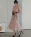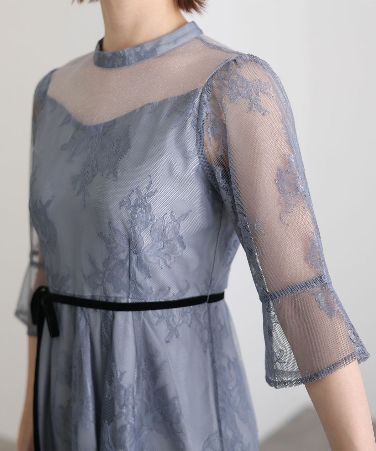 ■フラワーレース×ラメチュールデコルテ部分のラメチュールと程よい透け感が可愛いワンピースです。フラワーレースで上品で華やかな印象に。バックリボンデザインで後ろ姿もかわいいアイテム。オケージョンシーンから特別なお食事会、デートまで幅広くお使いいただけます。