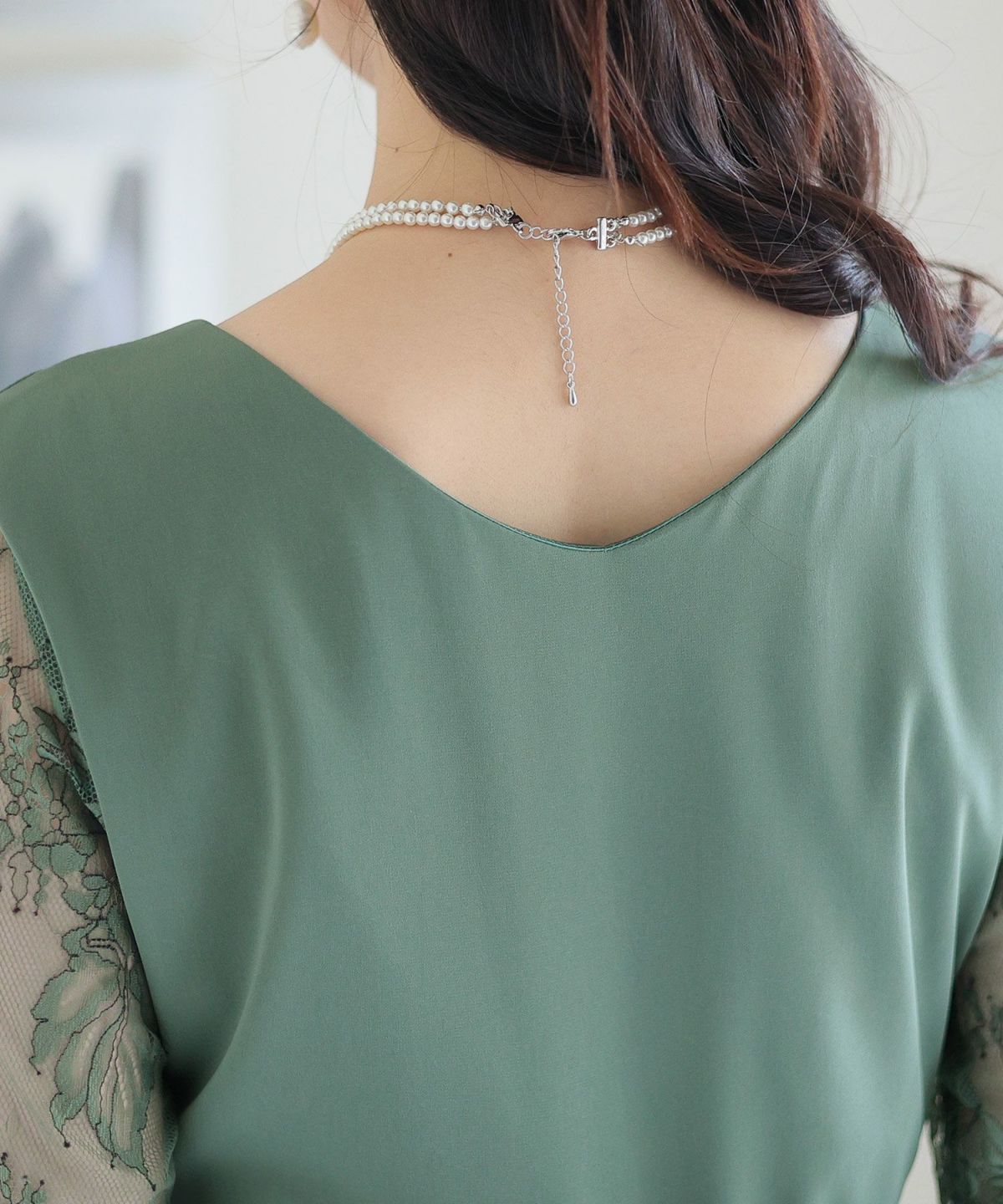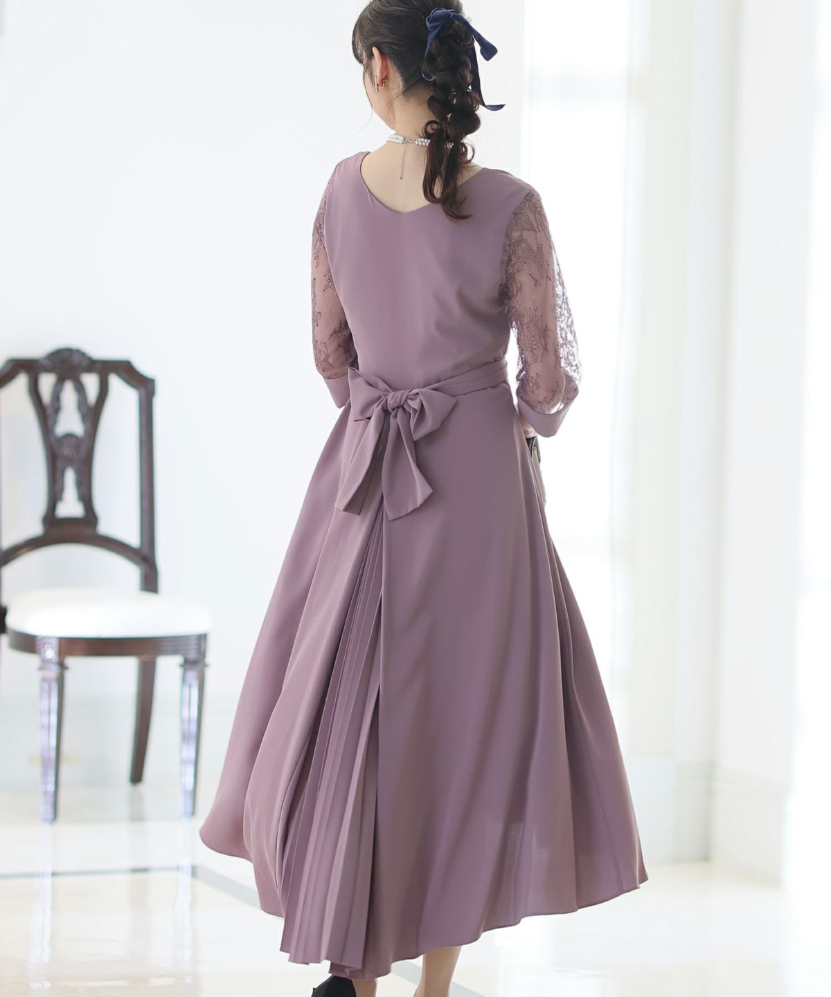 ■リボン×プリーツバックセンターに入ったプリーツデザインが可愛いワンピースです。コードレースに切り替えられたスリーブ部分の透け感が可愛い。ウエスト部分のリボンは前後ろどちらで結んでも◎オケージョンはもちろん、特別な日のお出かけにもおすすめです。