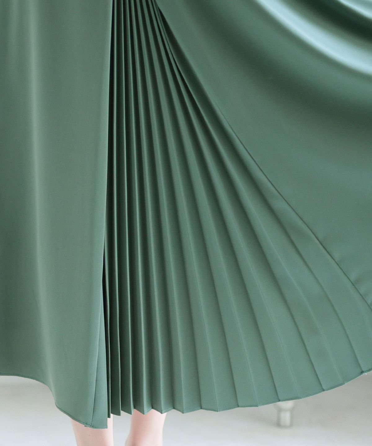 ■プリーツを組み合わせた華やかなスカート前から見ても後ろから見ても可愛いデザインのワンピースです。