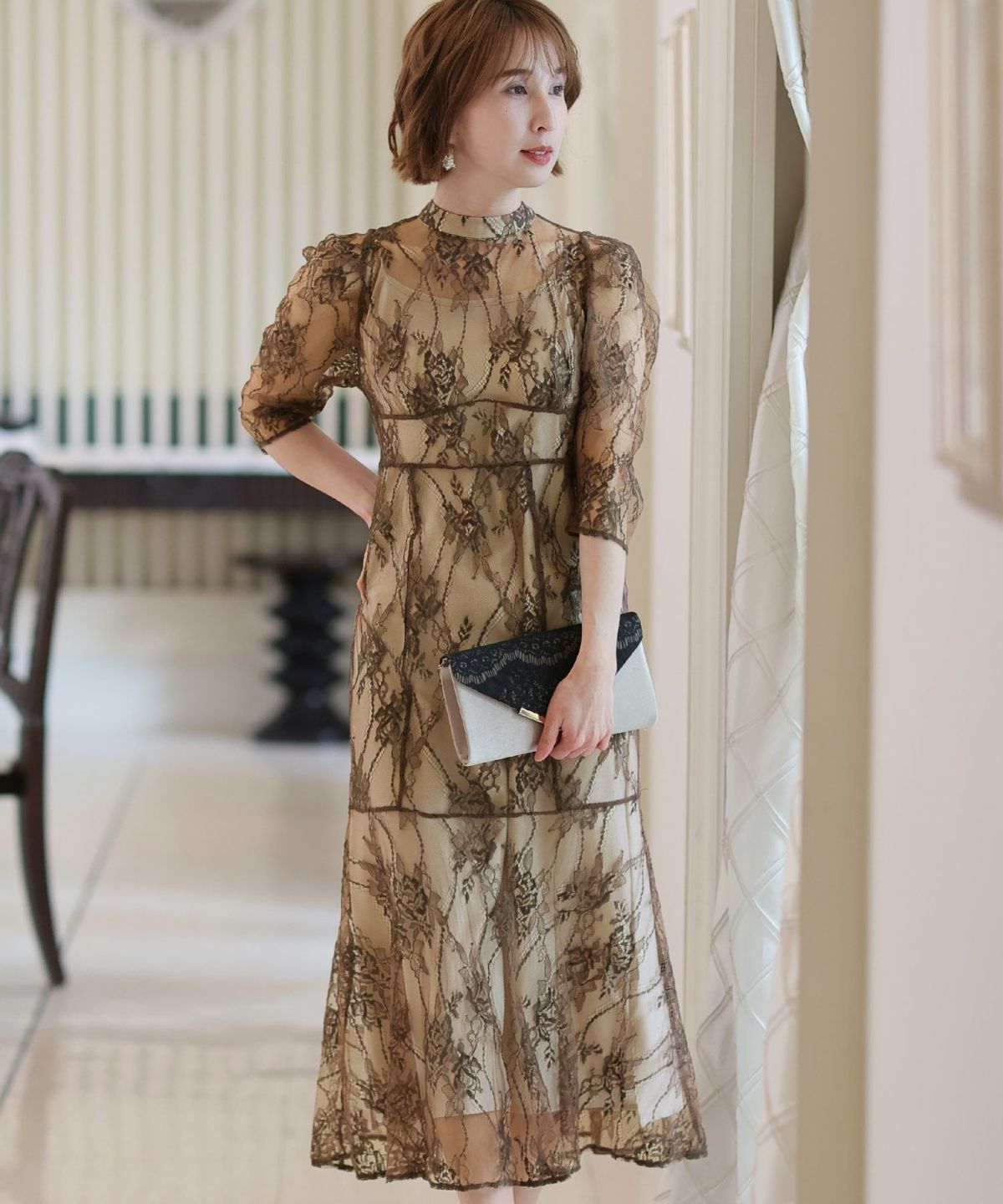 ■マーメイドシルエットが女性らしい総レースが華やかで存在感のあるワンピースです。