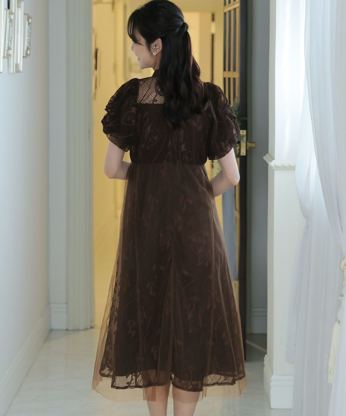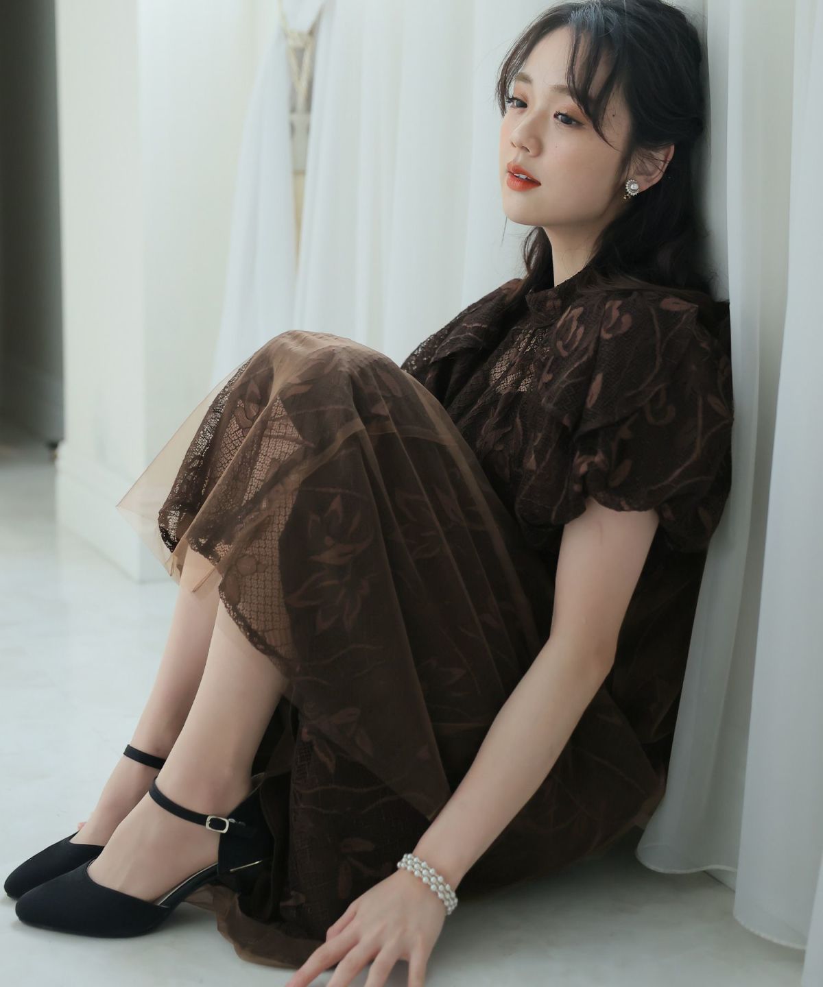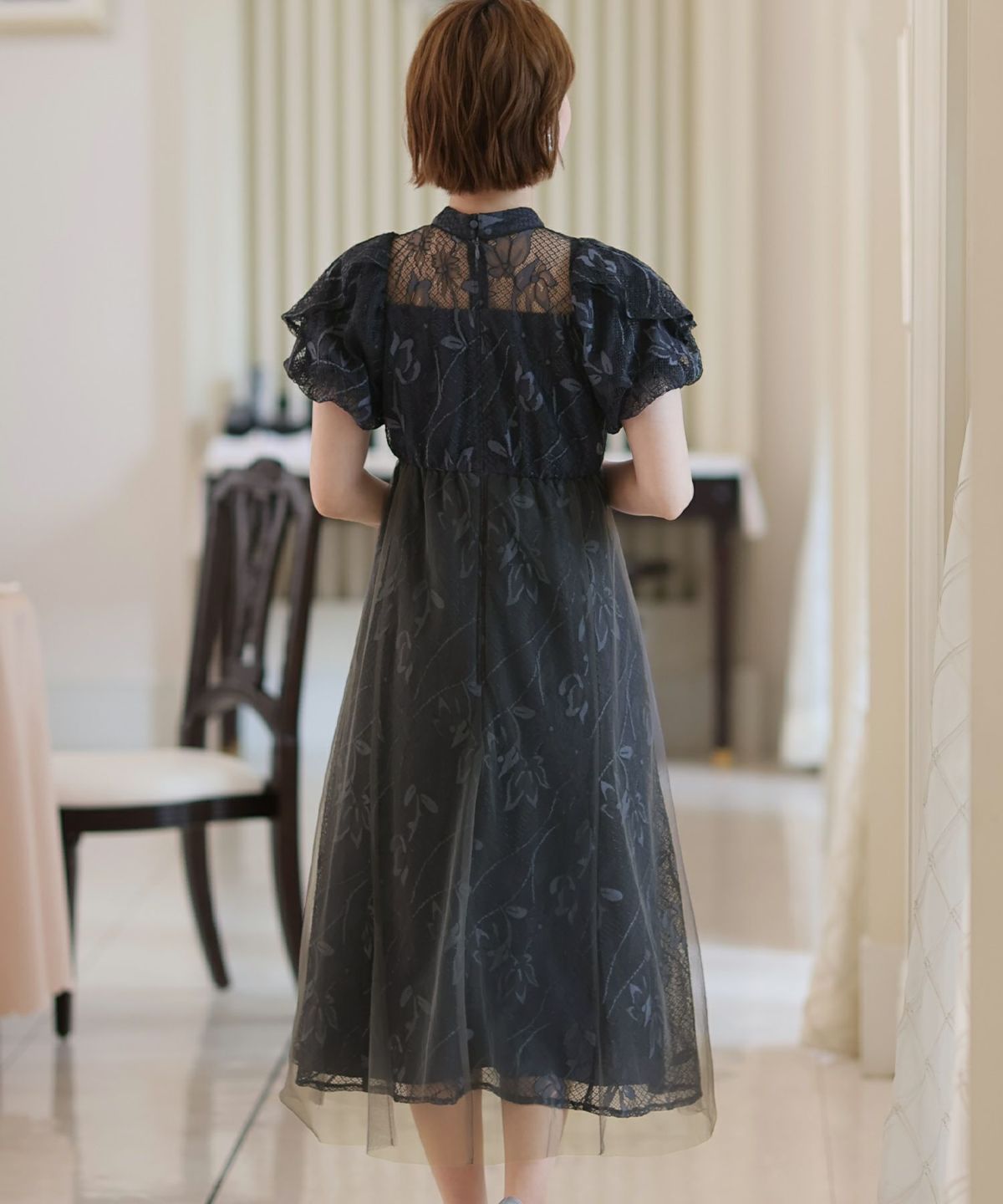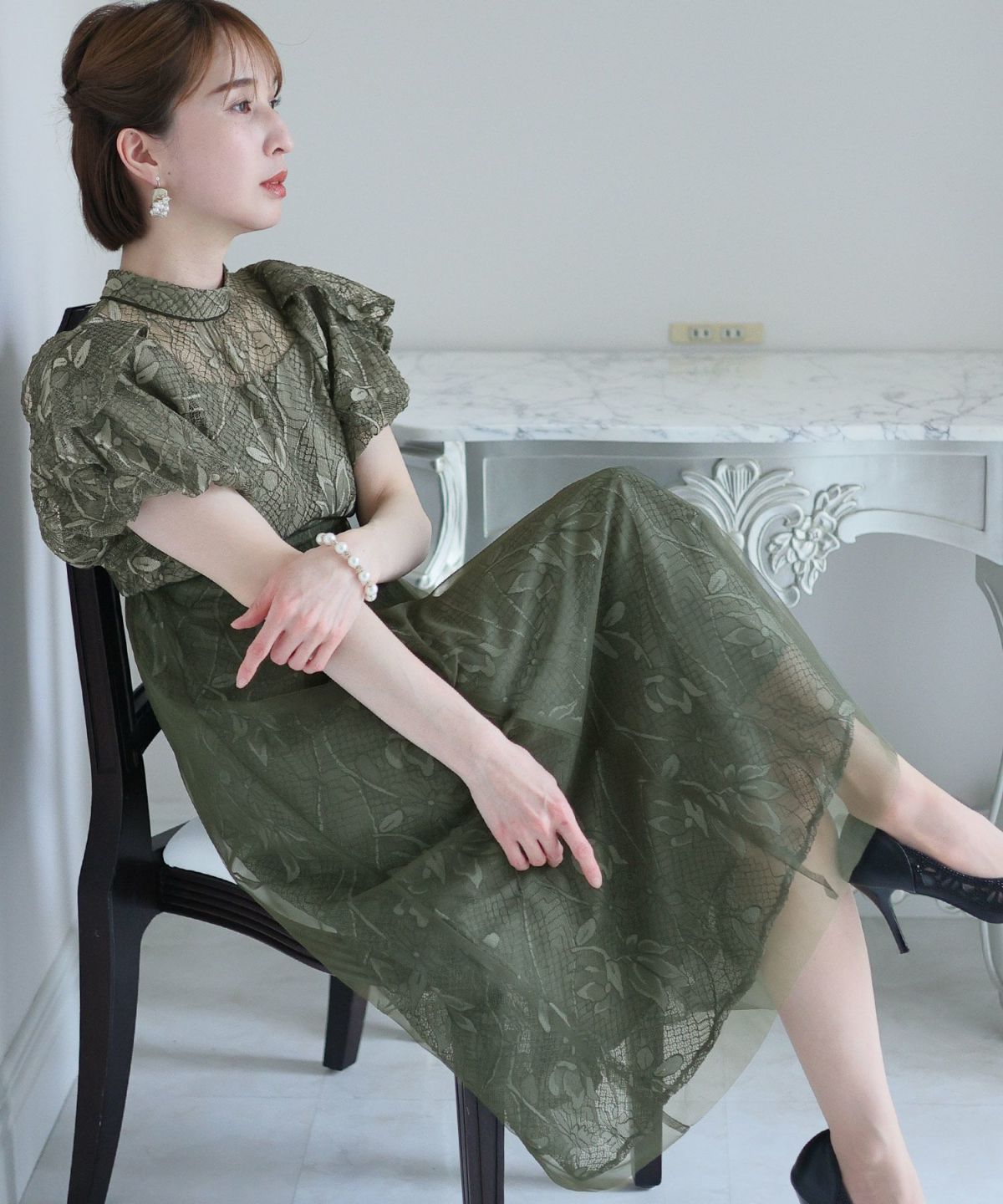 ■総レース×チュールコードレースを使用し、レースの柄がしっかりと出ていて可愛いワンピースです。ウエスト下からチュールを重ねているので柔らかく女性らしい印象に。パフスリーブでさらに可愛らしさアップ。オケージョンはもちろん、特別な日のお食事会等にもおすすめです。