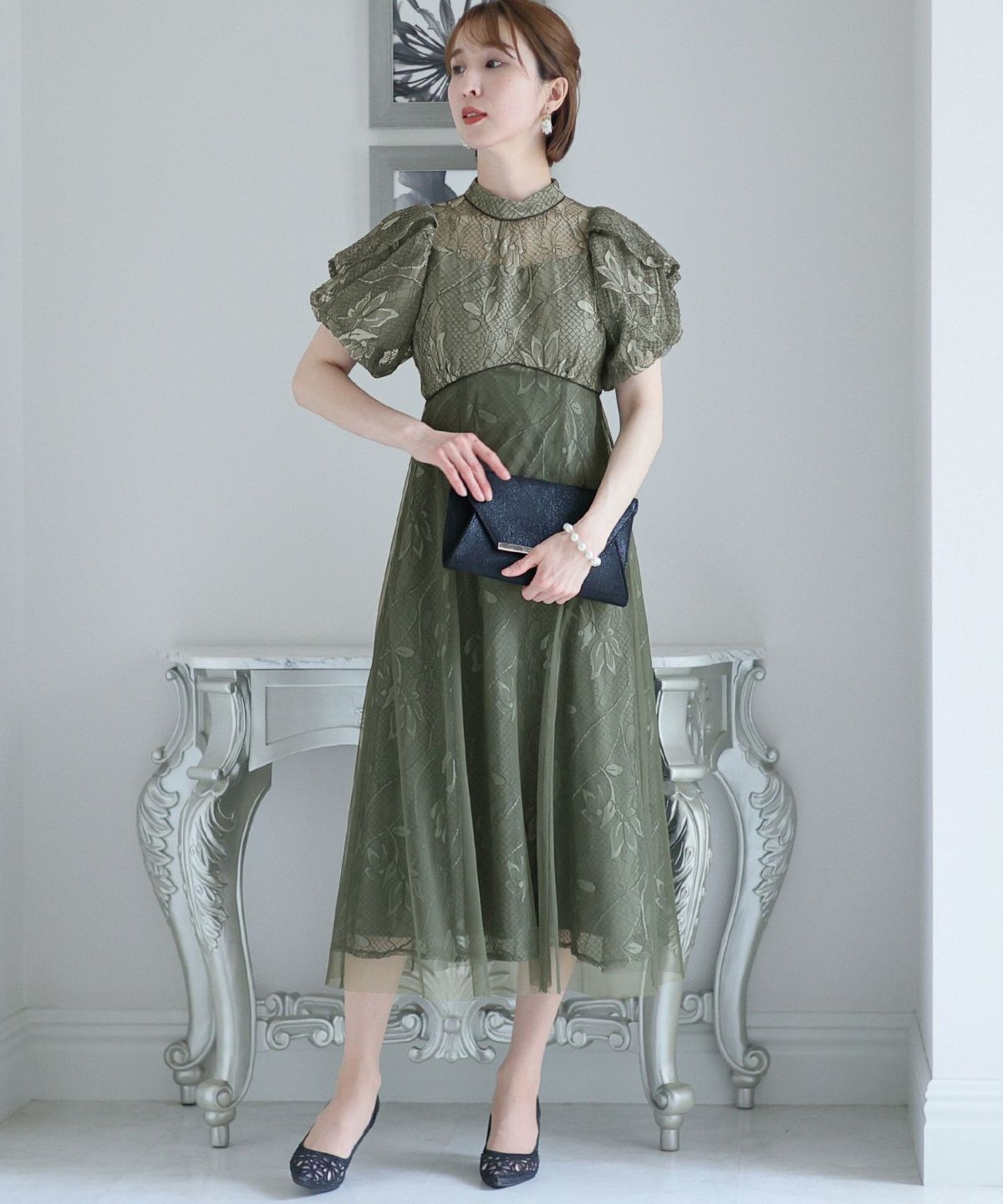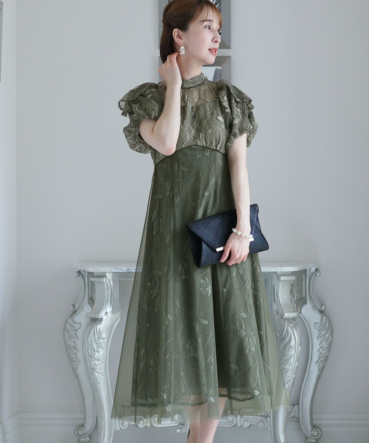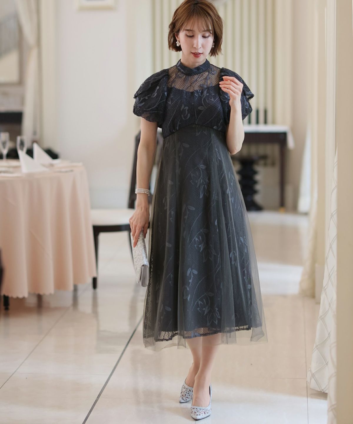 ■総レース×チュールコードレースを使用し、レースの柄がしっかりと出ていて可愛いワンピースです。ウエスト下からチュールを重ねているので柔らかく女性らしい印象に。パフスリーブでさらに可愛らしさアップ。オケージョンはもちろん、特別な日のお食事会等にもおすすめです。