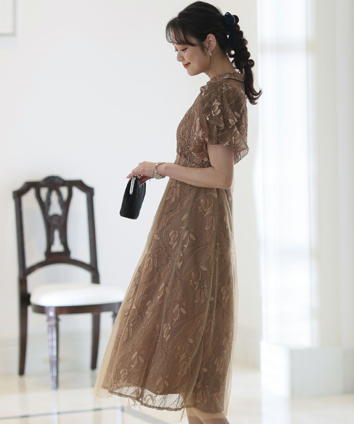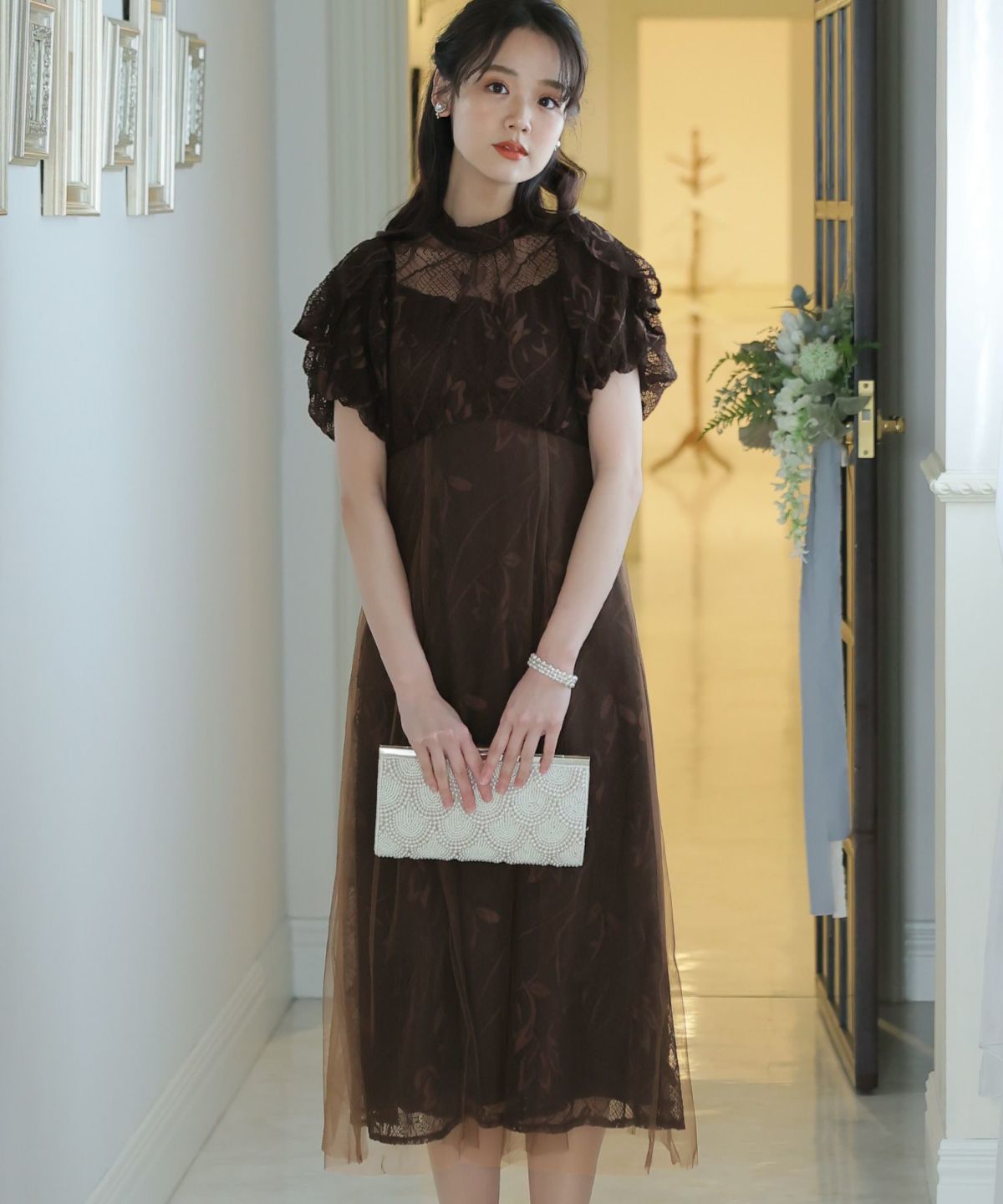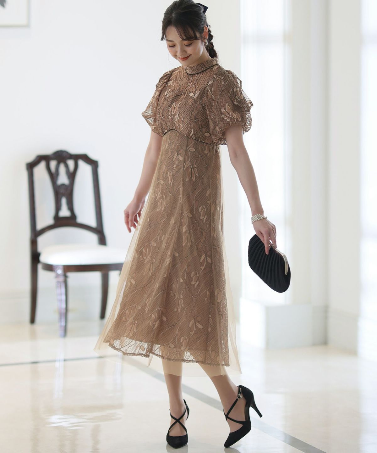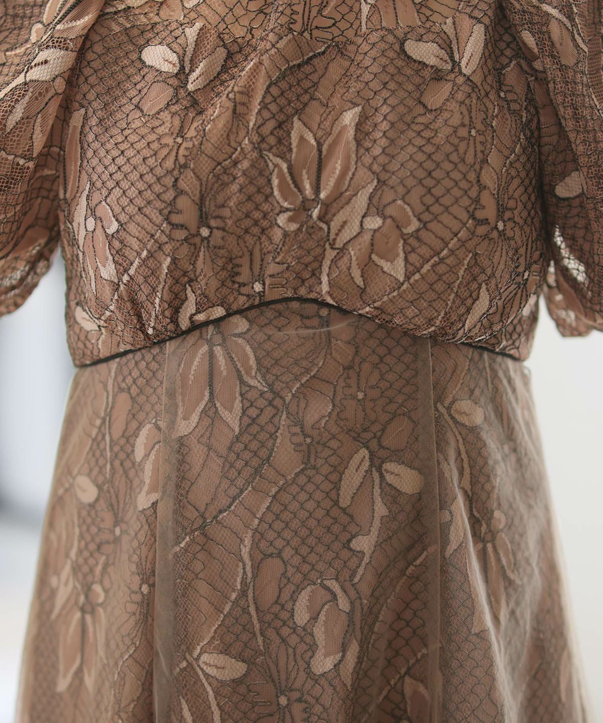 ■総レース×チュールコードレースを使用し、レースの柄がしっかりと出ていて可愛いワンピースです。ウエスト下からチュールを重ねているので柔らかく女性らしい印象に。パフスリーブでさらに可愛らしさアップ。オケージョンはもちろん、特別な日のお食事会等にもおすすめです。