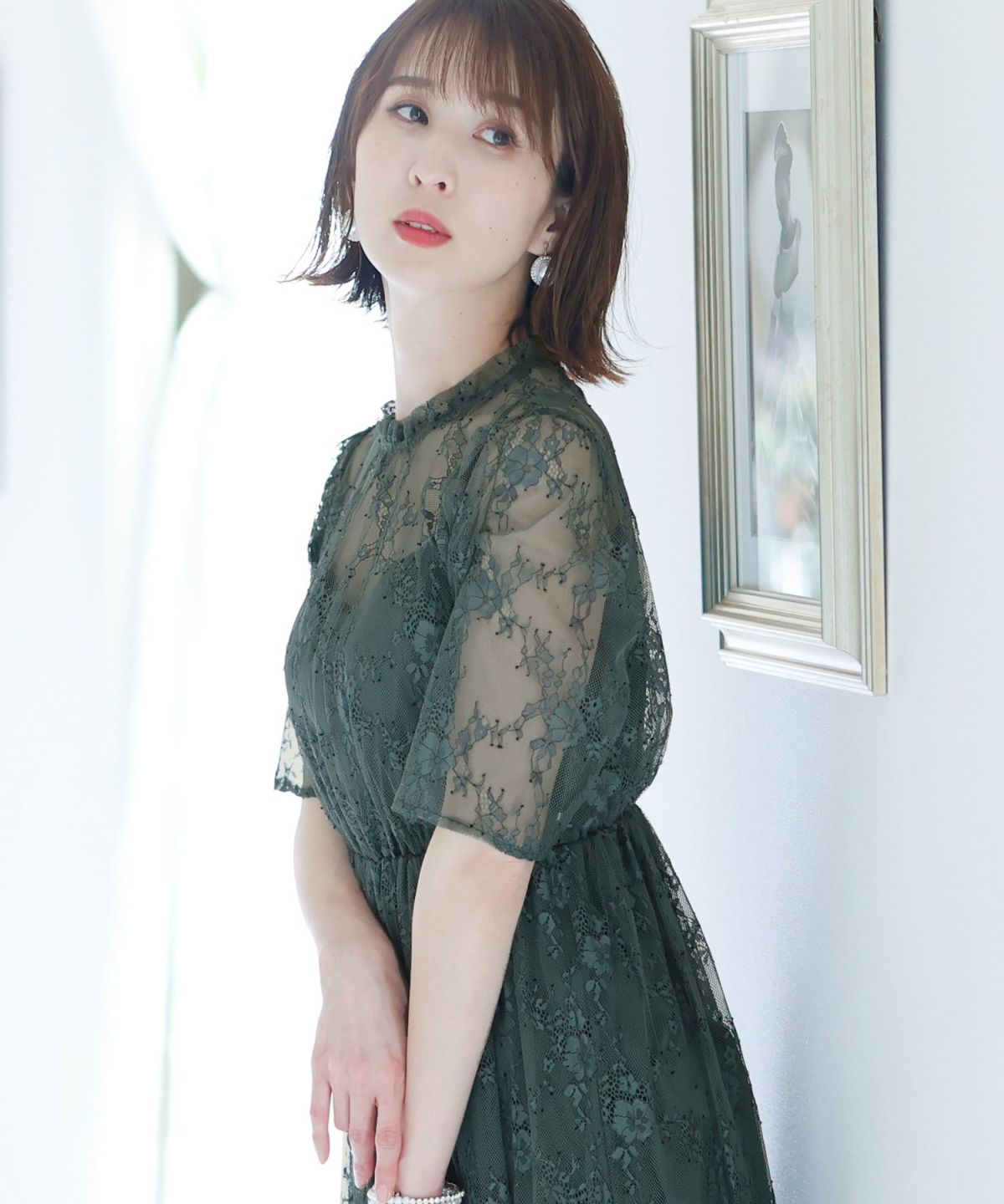 華奢なレース素材で綺麗な仕上がりに。