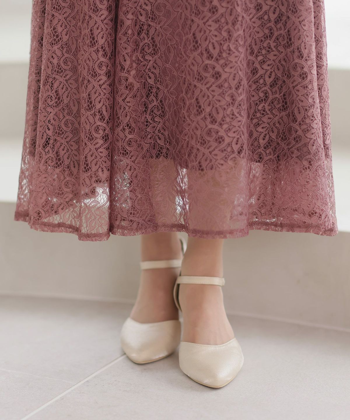 ■ラメ感のあるオーガンジーとレースが切り替えられた生地歩くとスカートがきれいに揺れ、華やかさをプラスします